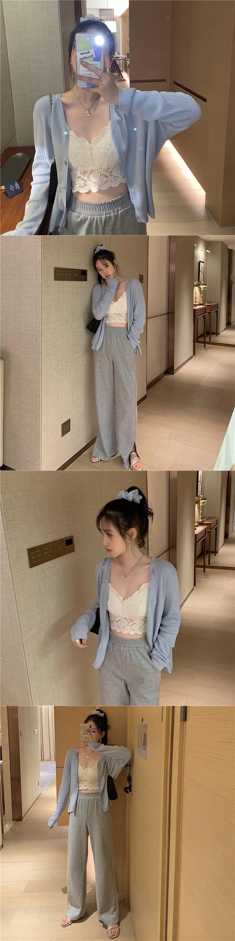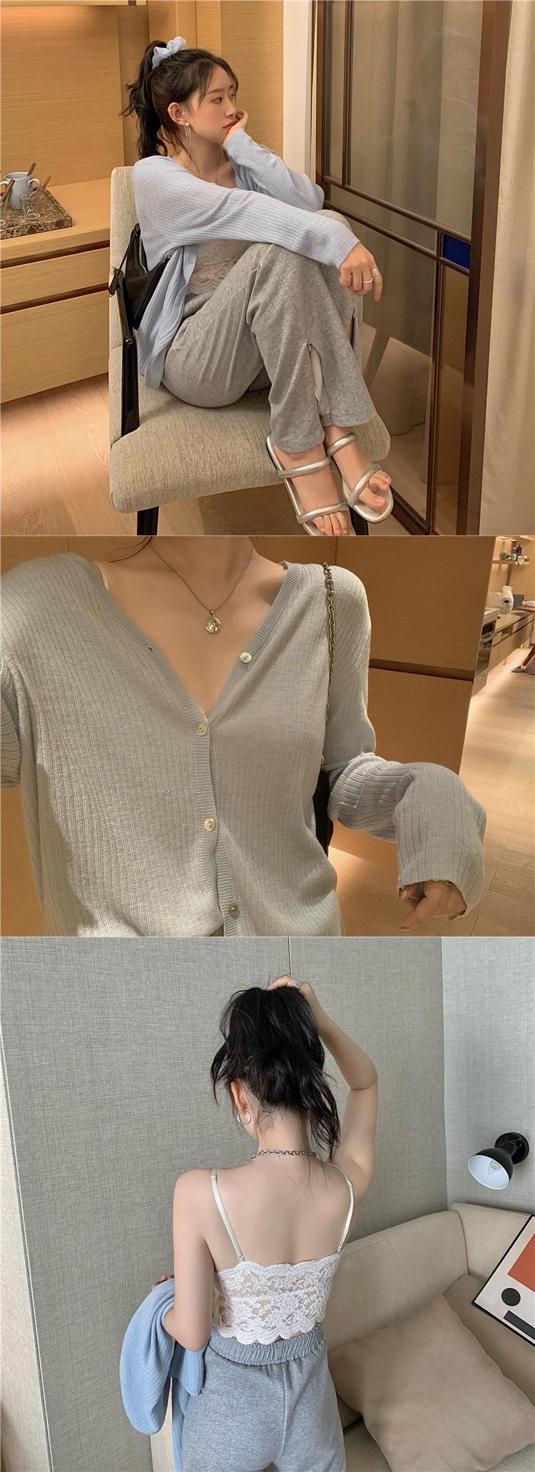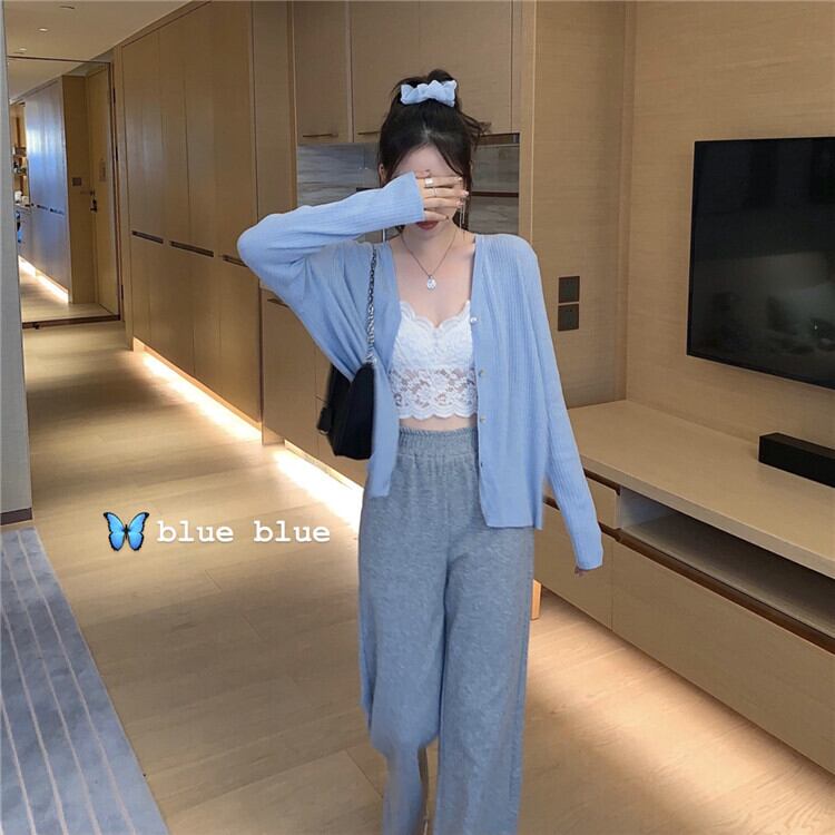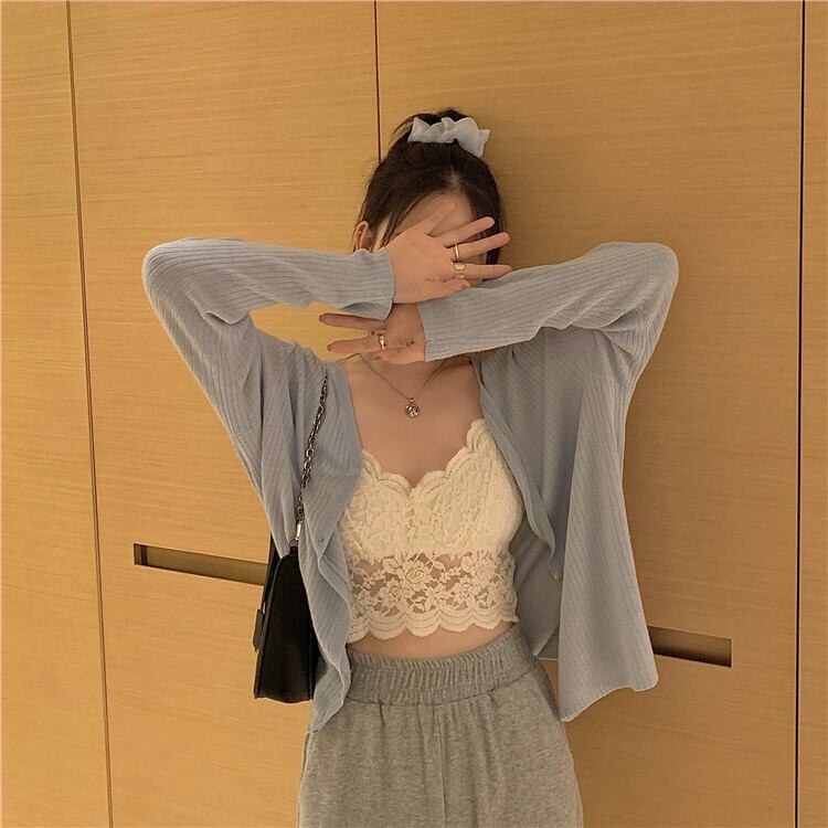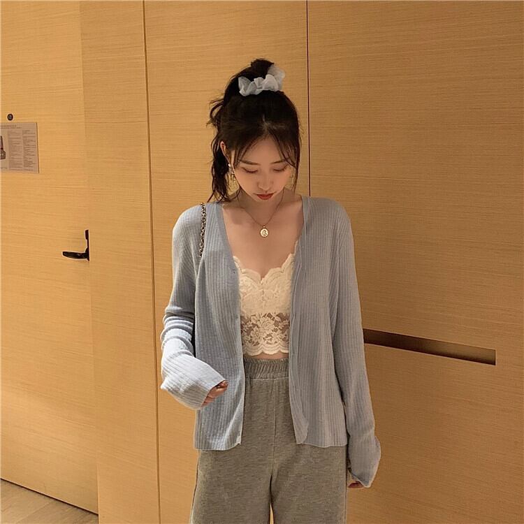 青い日焼け止めカーディガン女性の夏の薄いニットのエアコンシャツ、サスペンダースカートとアイスシルクのブラウスジャケット ブルー サマー 夏物 7460095978951227 | framboise21