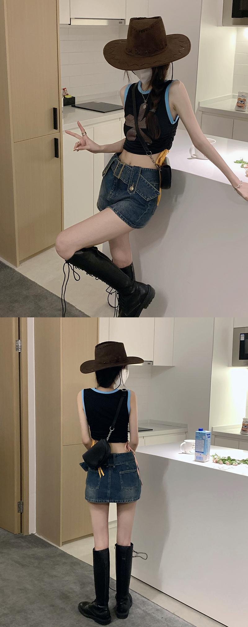 デニムショートスカートレディースサマー薄手バッグヒップスカートレトロデザインセンススモールハイウエストパンツスカートトレンド ハイウェスト 夏物 7460064960398875 | framboise21