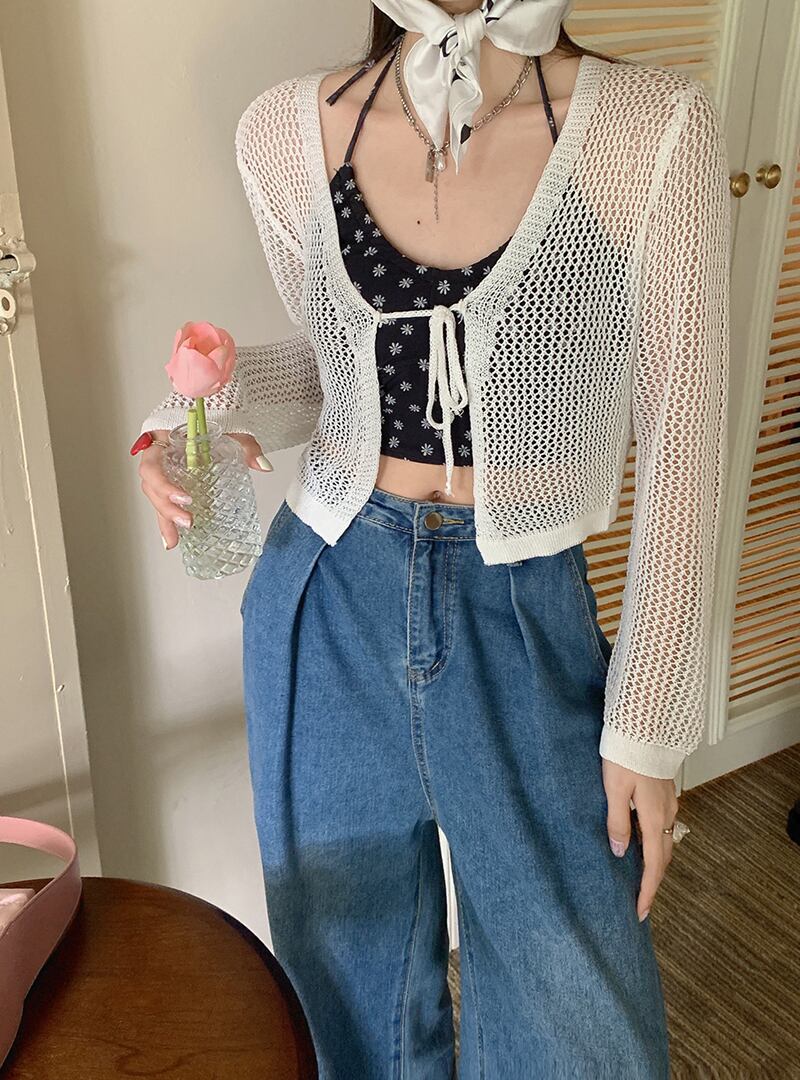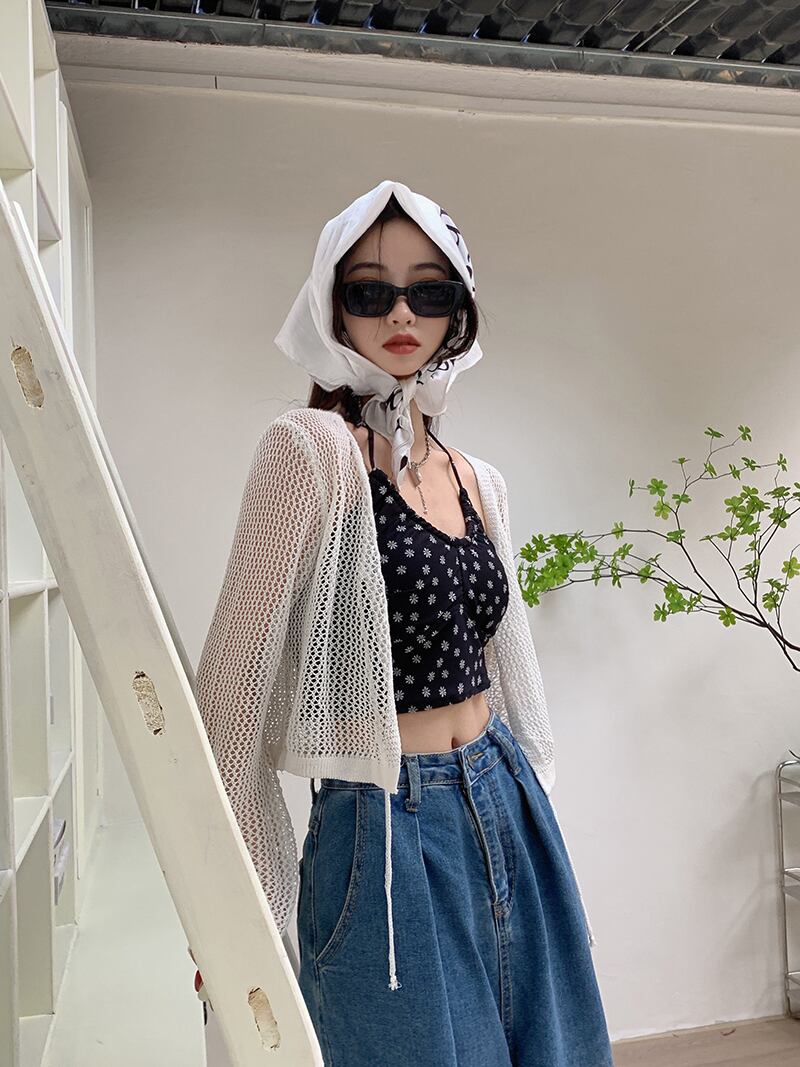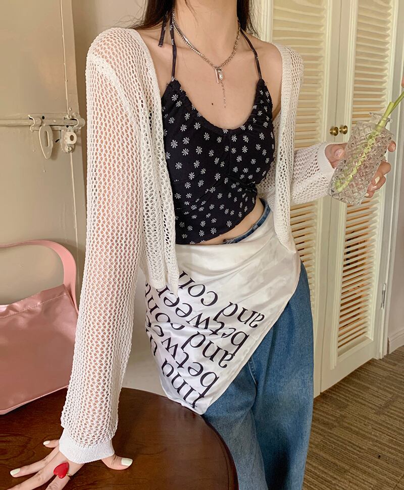 中空日焼け止めカーディガン女性の夏の純粋な欲望薄いブラウスデザインセンスサスペンダースカートショートシースルースモールコート サマー 夏物 ピュア 7460016559594755 | framboise21