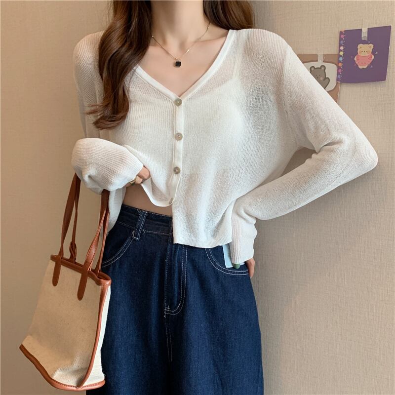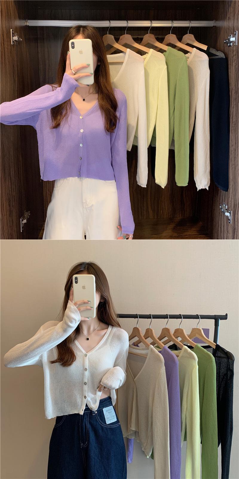 日焼け止めカーディガンの女性の夏の薄いアイスシルクのエアコンシャツは、サスペンダースカートと短いニットのスモックコートでゆったりとしています ショート サマー 夏物 74600895479844 | framboise21