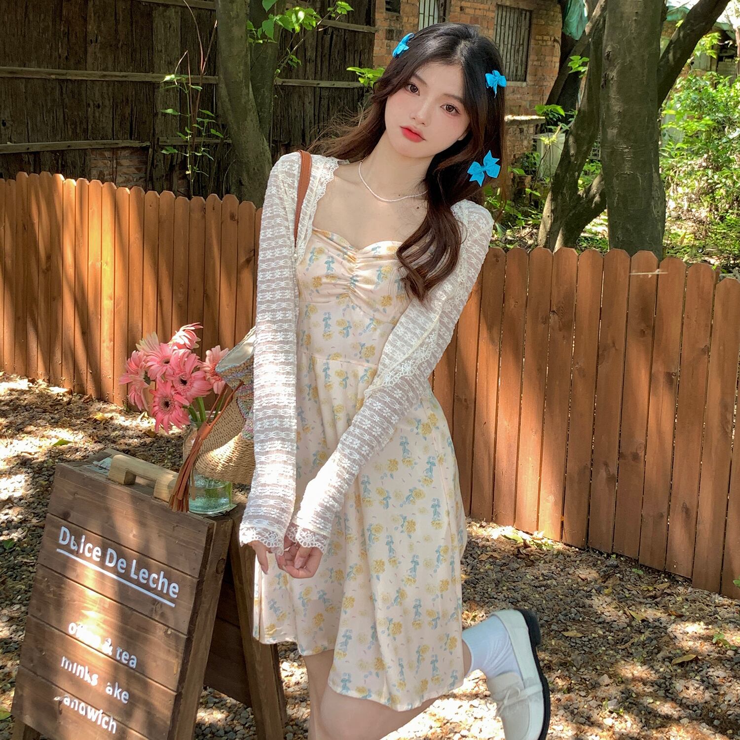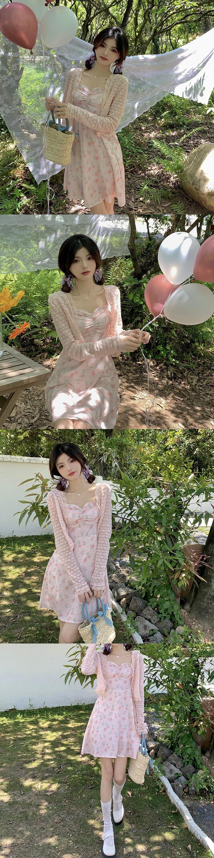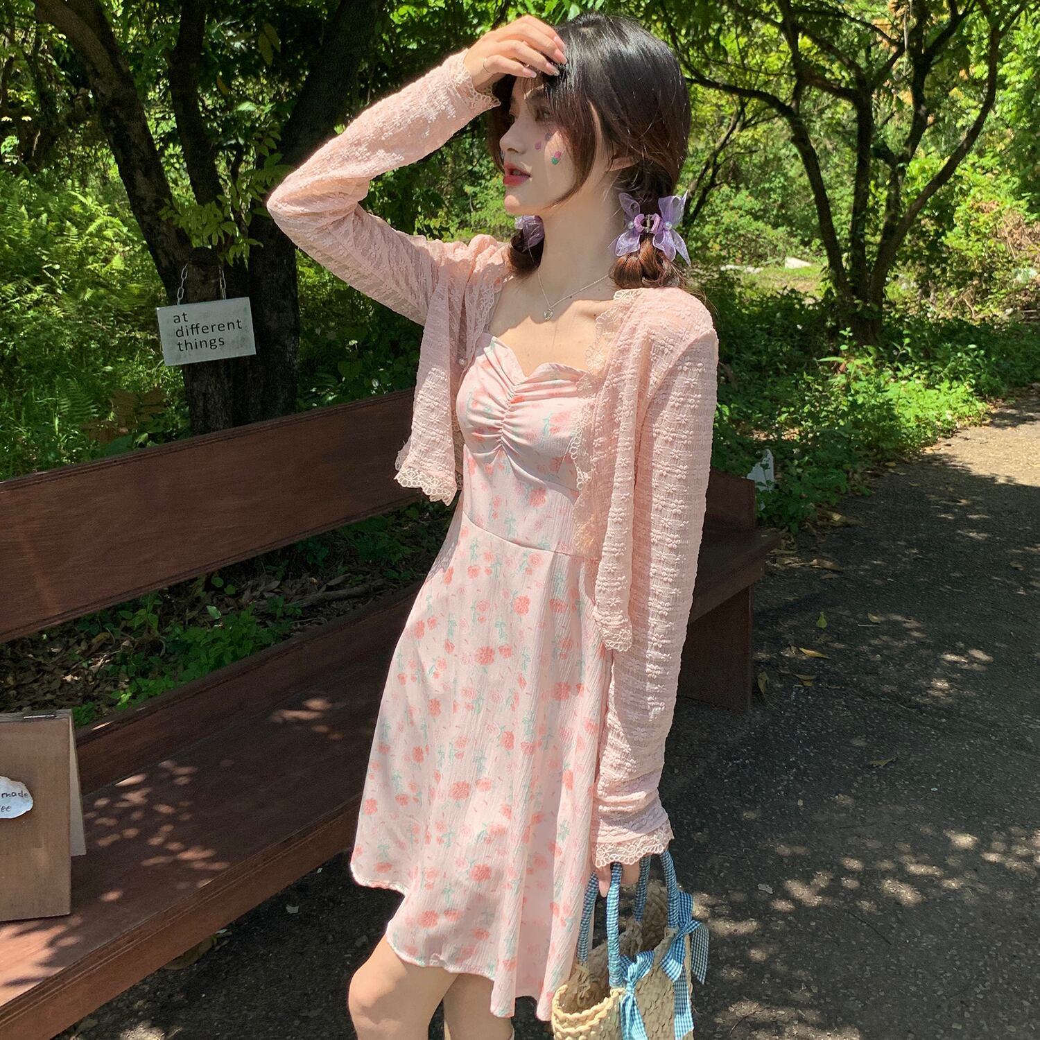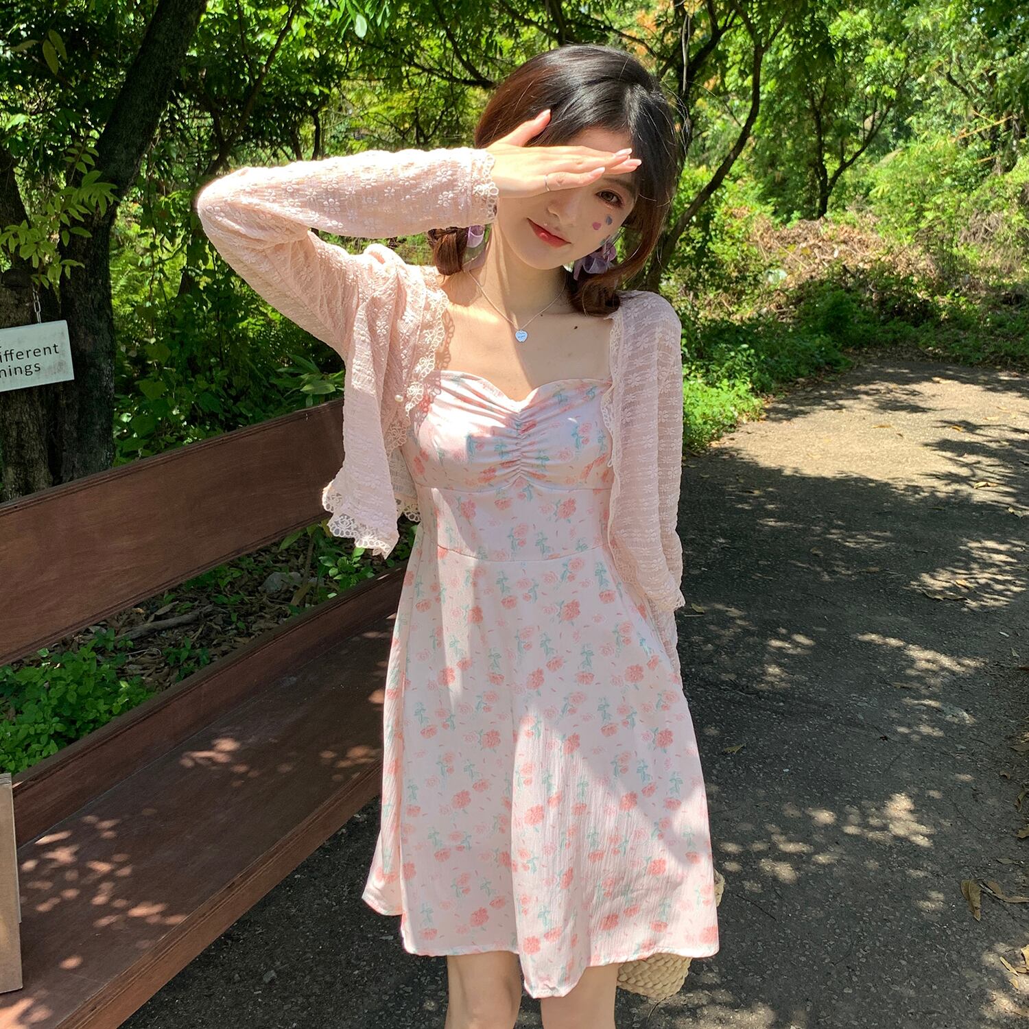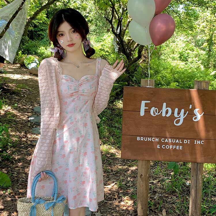 フローラルドレスレディースサマー薄シフォンサスペンダースカート甘くて優しいデザインセンス半ノースリーブスカート ショート 半袖 ハーフスリーブ 大人ガーリー スウィート キュート カジュアル 夏物 花柄 7460071625517729 | framboise21