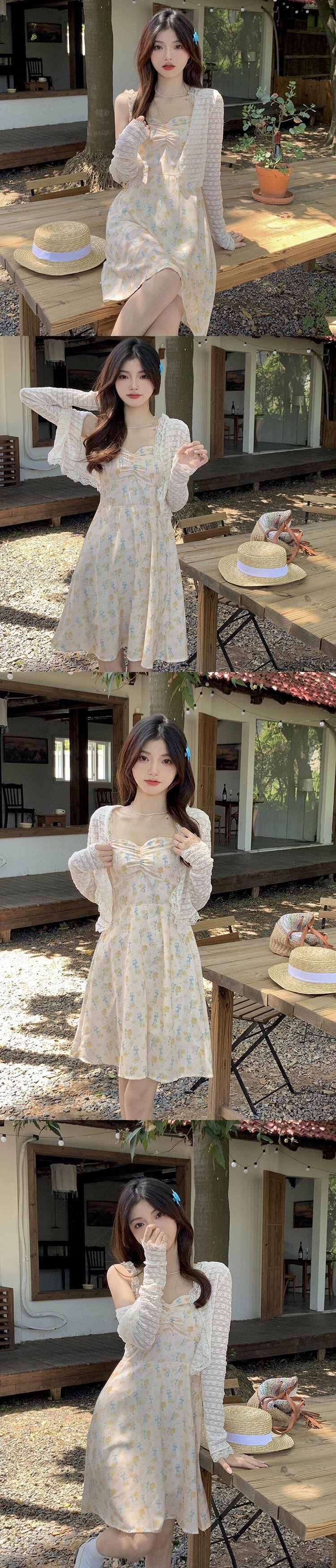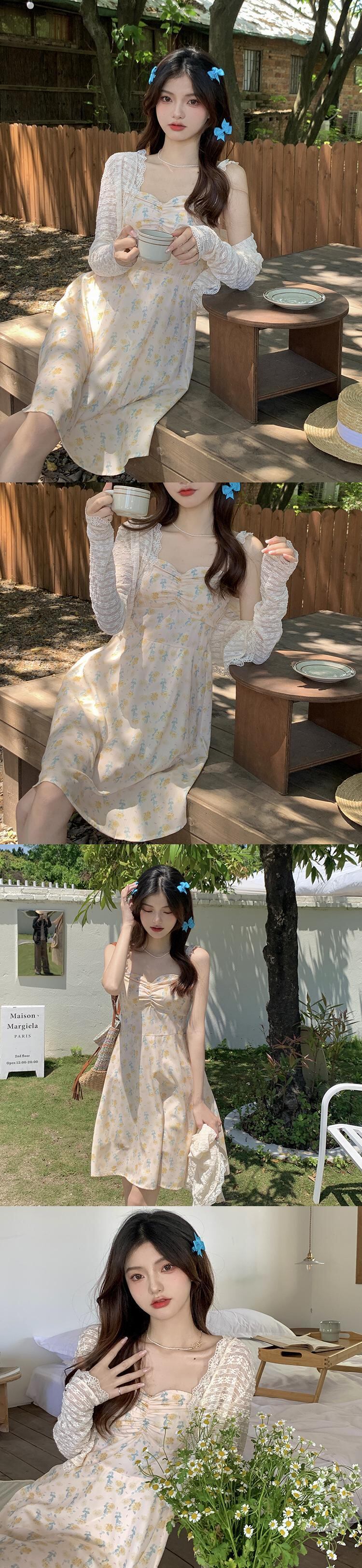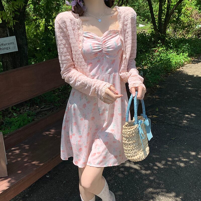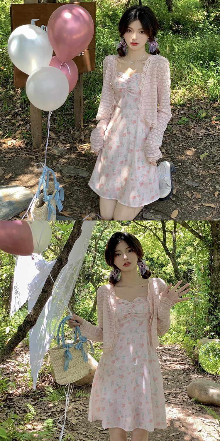 フローラルドレスレディースサマー薄シフォンサスペンダースカート甘くて優しいデザインセンス半ノースリーブスカート ショート 半袖 ハーフスリーブ 大人ガーリー スウィート キュート カジュアル 夏物 花柄 7460071625517729 | framboise21