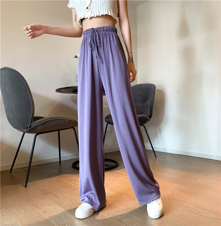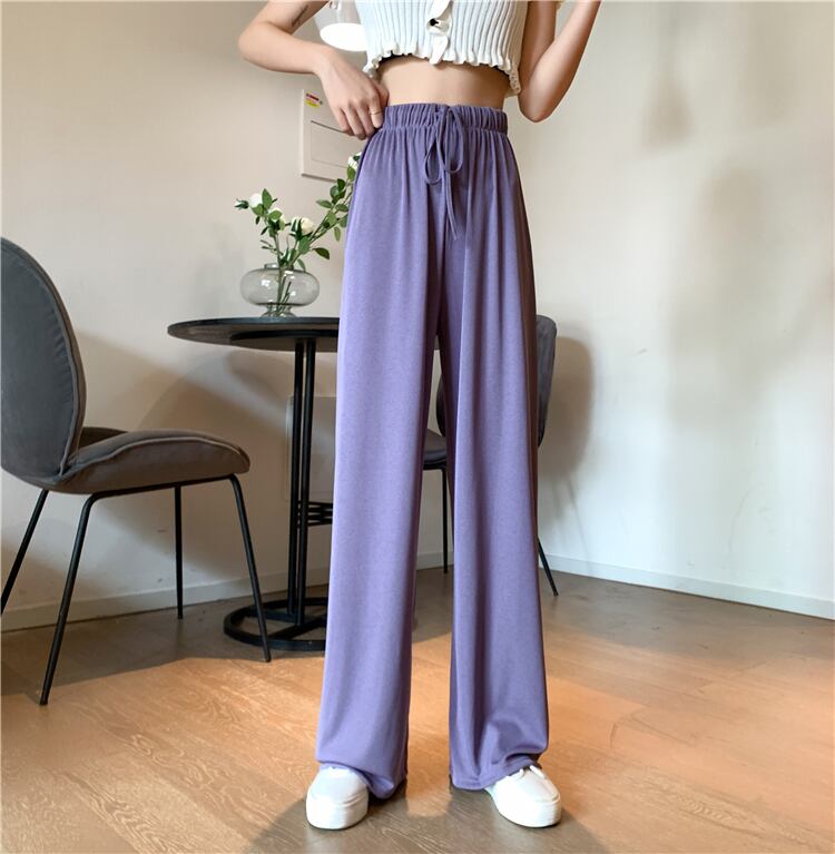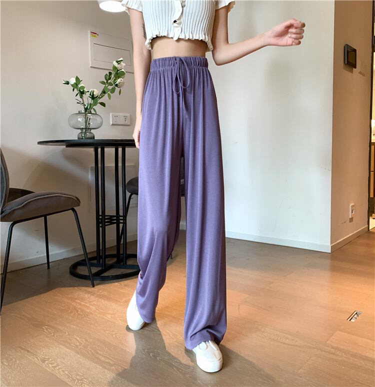 アイスシルクマスクパンツレディースサマー薄切片ハイウエスト縦ストレートチューブルーズカジュアルパンツは細くモップパンツワイドレッグ ハイウェスト 夏物 ワイドパンツ 7460070045339470 | framboise21