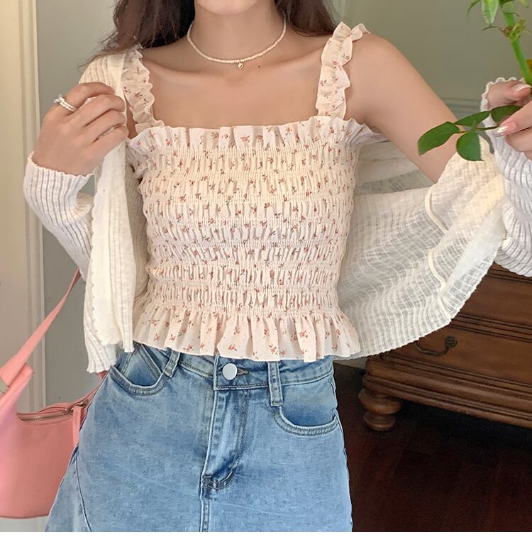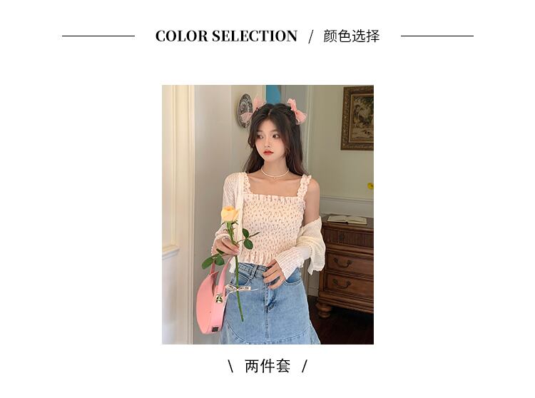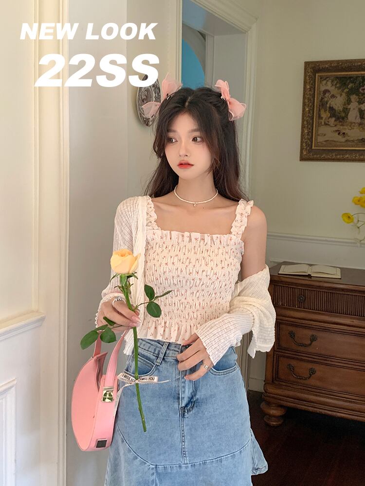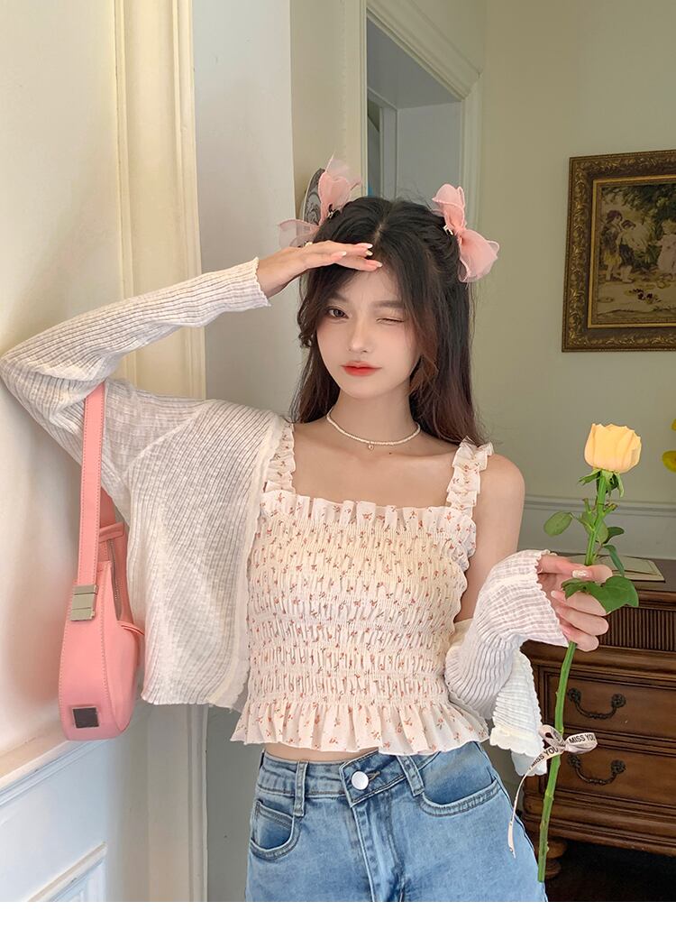 アイスシルクの日焼け止めカーディガンの女性の夏の薄いニットブラウスの小さなジャケット、外側にサスペンダー、甘い短いVネックのショール ショート 大人ガーリー スウィート キュート カジュアル サマー 夏物 746005720128566 | framboise21