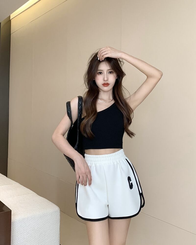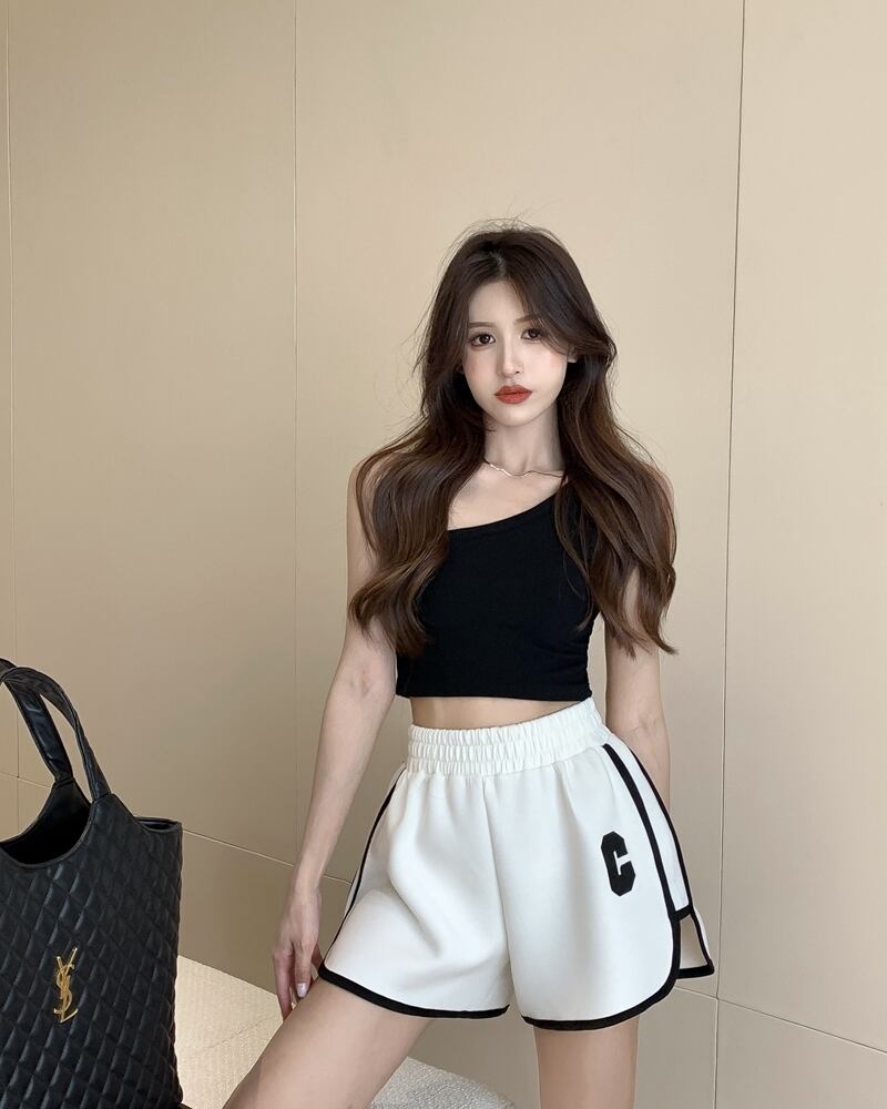 ホワイトスポーツショーツレディースサマー薄切片ワイドレッグパンツデザインルーズアウターウェアハイウエストAラインパンツタイドイン ハイウェスト 夏物 ブルマー 746009981065838 | framboise21