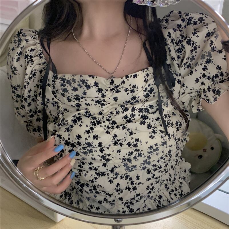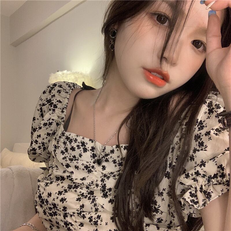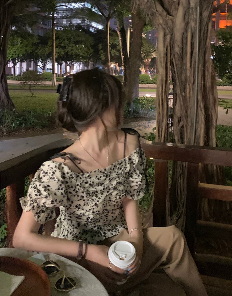 ショートワンショルダーシフォンフローラルシャツレディーススウィートスーパーフェアリーサマーカラーボーンフレンチパフスリーブオフショルダー半袖トップス 大人ガーリー キュート カジュアル 夏物 花柄 7460092597926737 | framboise21
