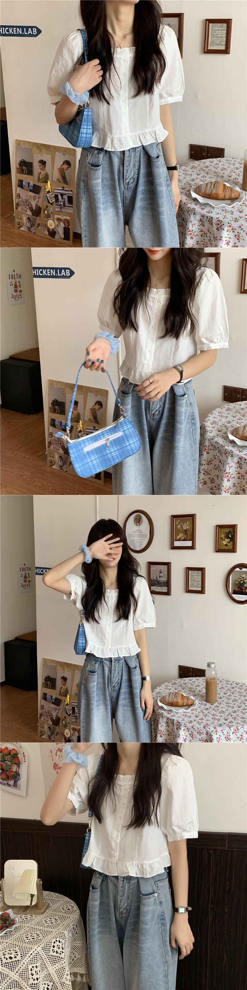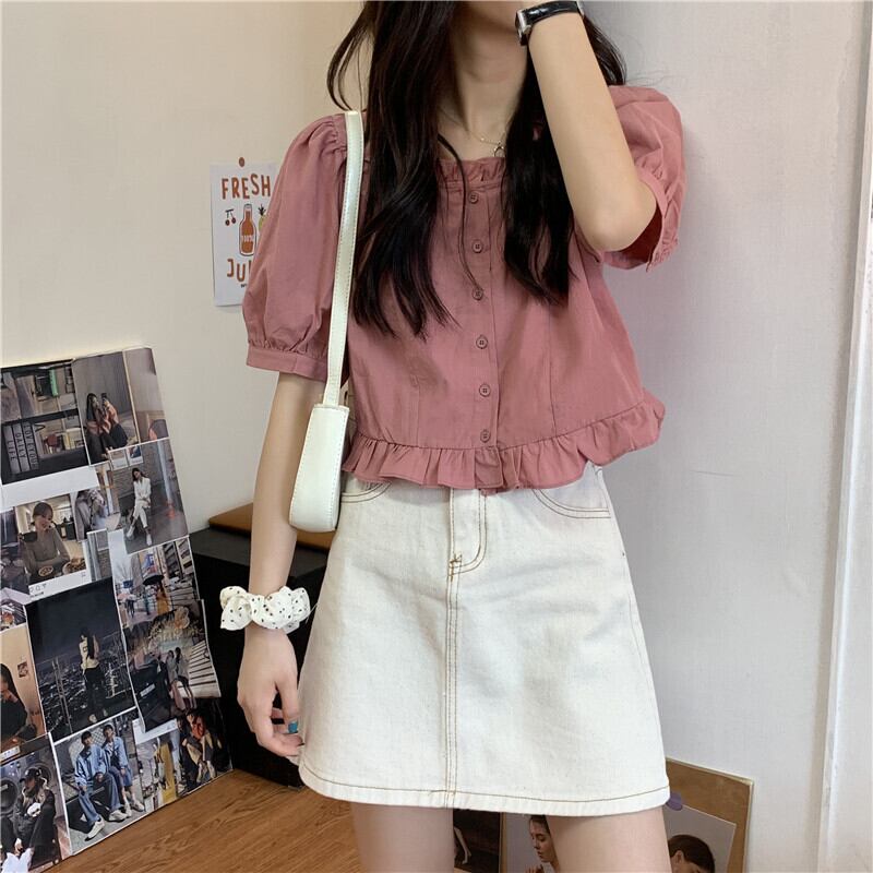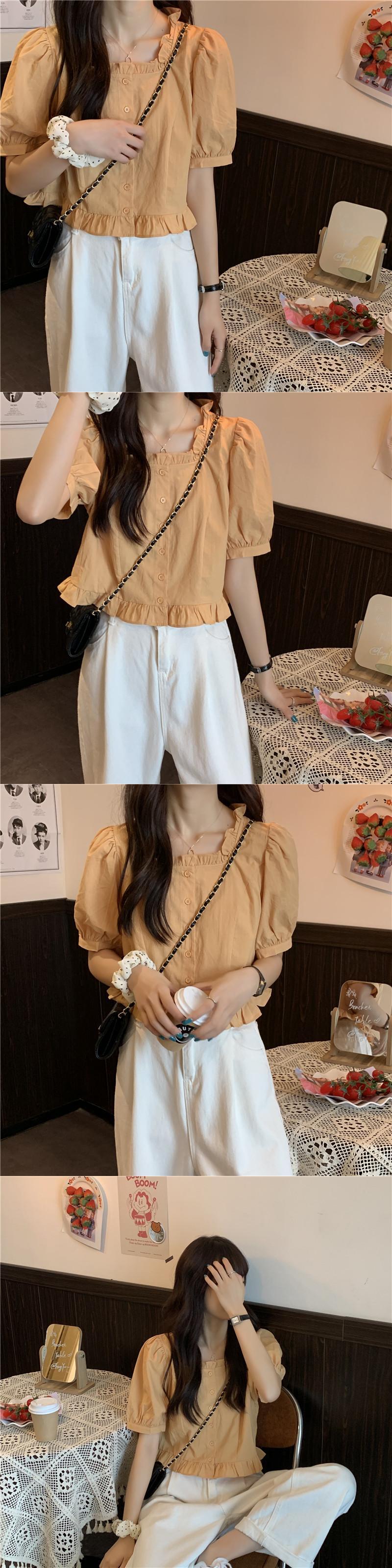 パフスリーブシャツレディース半袖フレンチスウィートトップセンセーションスモールスクエアカラー2022サマーファンガスサイドショート ハーフスリーブ 大人ガーリー キュート カジュアル 夏物 スクウェア 7460051892826374 | framboise21