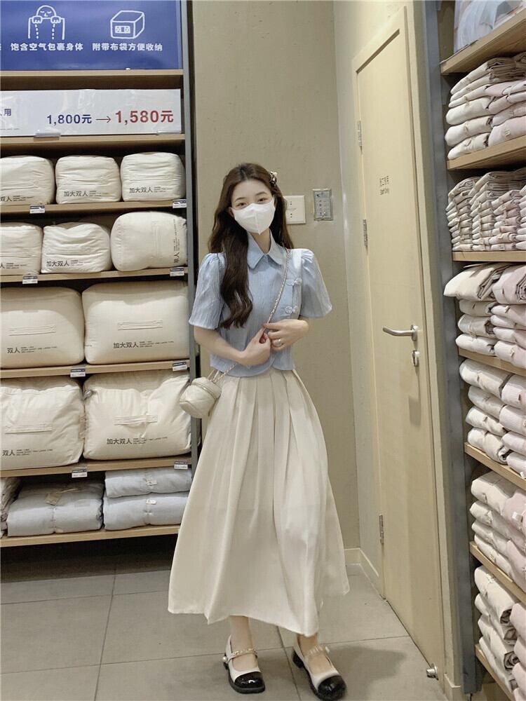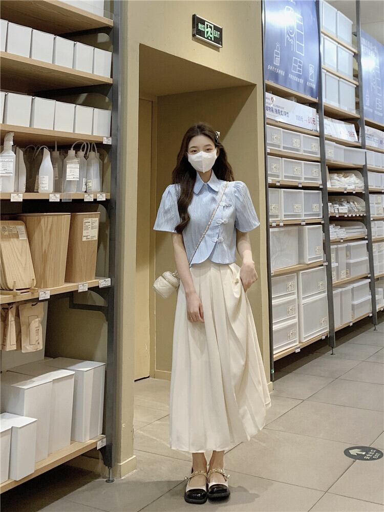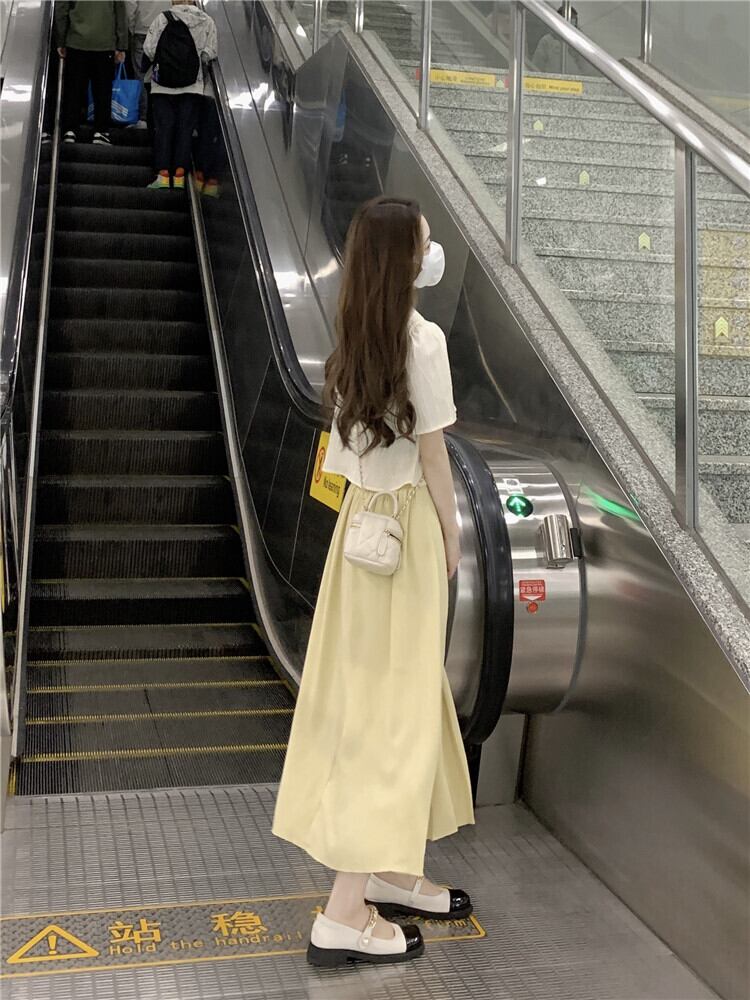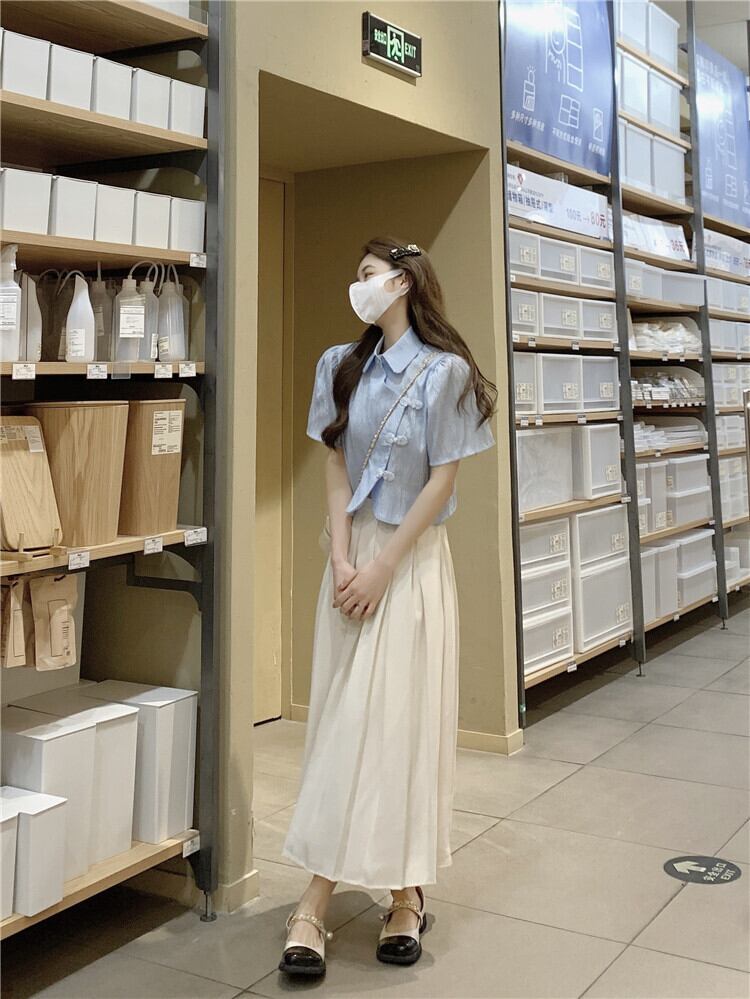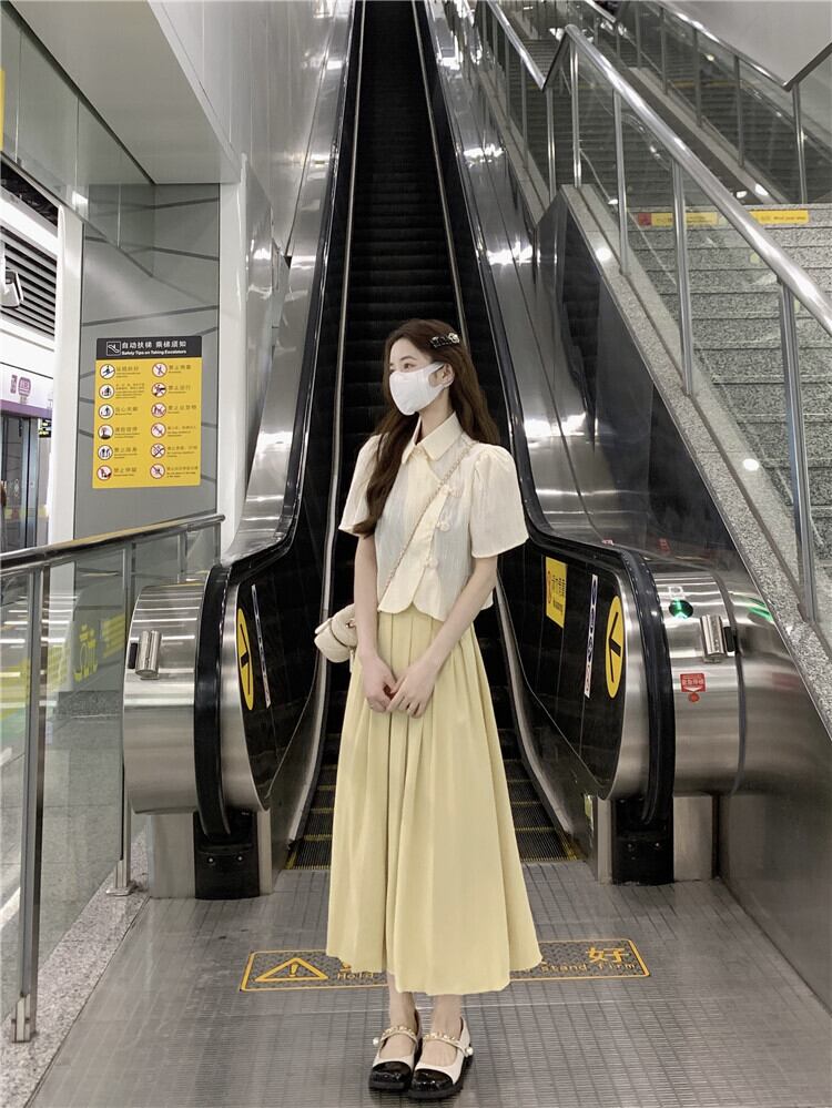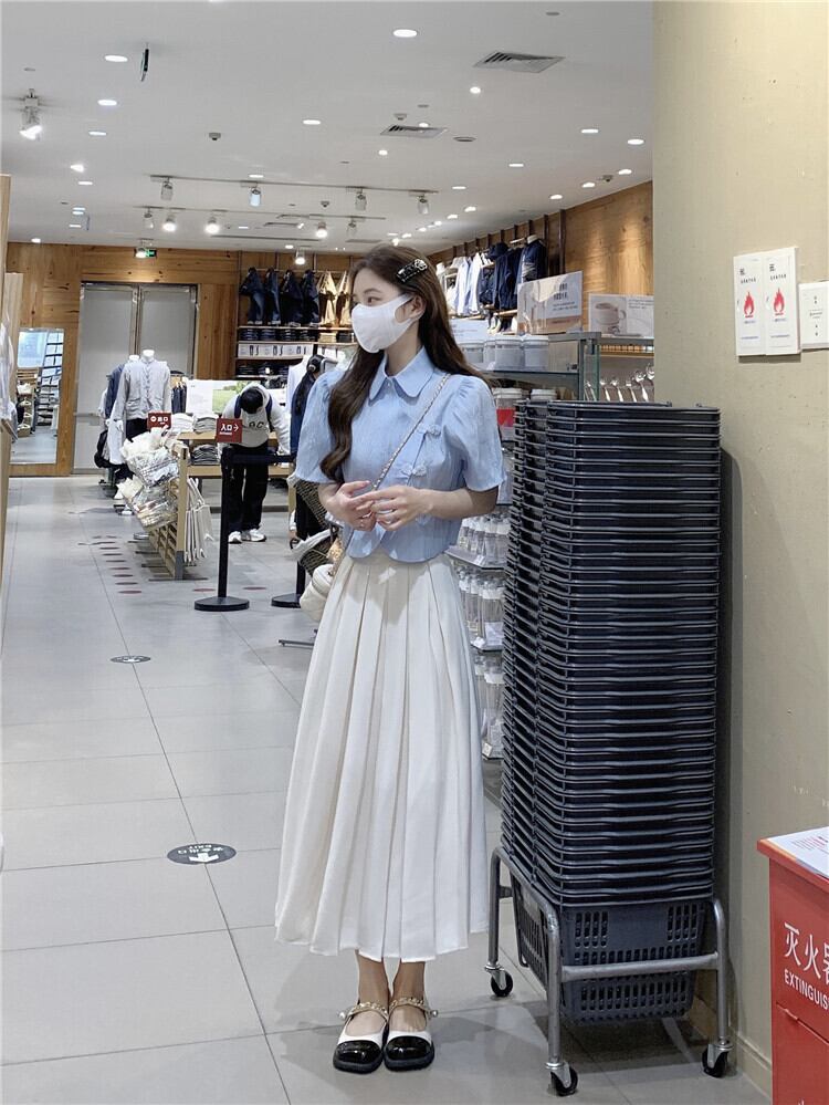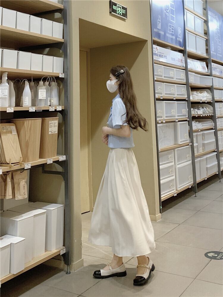 色:アプリコットシャツ,青いシャツ,アプリコットスカート,黄色のスカート
