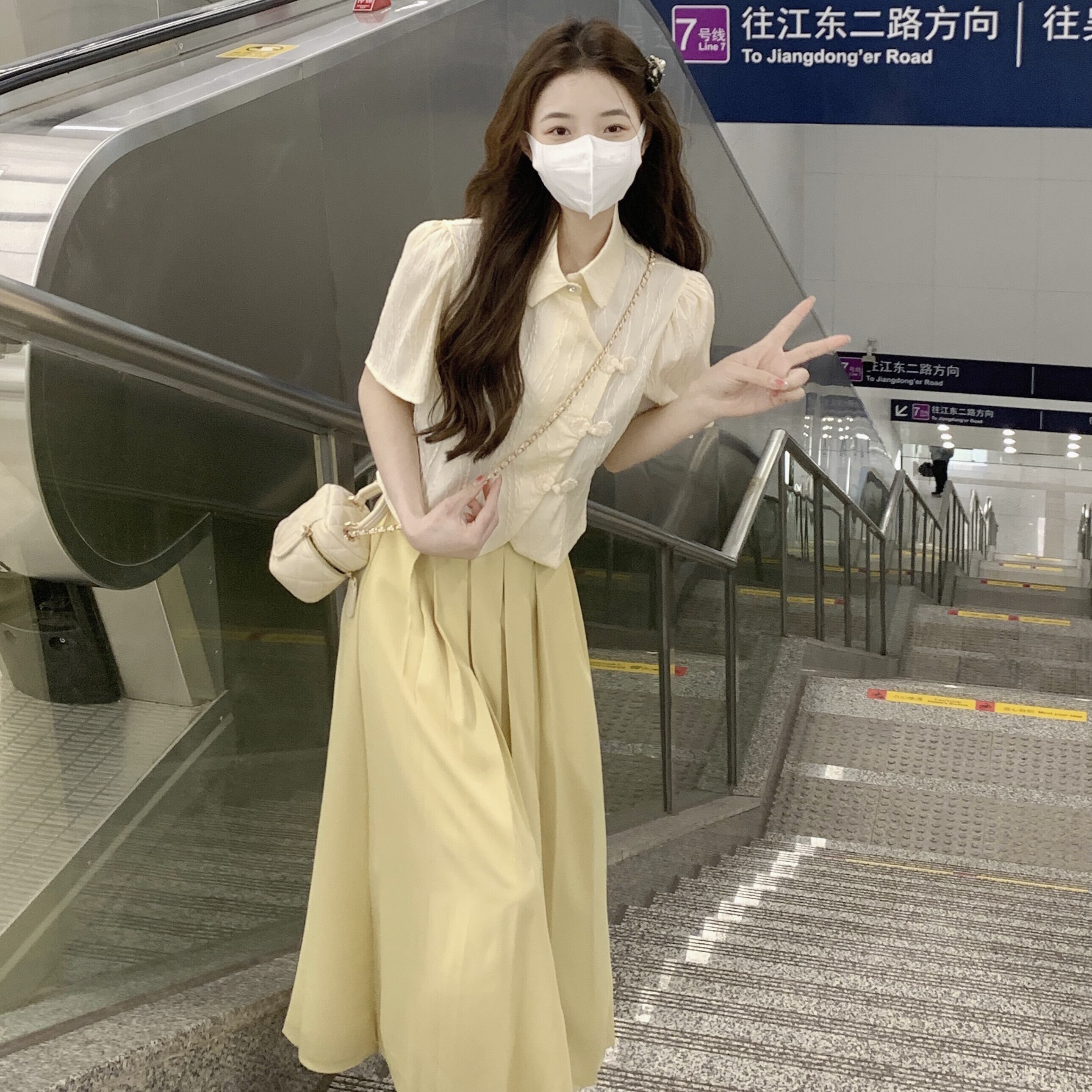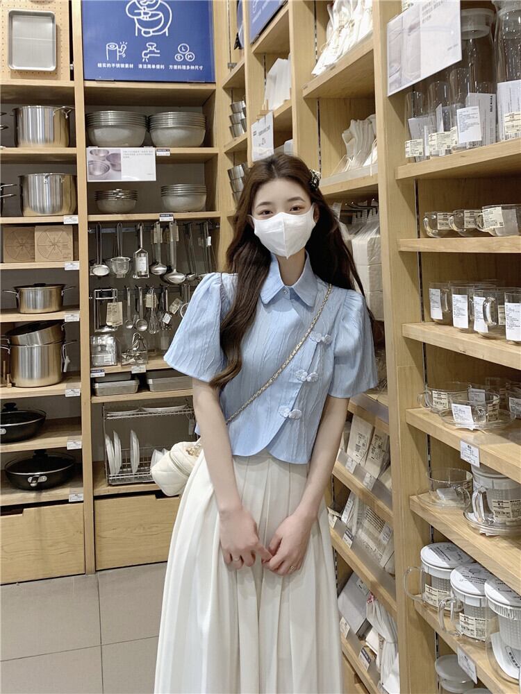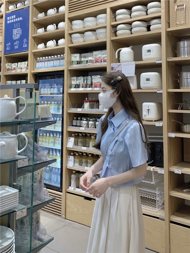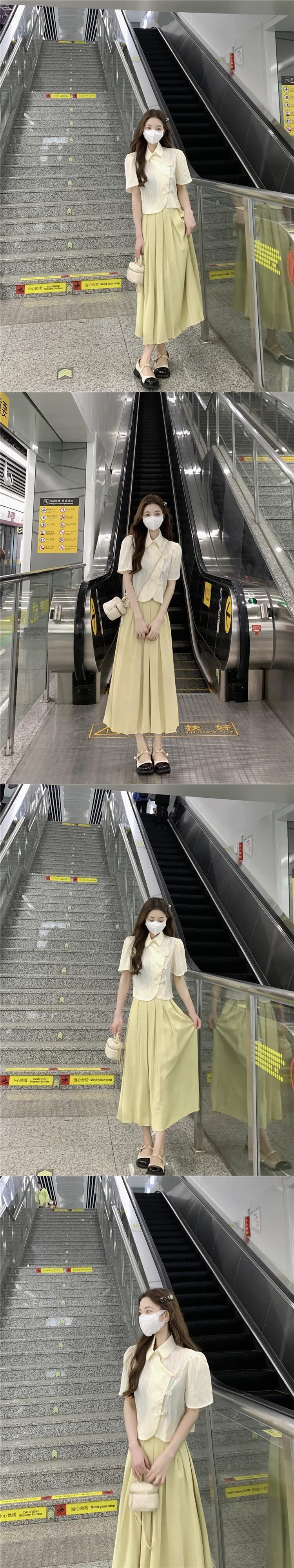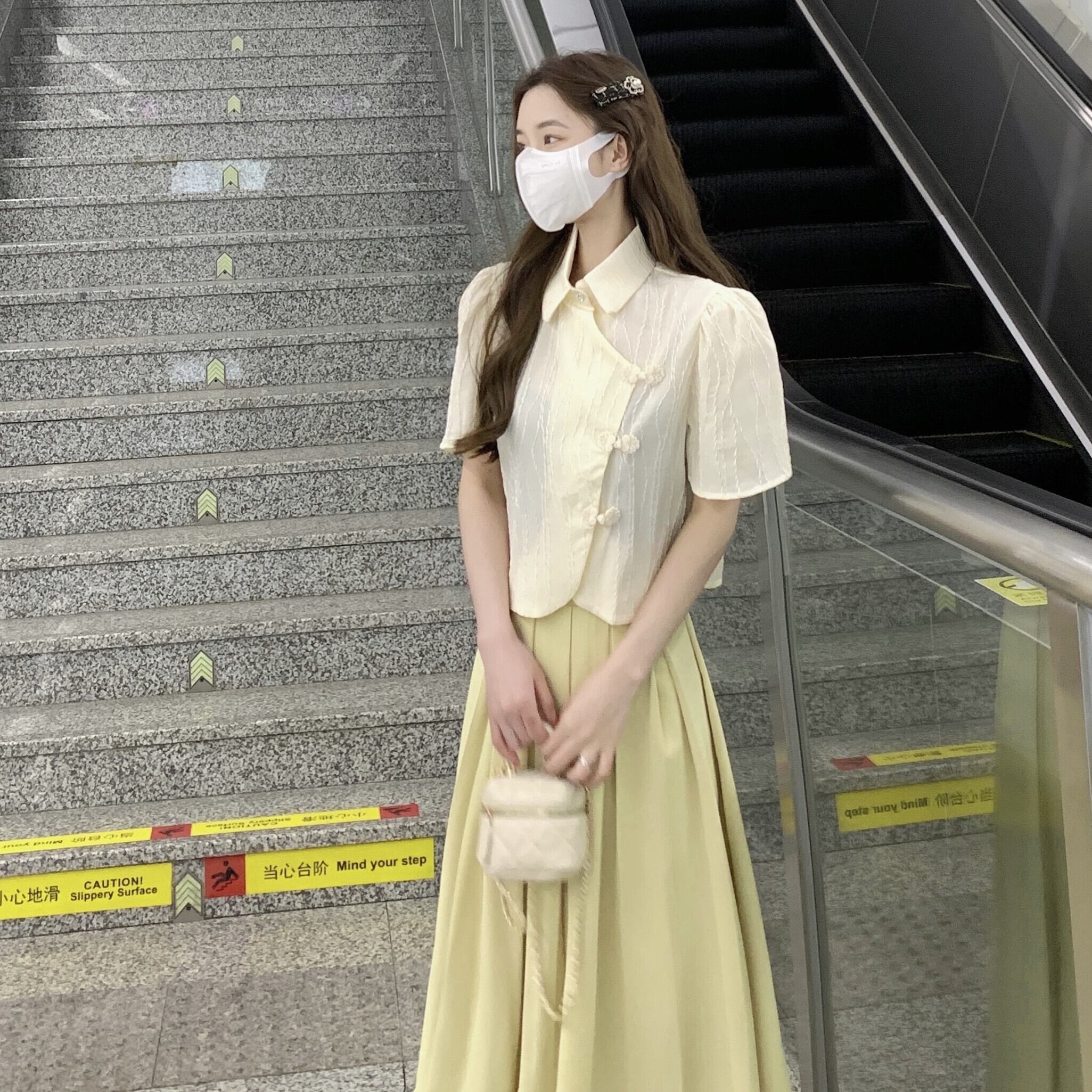 色:アプリコットシャツ,青いシャツ,アプリコットスカート,黄色のスカート