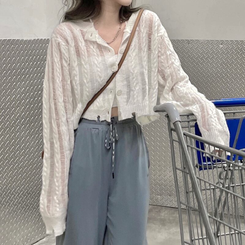 日焼け止めニットカーディガン女性の夏のショートアイスシルクブラウススモールコートサスペンダー外に薄い長袖のエアコンシャツホワイト ロング サマー 夏物 7460093312175584 | framboise21