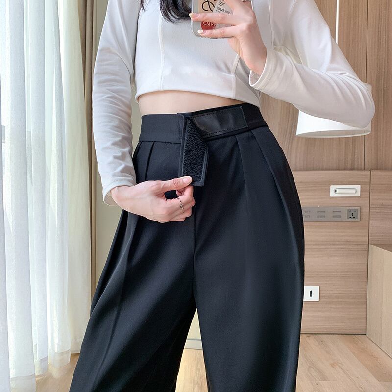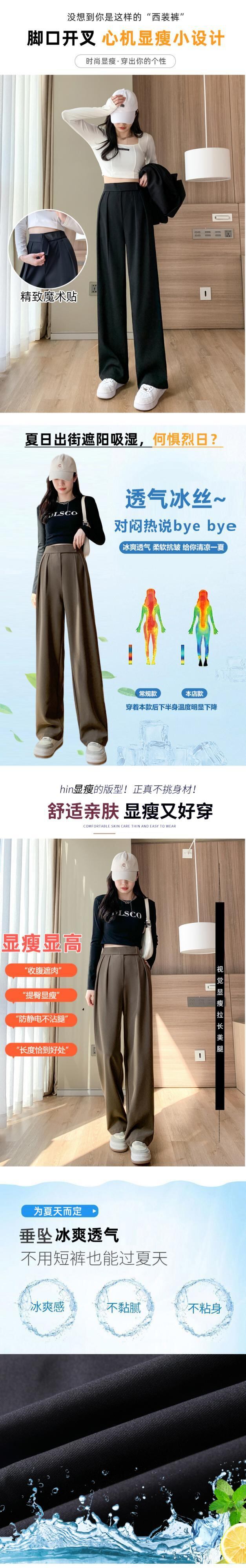 ベルクロアイスシルクスーツパンツレディースサマーシンカジュアルワイドレッグパンツデザインハイウエスト縦型ストレートチューブモッピングパンツ ハイウェスト 夏物 7460048680651630 | framboise21
