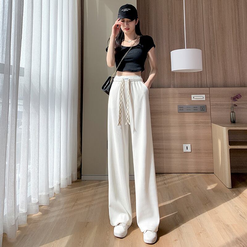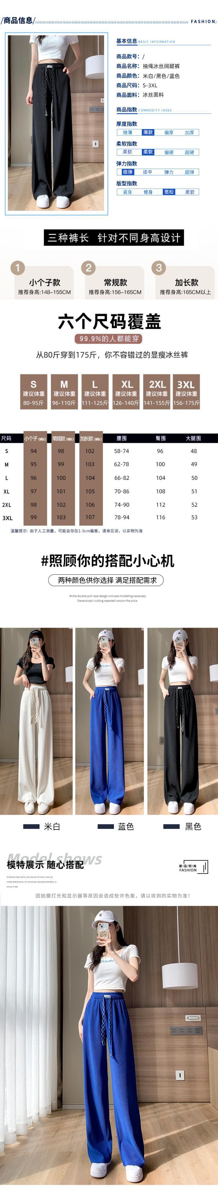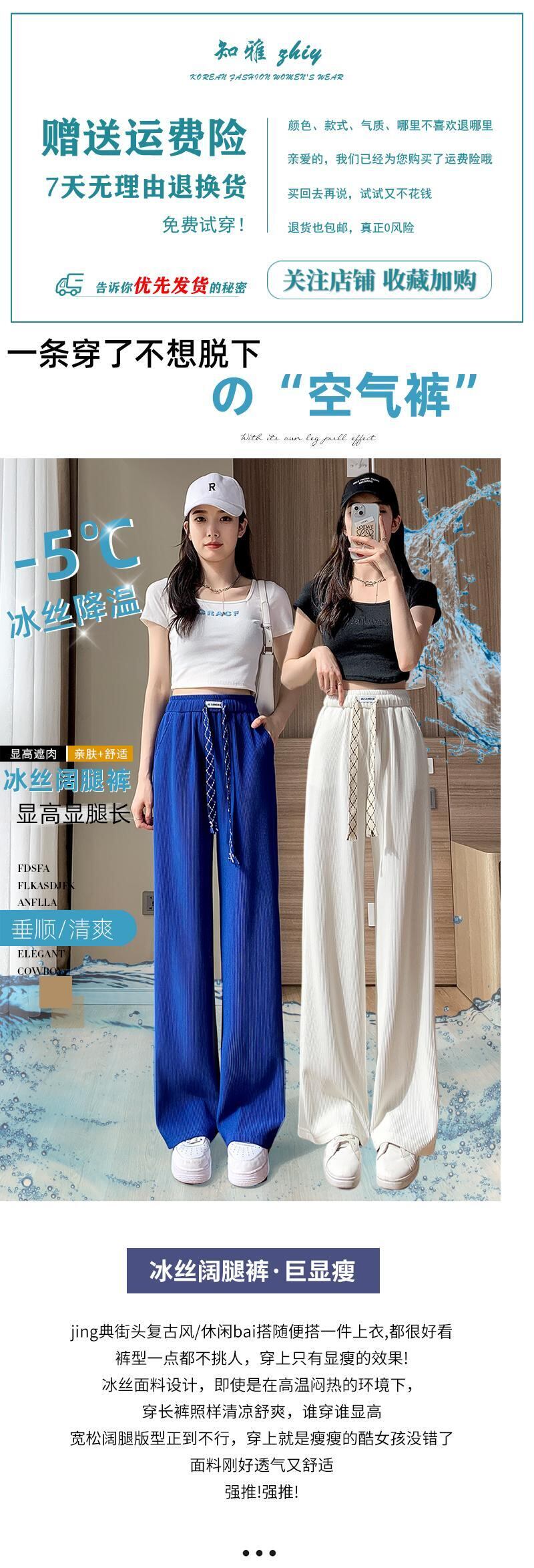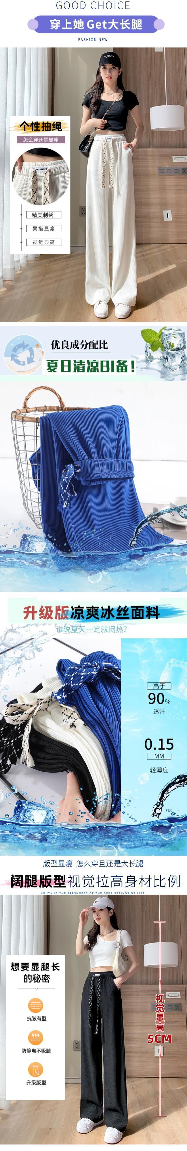 オフホワイトのアイスシルクパンツ女性の夏の薄いハイウエストワイドレッグパンツストレートチューブショー薄くてドレープなモップドローストリングカジュアルパンツ サマー 夏物 7460022461111231 | framboise21