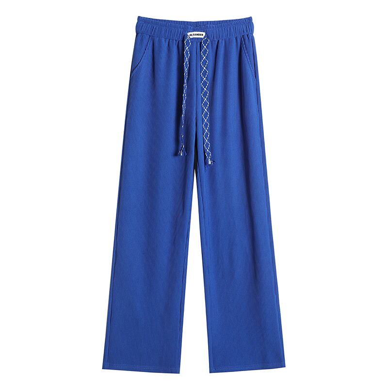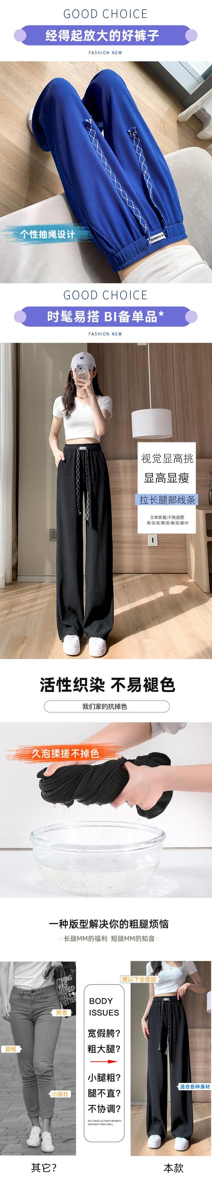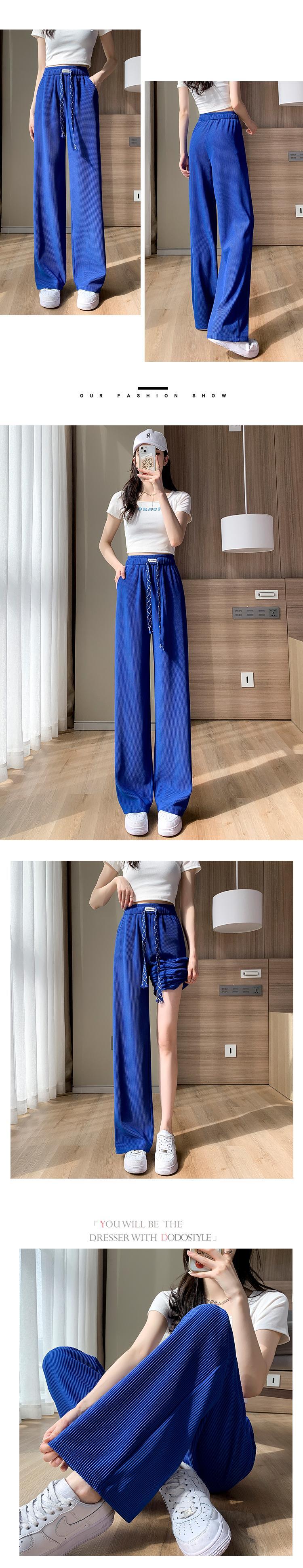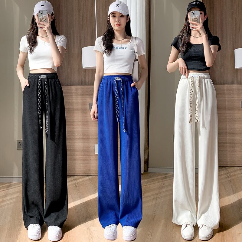 オフホワイトのアイスシルクパンツ女性の夏の薄いハイウエストワイドレッグパンツストレートチューブショー薄くてドレープなモップドローストリングカジュアルパンツ サマー 夏物 7460022461111231 | framboise21