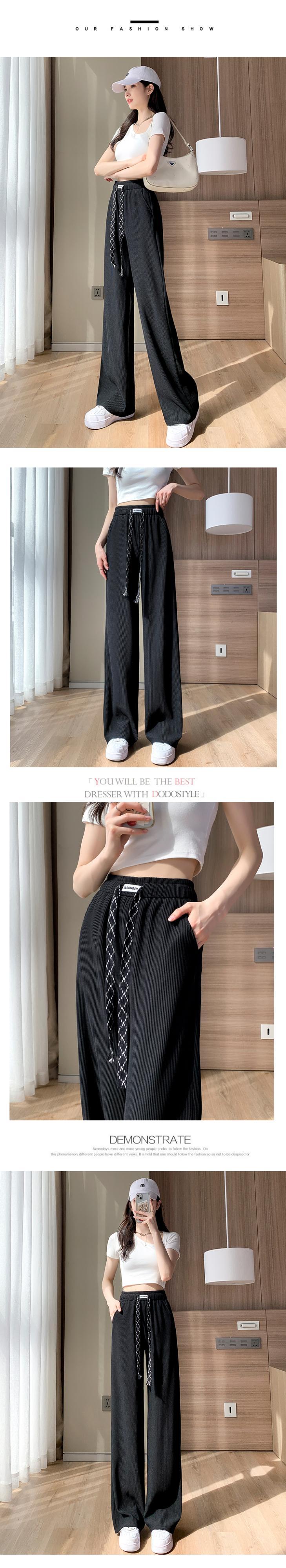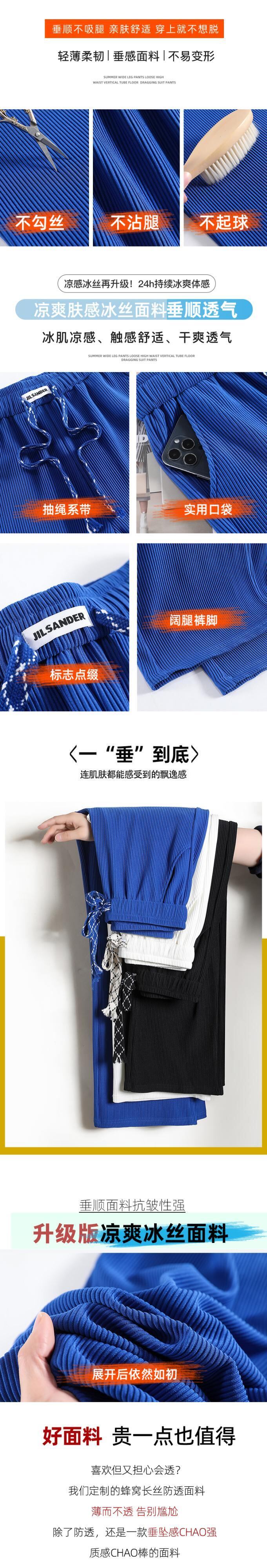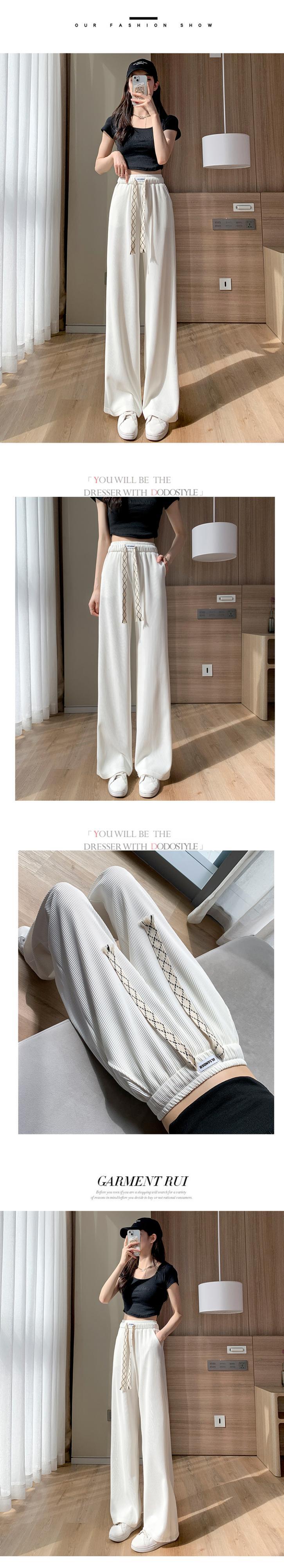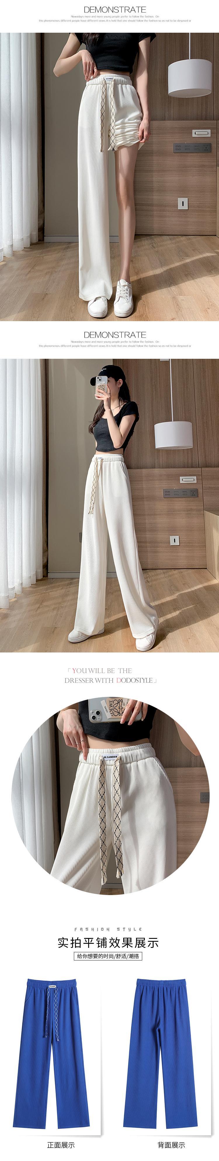 オフホワイトのアイスシルクパンツ女性の夏の薄いハイウエストワイドレッグパンツストレートチューブショー薄くてドレープなモップドローストリングカジュアルパンツ サマー 夏物 7460022461111231 | framboise21