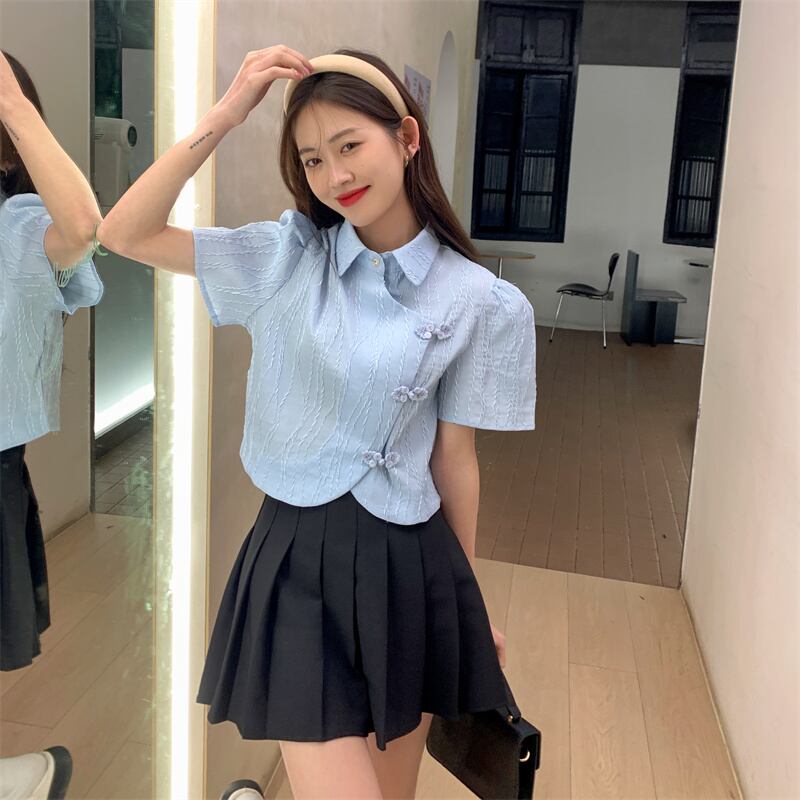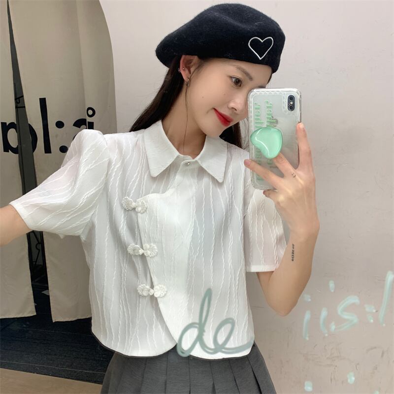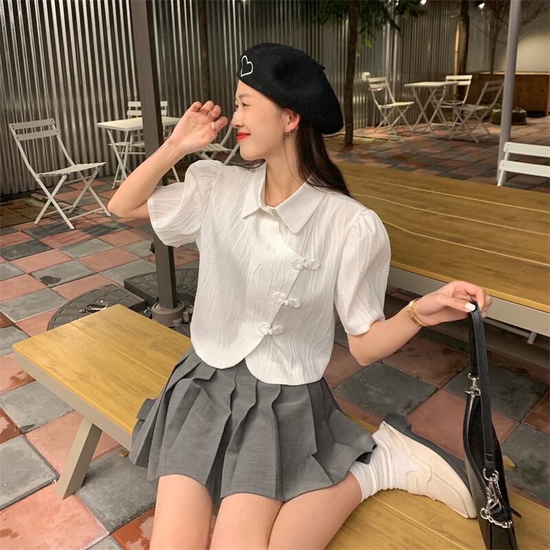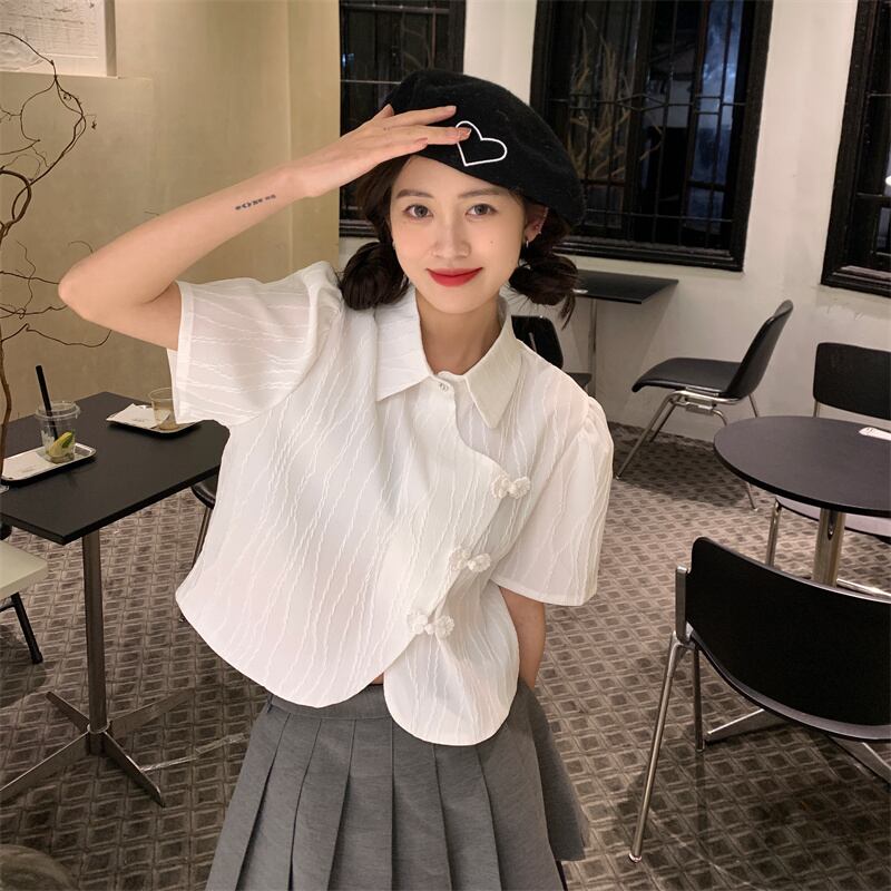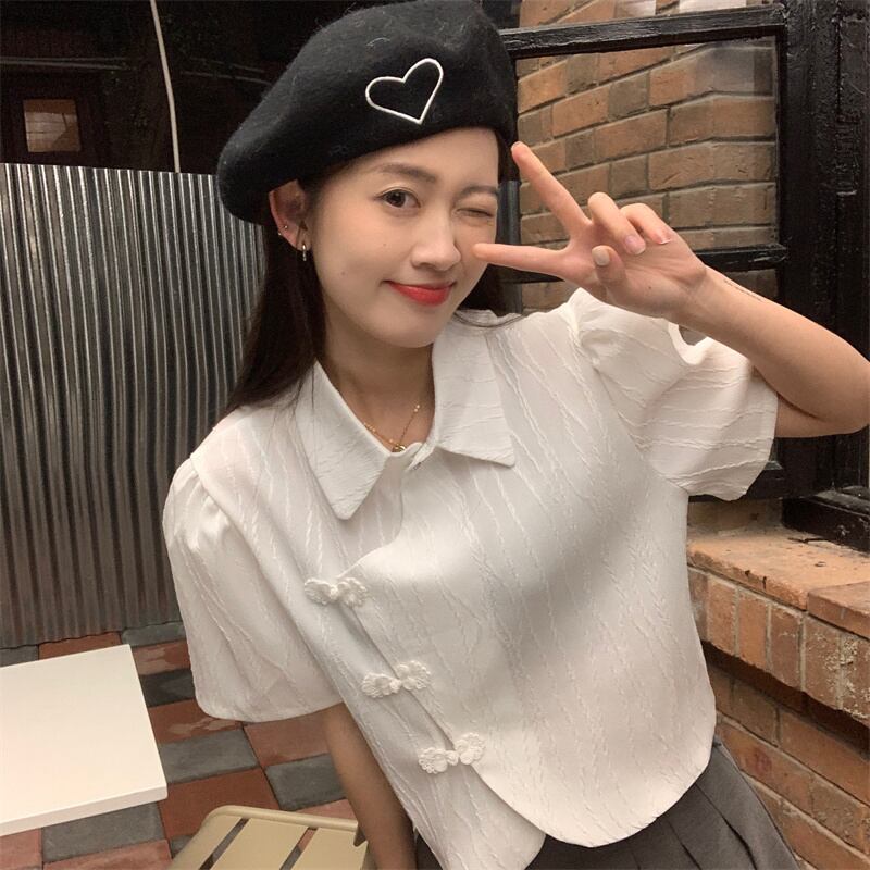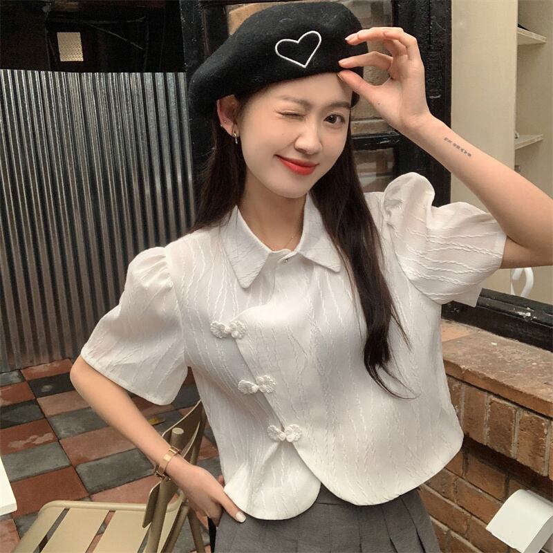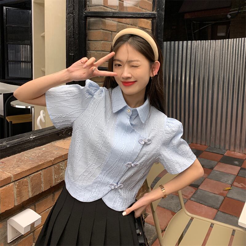 フランスの半袖シャツデザインセンス女性ニッチライトラグジュアリースタイル優しいスタイル甘くてシックなハイウエストショートトップ服 ハイウェスト 大人ガーリー スウィート キュート カジュアル 7460070469317886 | framboise21