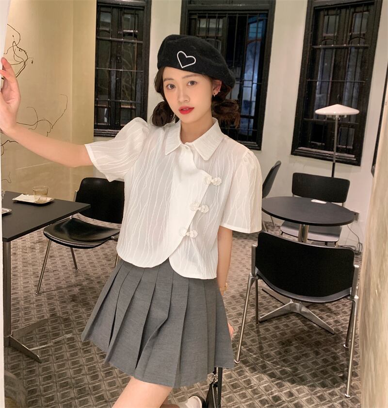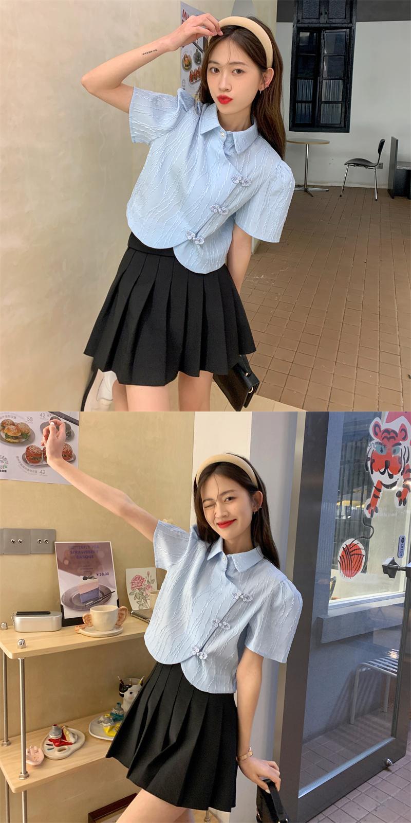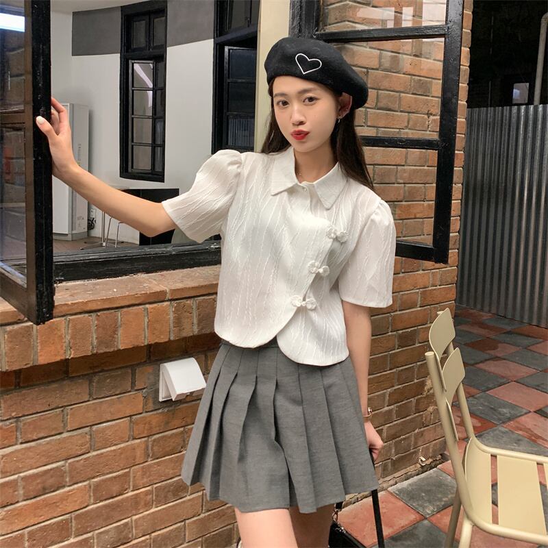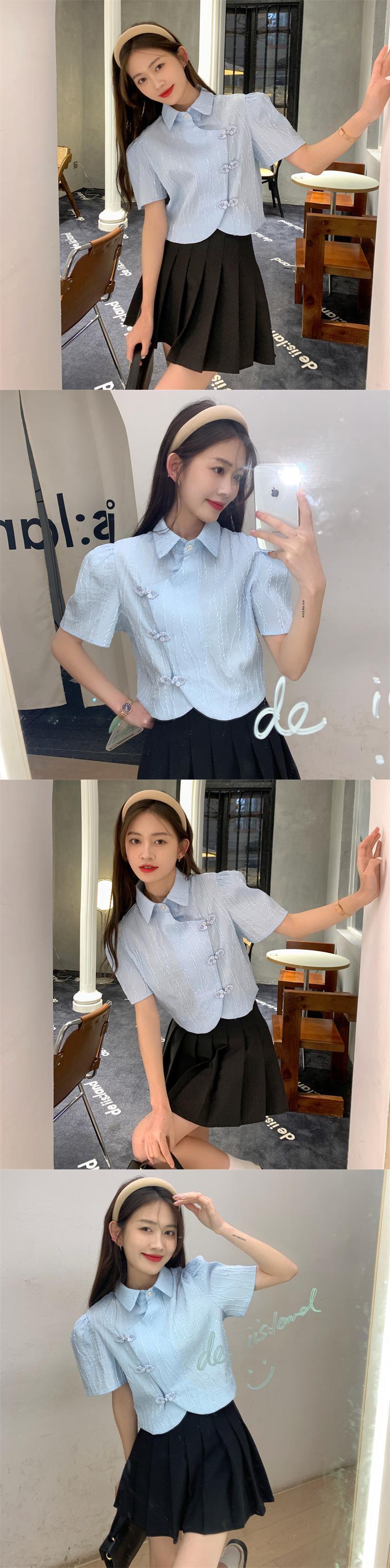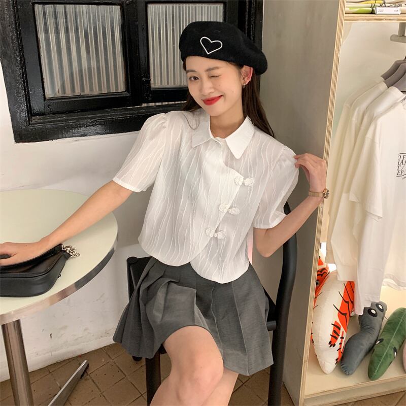 フランスの半袖シャツデザインセンス女性ニッチライトラグジュアリースタイル優しいスタイル甘くてシックなハイウエストショートトップ服 ハイウェスト 大人ガーリー スウィート キュート カジュアル 7460070469317886 | framboise21