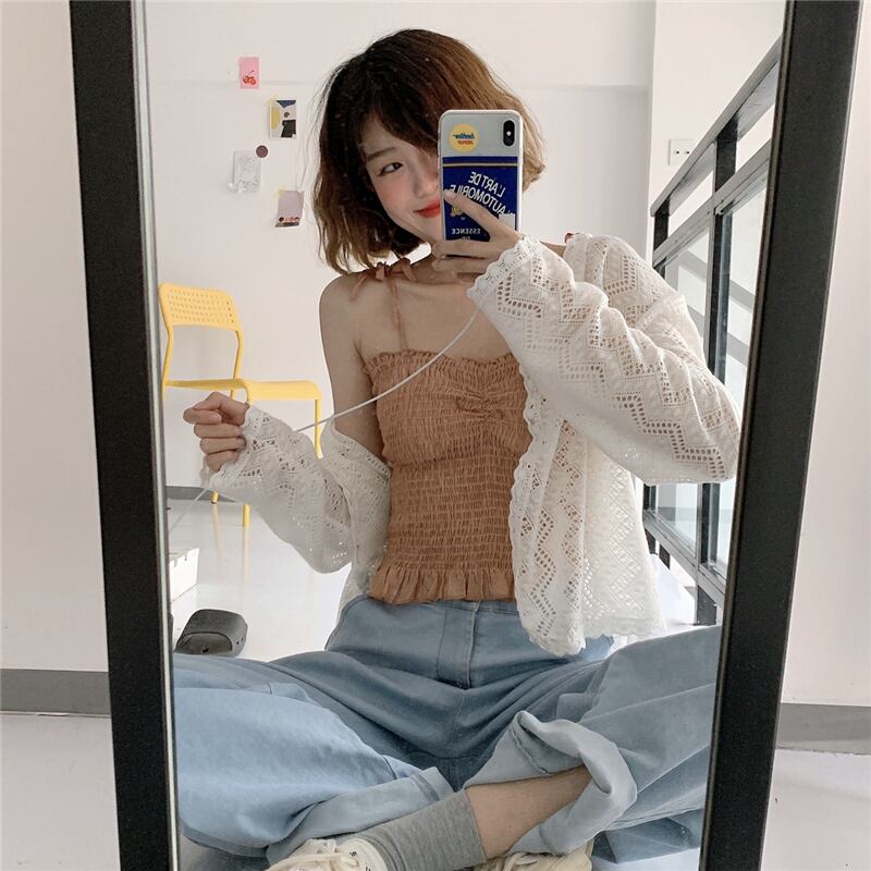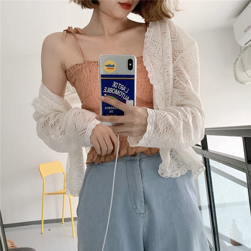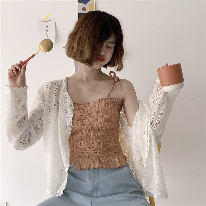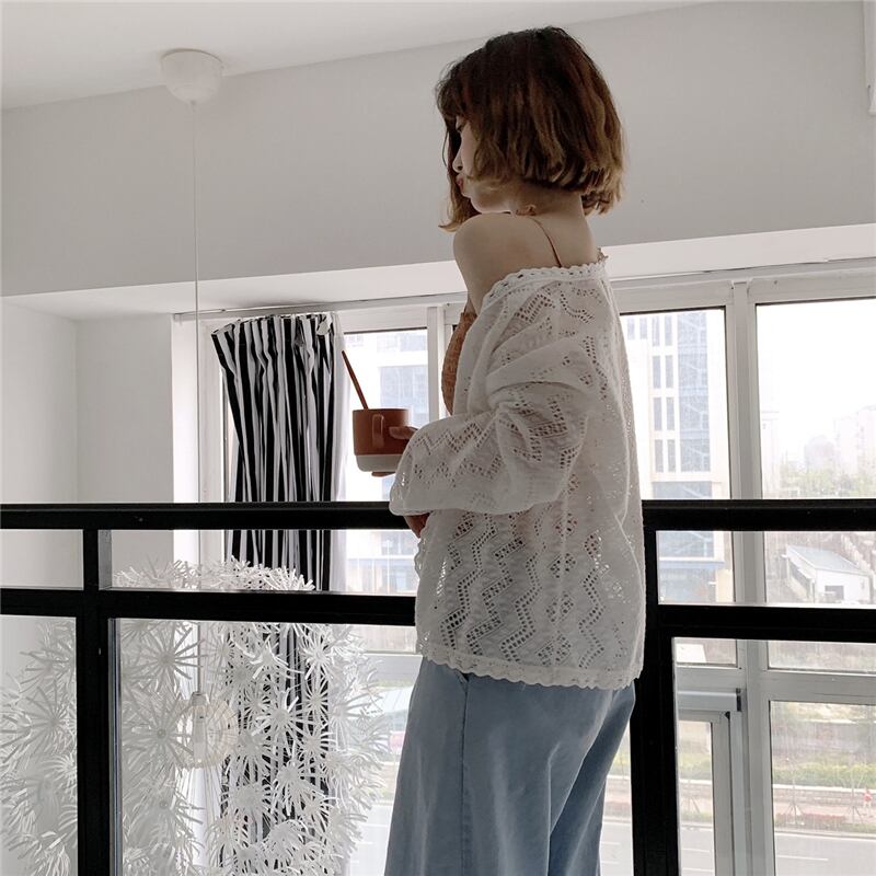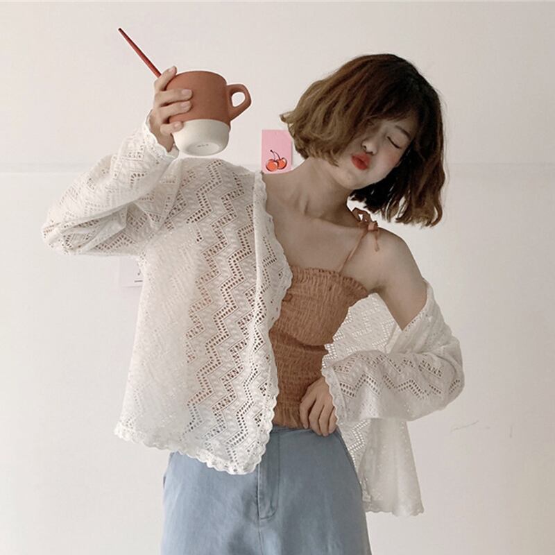 レースの日焼け止めカーディガン女性の夏の薄いニットブラウスコート、サスペンダーと短い白いメッシュのエアコン付きシャツ ショート ホワイト サマー 夏物 7460055776412857 | framboise21