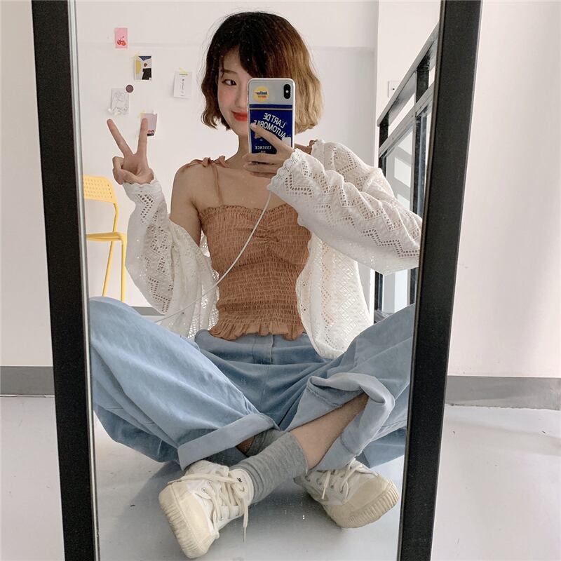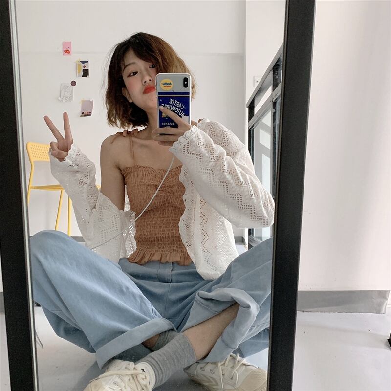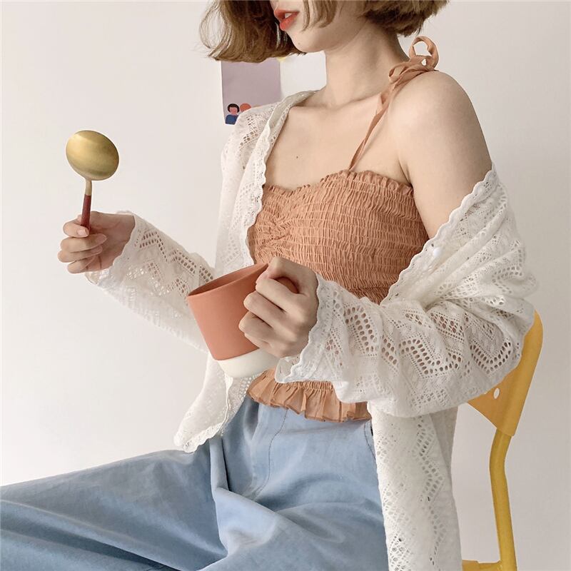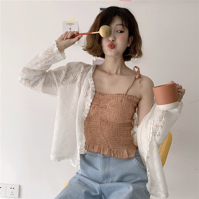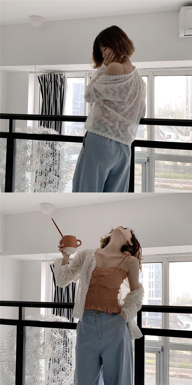レースの日焼け止めカーディガン女性の夏の薄いニットブラウスコート、サスペンダーと短い白いメッシュのエアコン付きシャツ ショート ホワイト サマー 夏物 7460055776412857 | framboise21