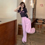 フロントショルダー半袖TシャツレディースサマーショートVネックトップフレンチデザインセンスニッチ自家栽培不規則Tシャツ 夏物 7460048770513217