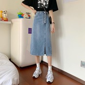 ブルースリットデニムスカートスカートミドル丈レディース春夏ハイウエスト薄手オールマッチスモールバッグヒップスカート一言 ハイウェスト スプリング 春物 サマー 夏物 7460061323857705