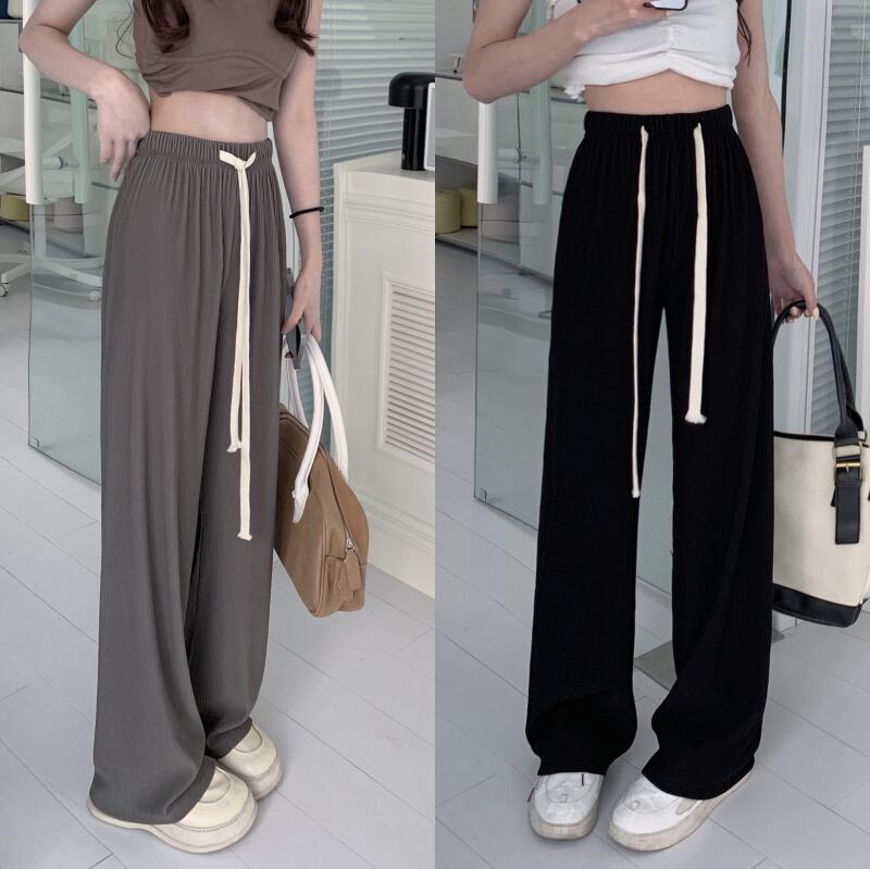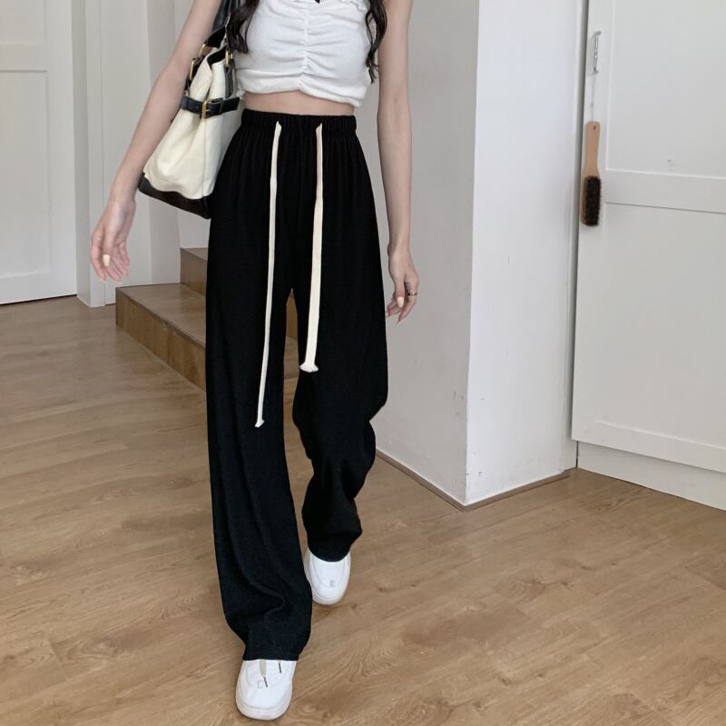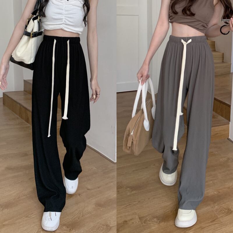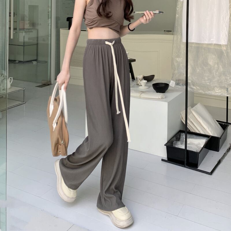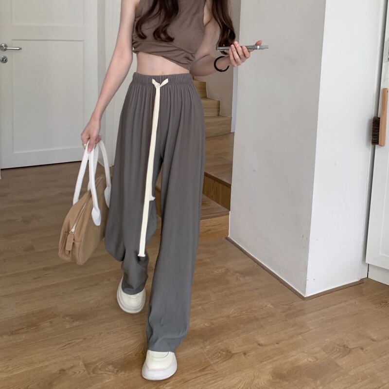 ストレートワイドレッグパンツレディースサマーハイウエストドローストリングカジュアルパンツルーズ&シンスモール伸縮性ウエストパンツトレンディイン ハイウェスト エラスティック 夏物 ワイドパンツ 7460067955149500 | framboise21