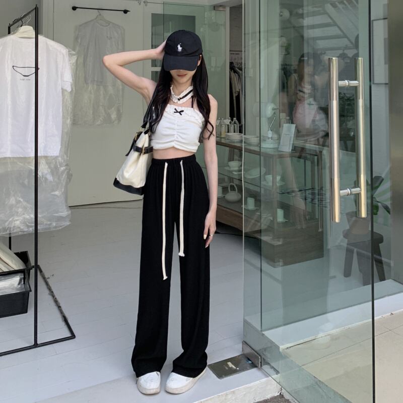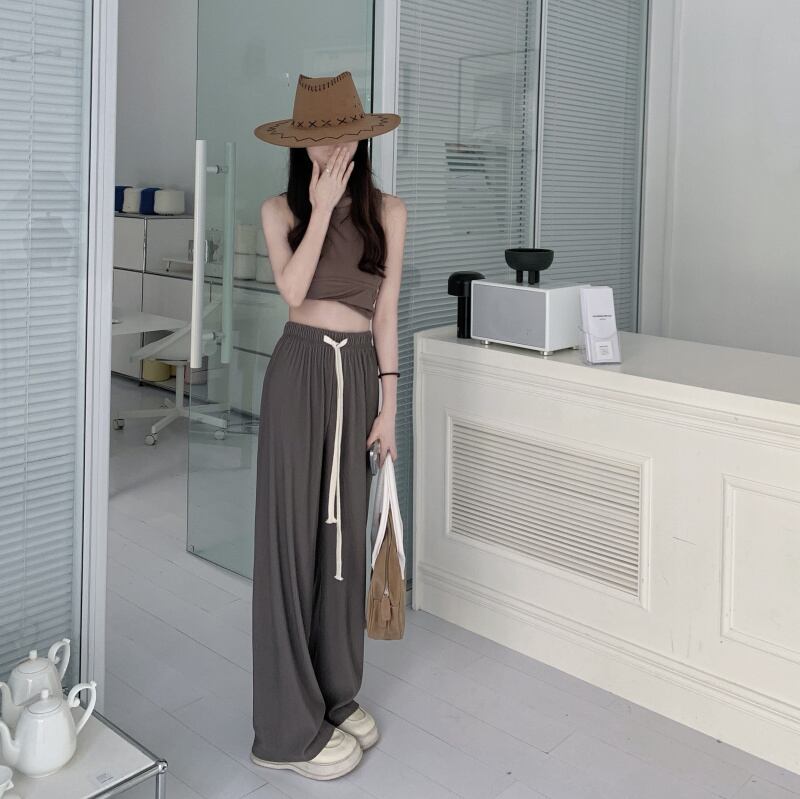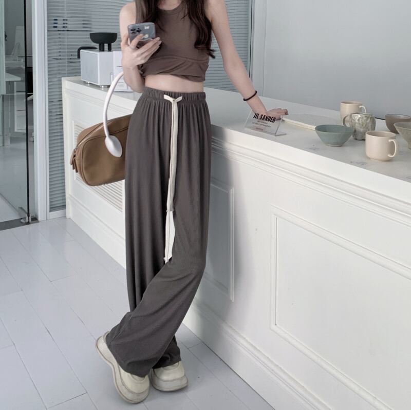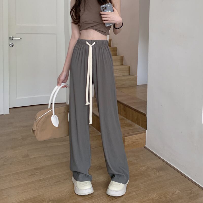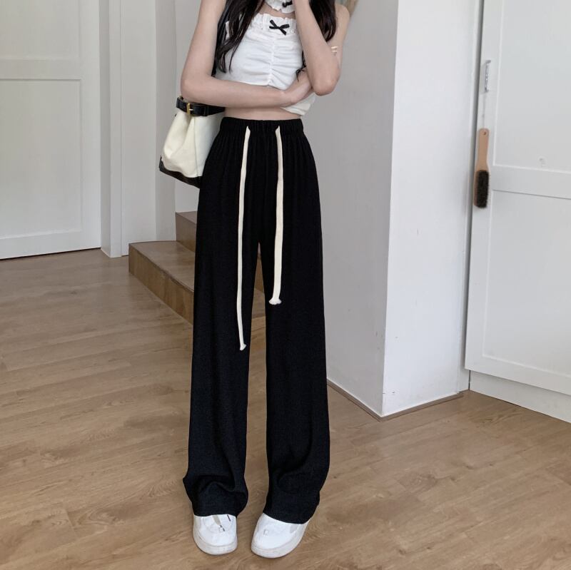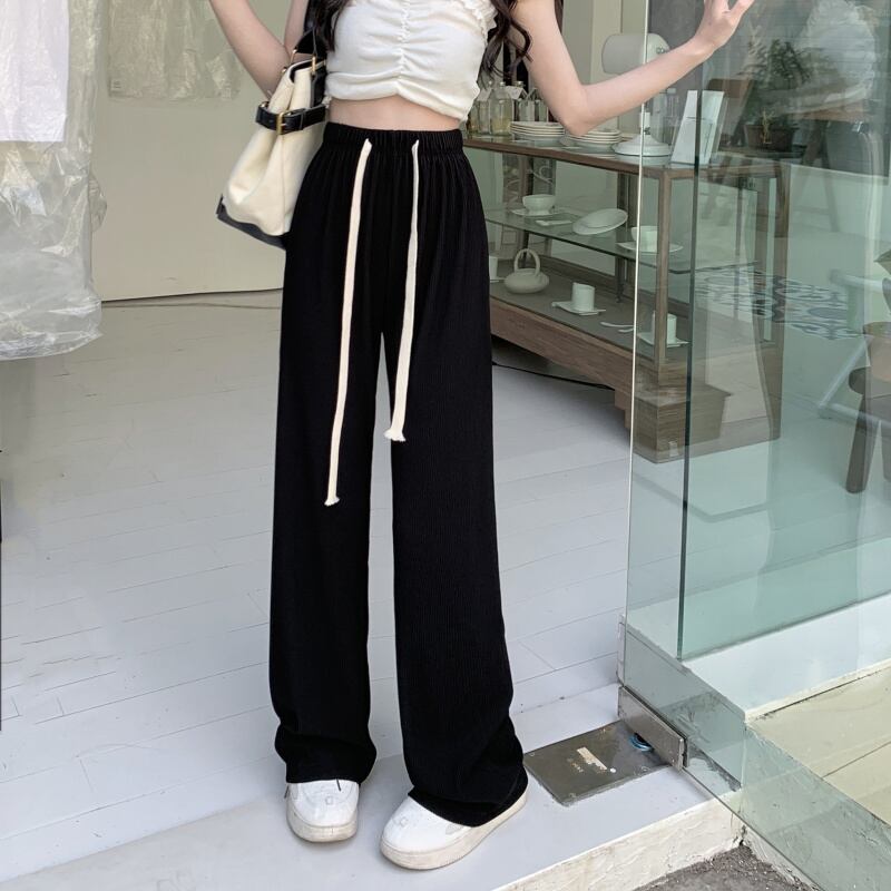 ストレートワイドレッグパンツレディースサマーハイウエストドローストリングカジュアルパンツルーズ&シンスモール伸縮性ウエストパンツトレンディイン ハイウェスト エラスティック 夏物 ワイドパンツ 7460067955149500 | framboise21
