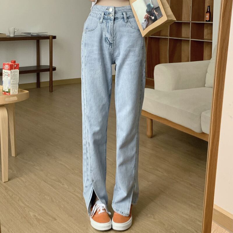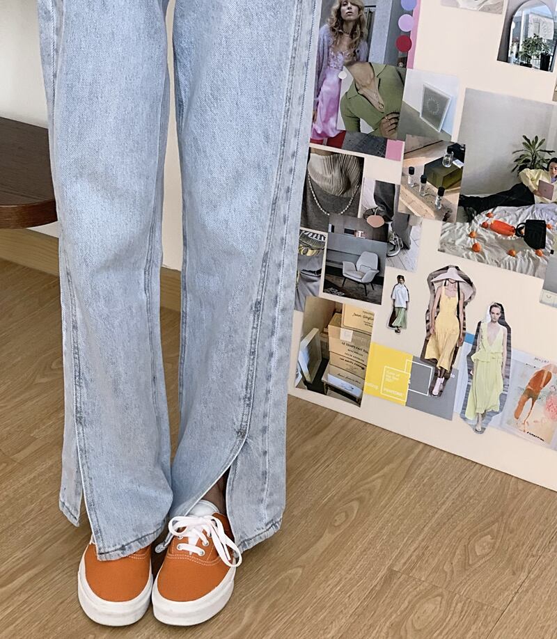 2022年新作フロアモップパンツスモールスプリットデニムワイドレッグパンツハイウエストジーンズレディースストレートパンツ春秋 スプリング 春物 オータム 秋物 7460027075019331 | framboise21