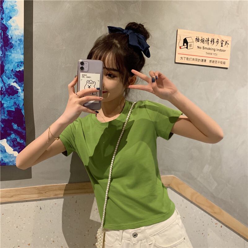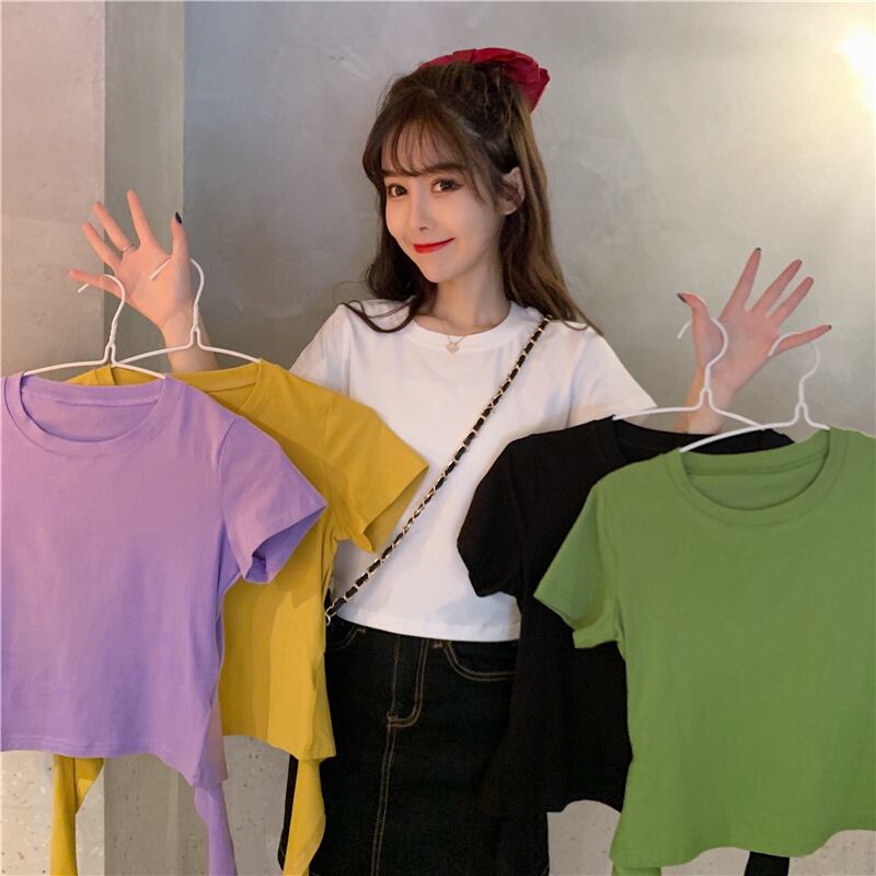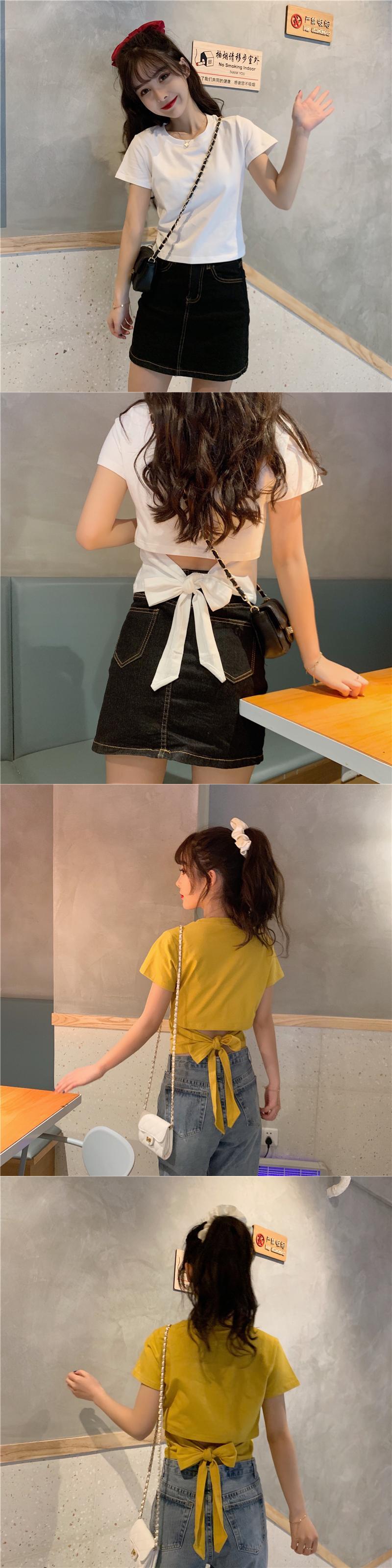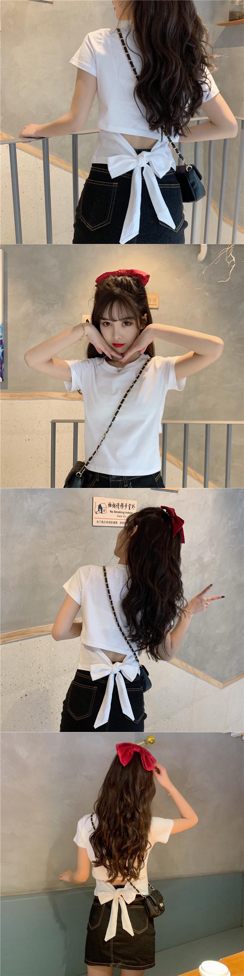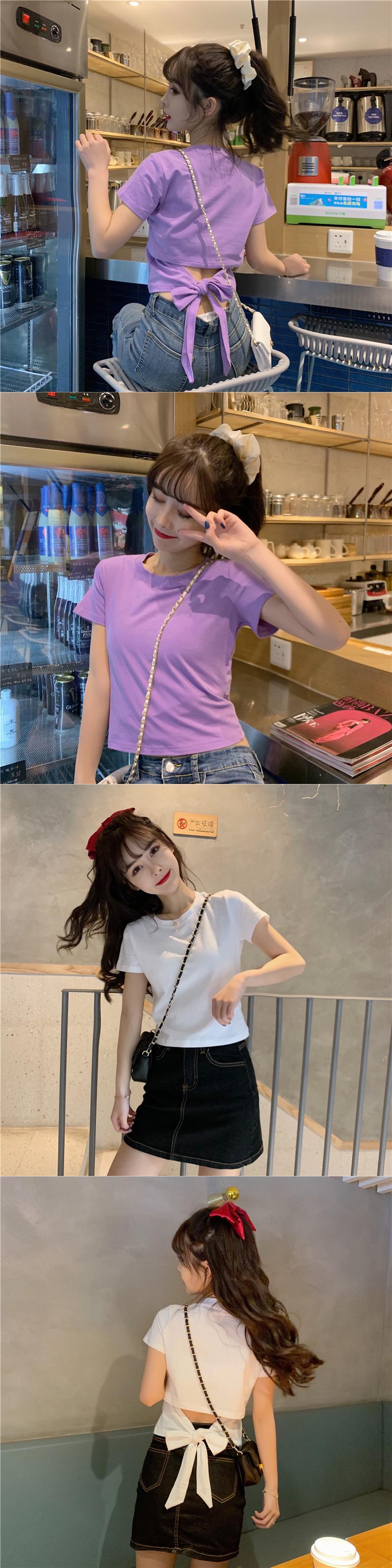 不規則な背中の開いた半袖Tシャツ女性の夏のニッチなデザインの蝶ネクタイハイウエストショートシックなトップ ハイウェスト リボン サマー 夏物 7460071544997302 | framboise21
