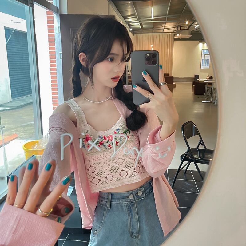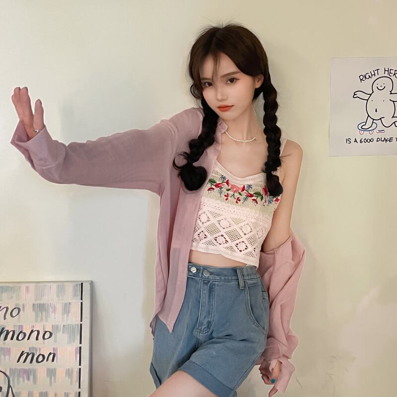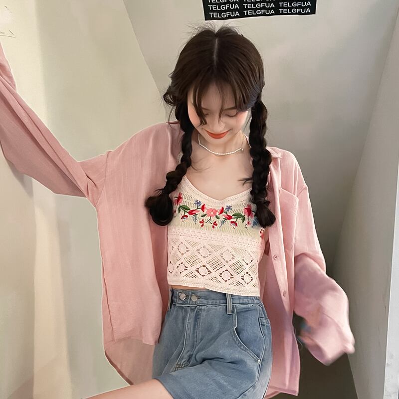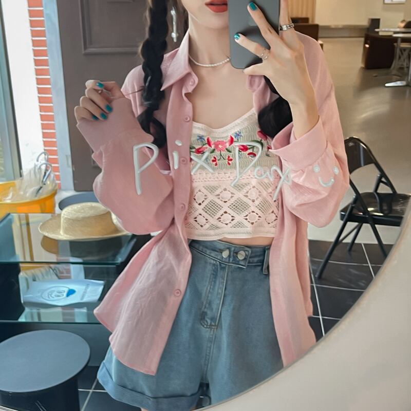 ピンクの日焼け止めシャツ女性の2022年夏の新しい甘いデザインルーズアウターウェア薄いミドル丈コート 大人ガーリー スウィート キュート カジュアル サマー 夏物 7460022668533698 | framboise21