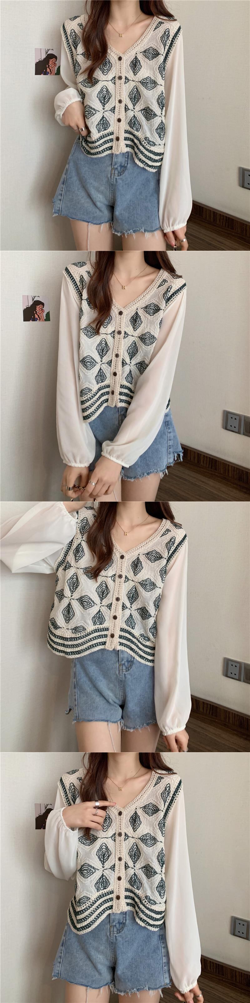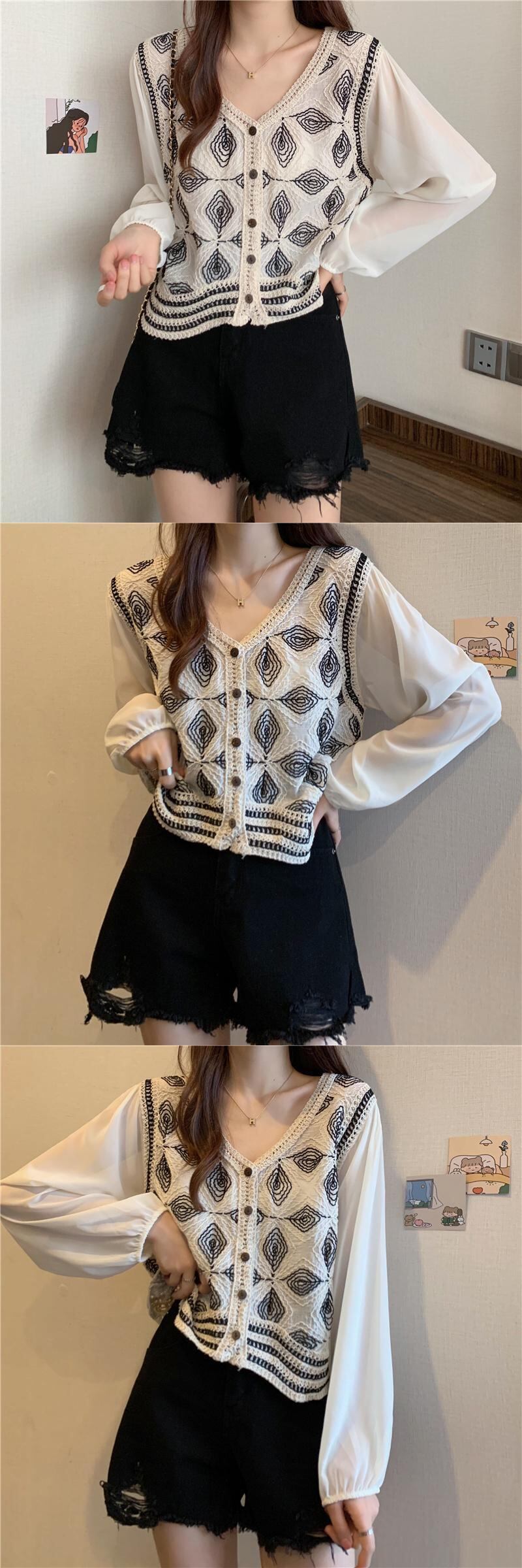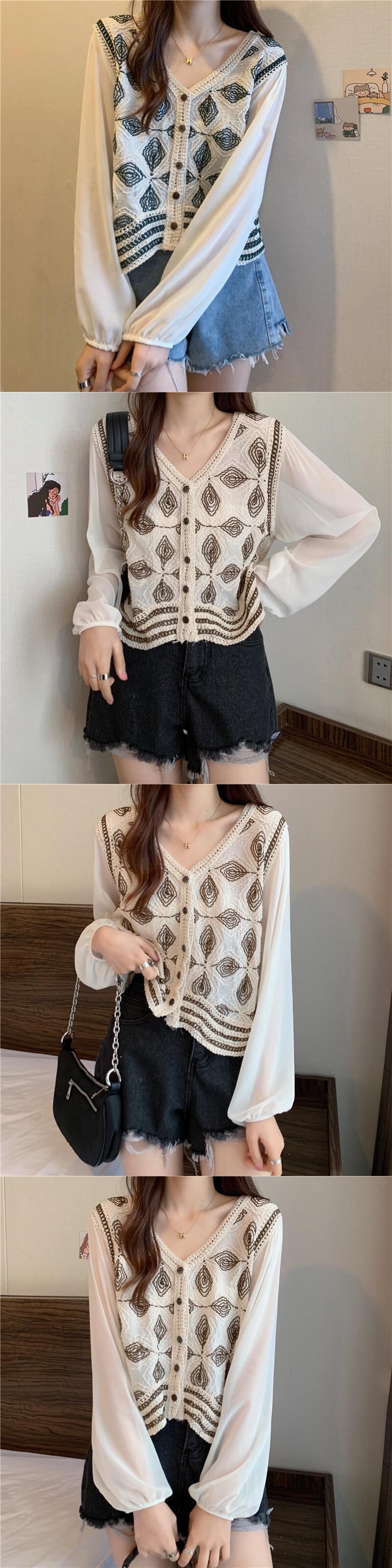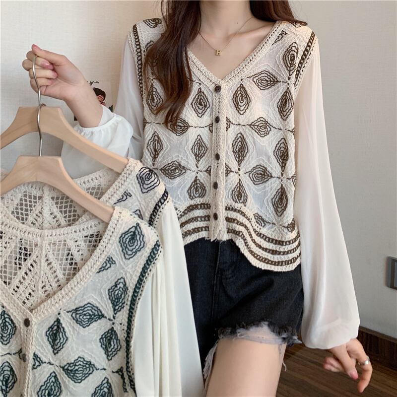 2022年春秋新作ステッチシフォン長袖トップレディースアウターレトロVネックニットセーターニッチシックカーディガン ロング スプリング 春物 オータム 秋物 7460049756184390 | framboise21