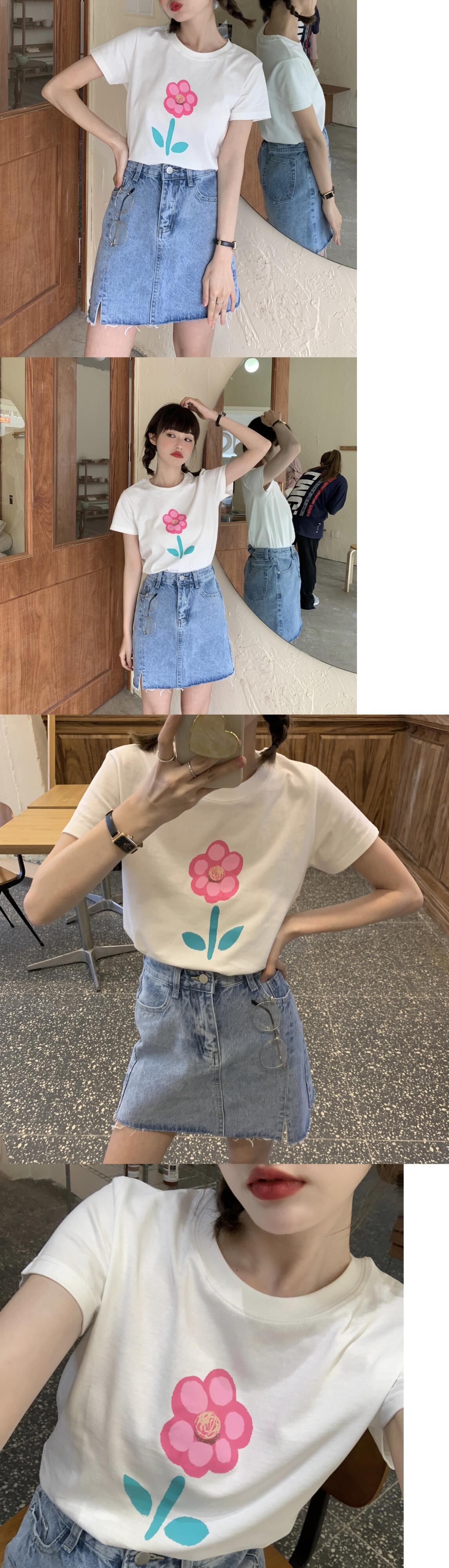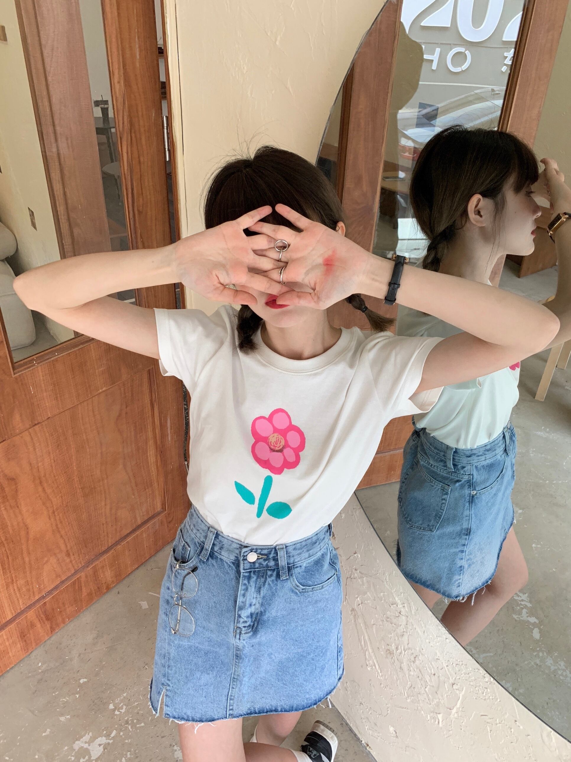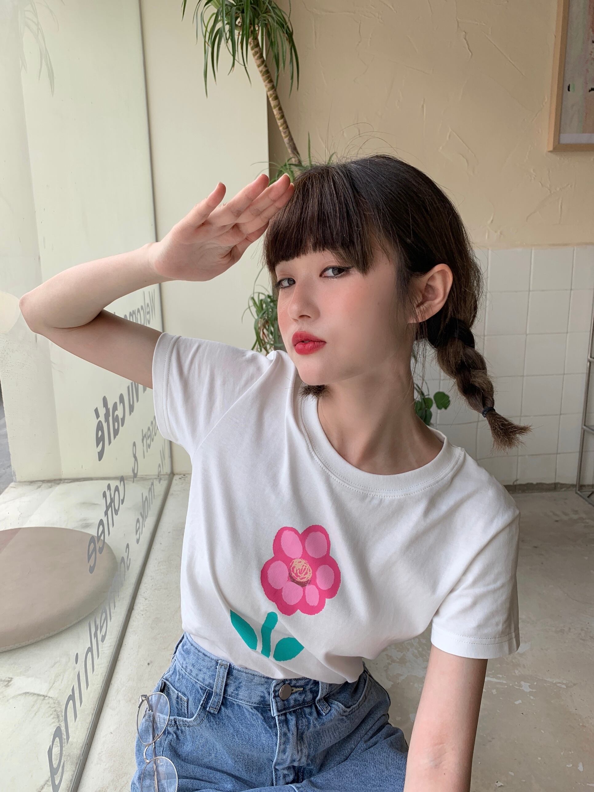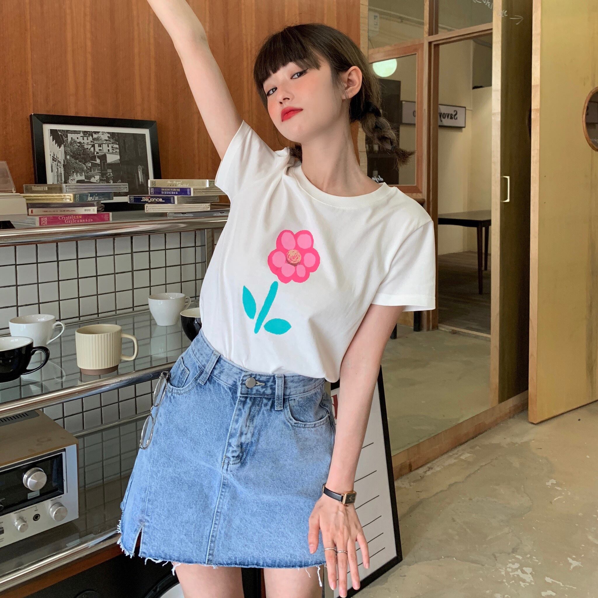 シンプルなフラワープリントの半袖Tシャツの女性の春と夏の小さな丸い首の緩いオールマッチボトミングシャツトップのバージョン スプリング 春物 サマー 夏物 Oネック フラワーデザイン 746006488959655 | framboise21