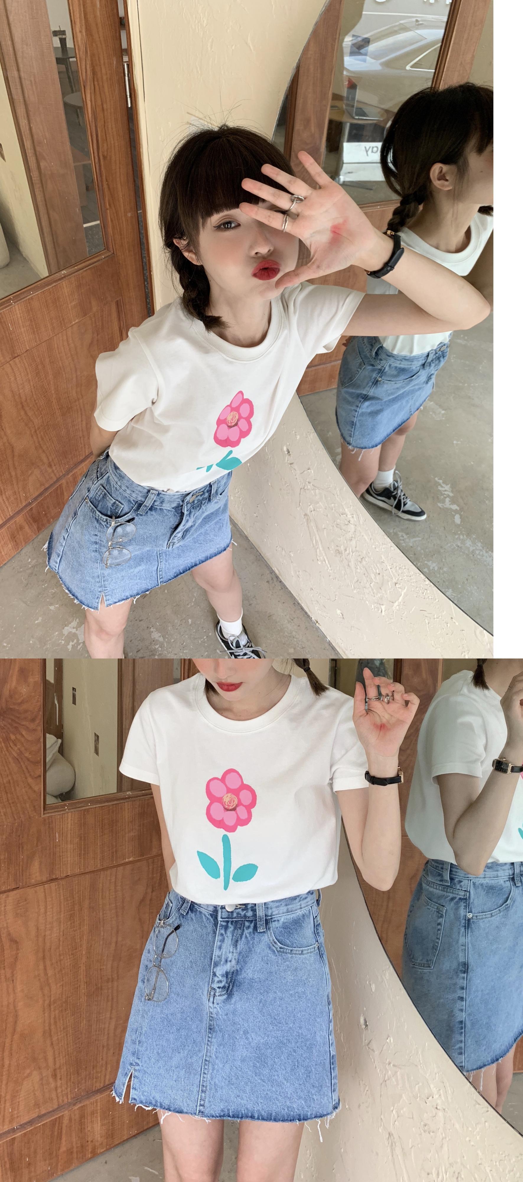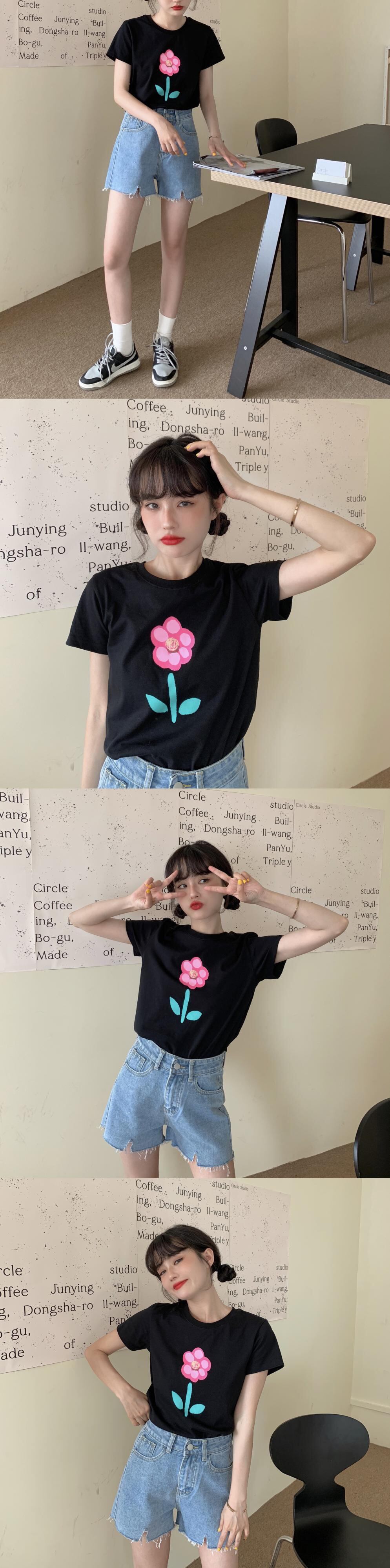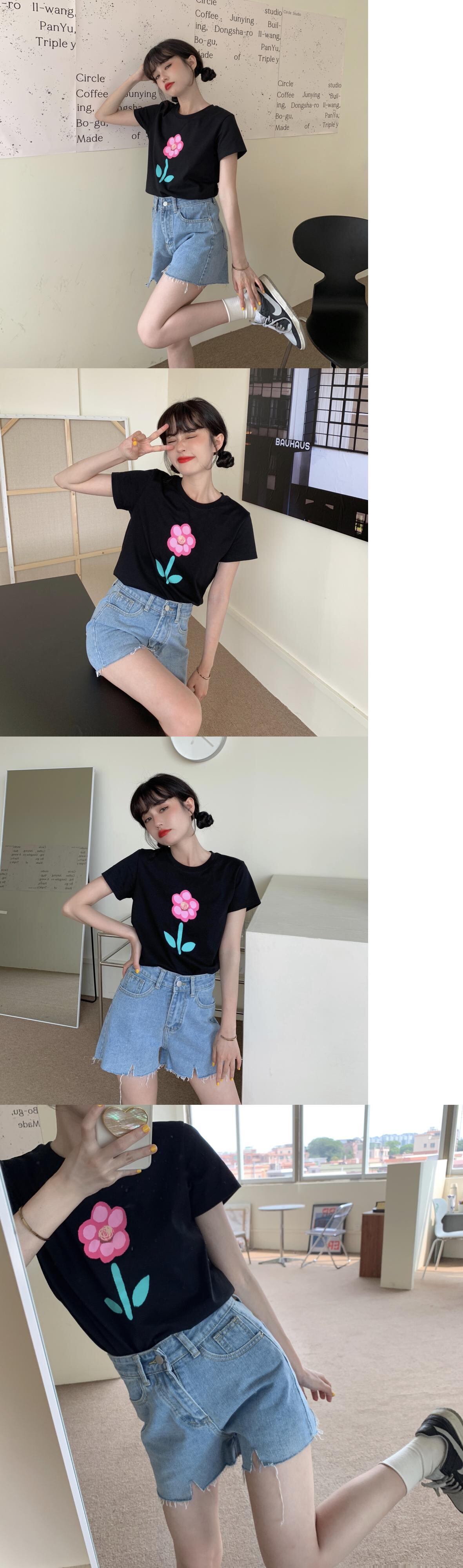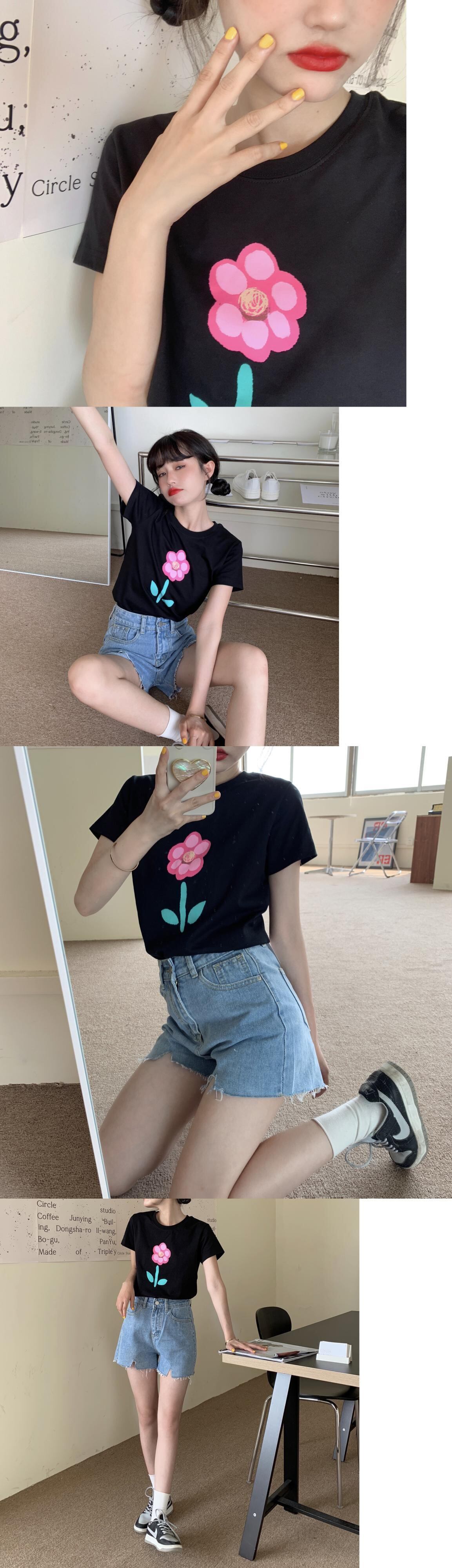 シンプルなフラワープリントの半袖Tシャツの女性の春と夏の小さな丸い首の緩いオールマッチボトミングシャツトップのバージョン スプリング 春物 サマー 夏物 Oネック フラワーデザイン 746006488959655 | framboise21