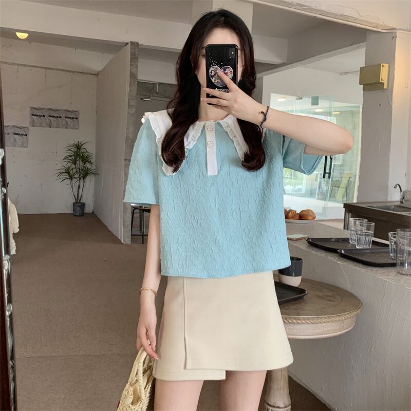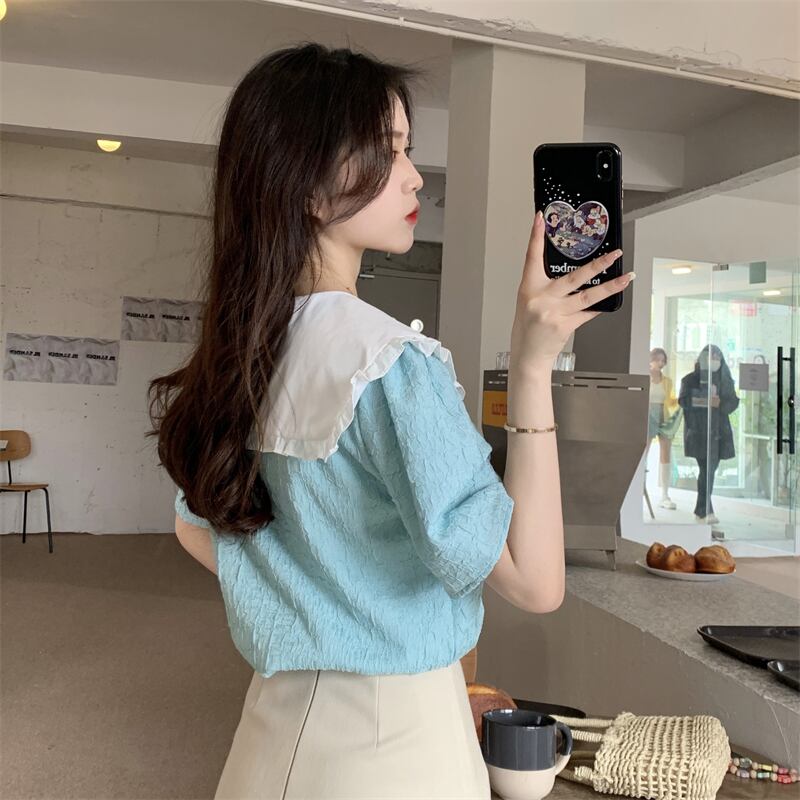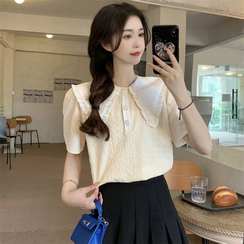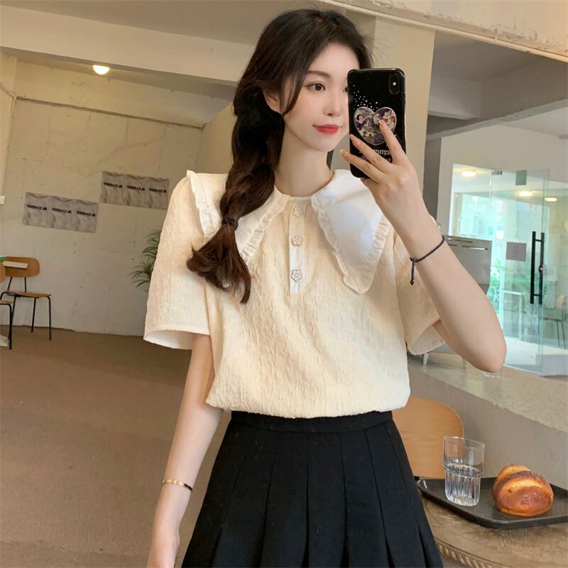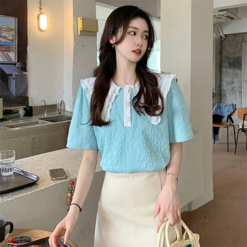 フレンチスタイルのドールカラー半袖シャツレディースサマー気質スタイル優しいスモールフレッシュでスウィートなトップデザインスモールセンス 大人ガーリー キュート カジュアル 夏物 746009907050469 | framboise21