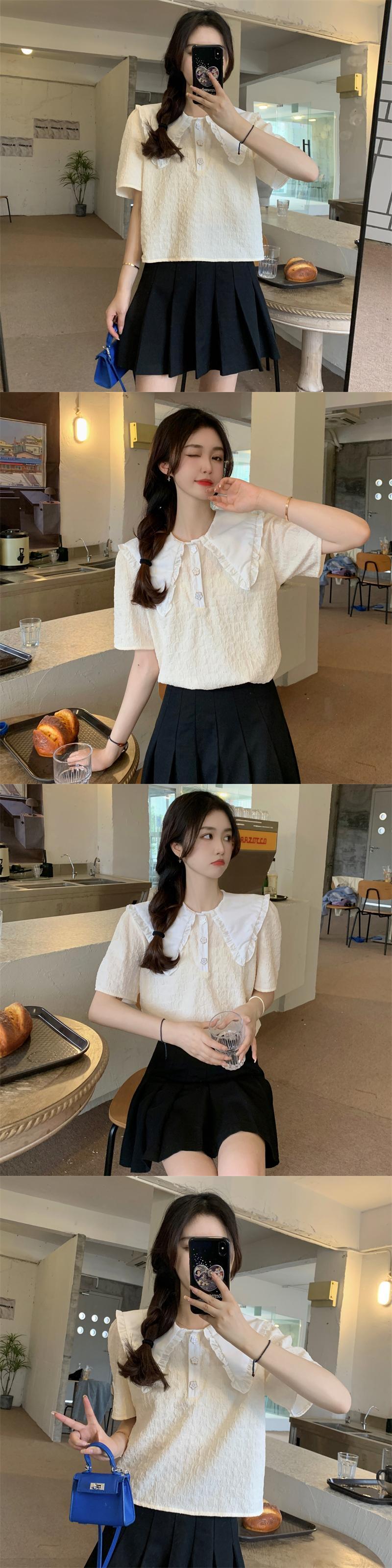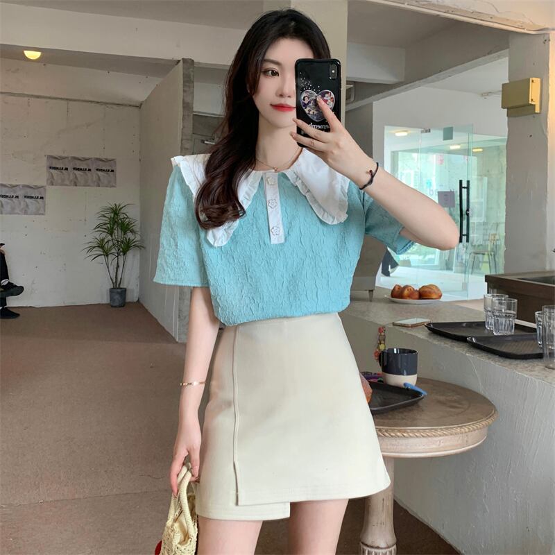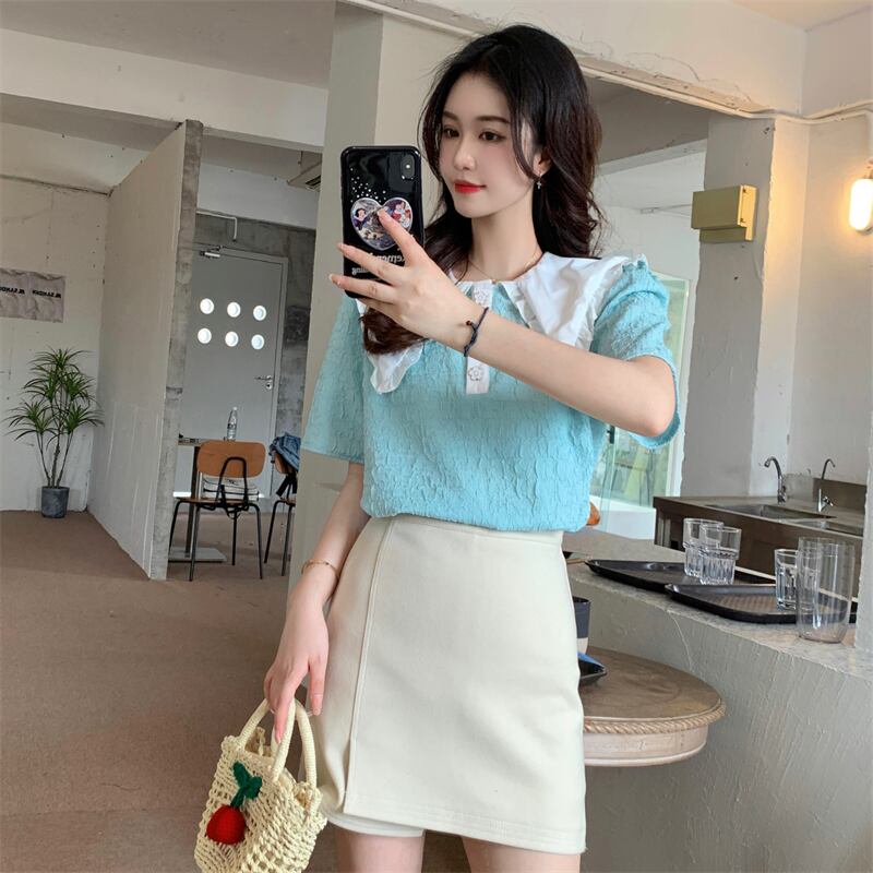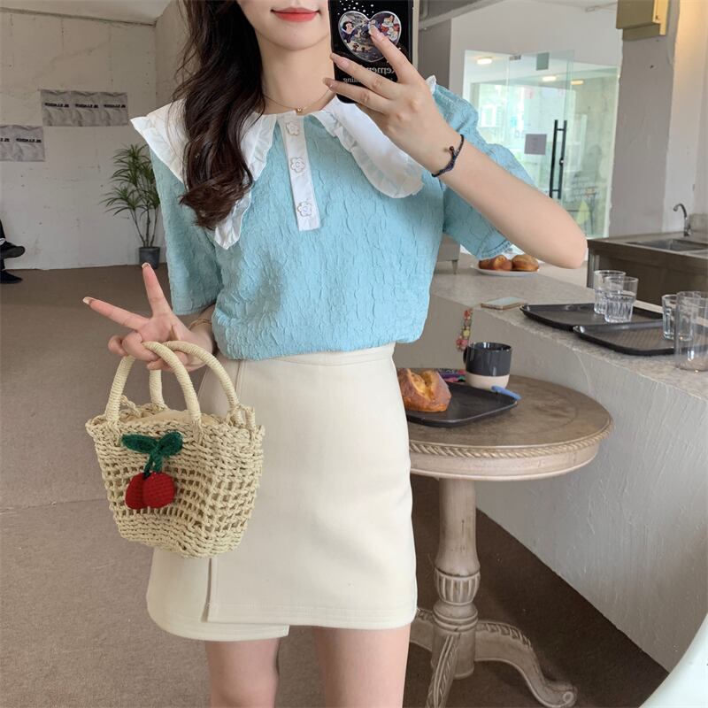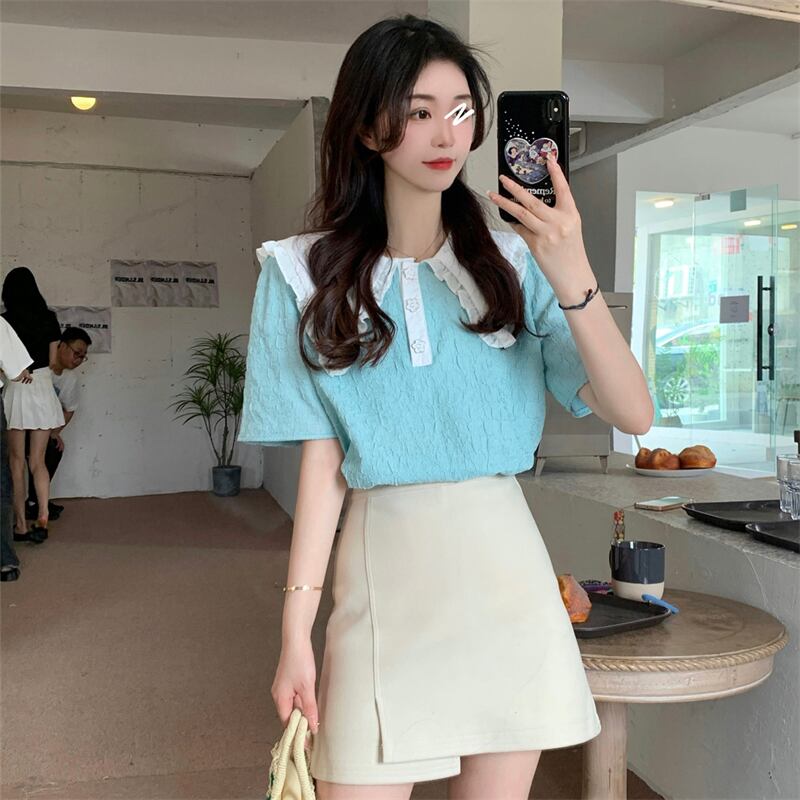 フレンチスタイルのドールカラー半袖シャツレディースサマー気質スタイル優しいスモールフレッシュでスウィートなトップデザインスモールセンス 大人ガーリー キュート カジュアル 夏物 746009907050469 | framboise21
