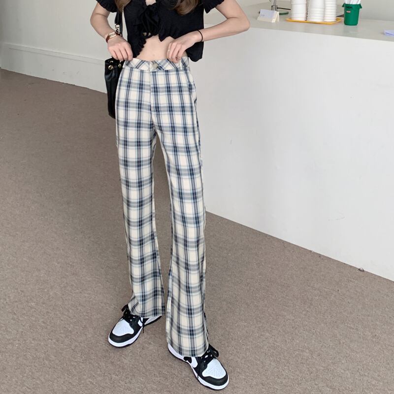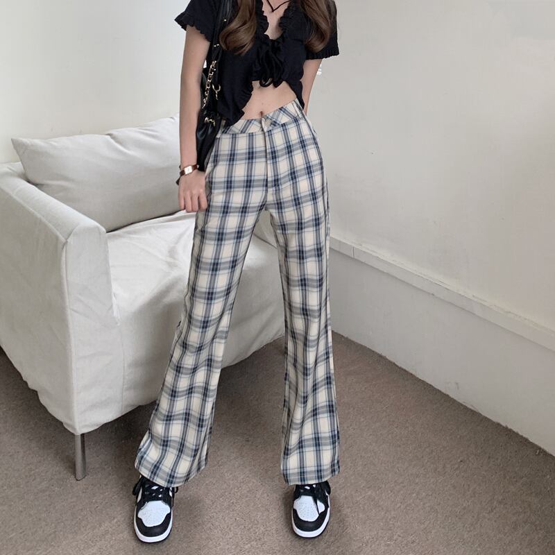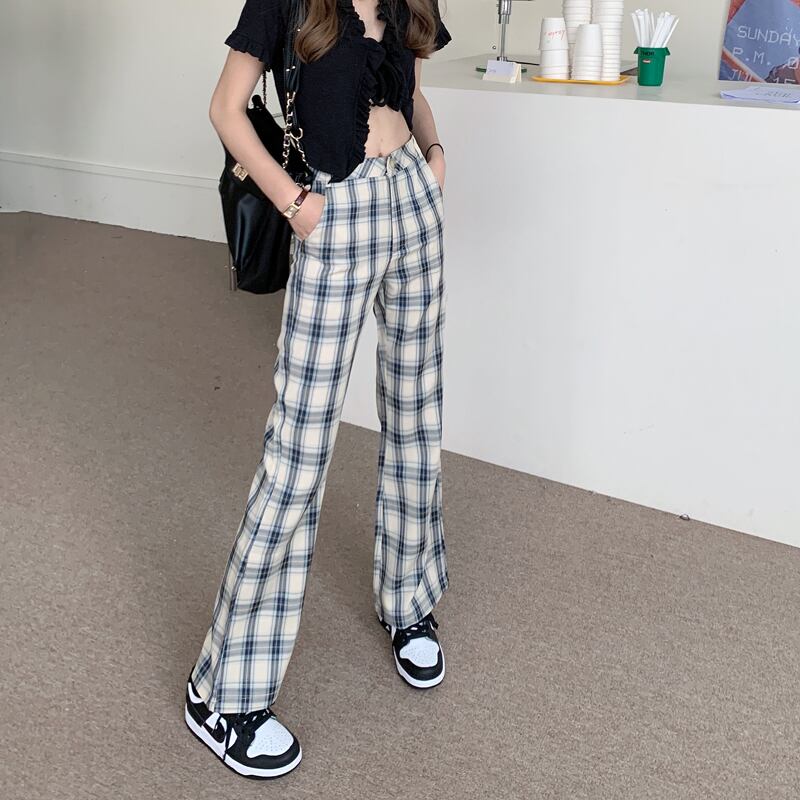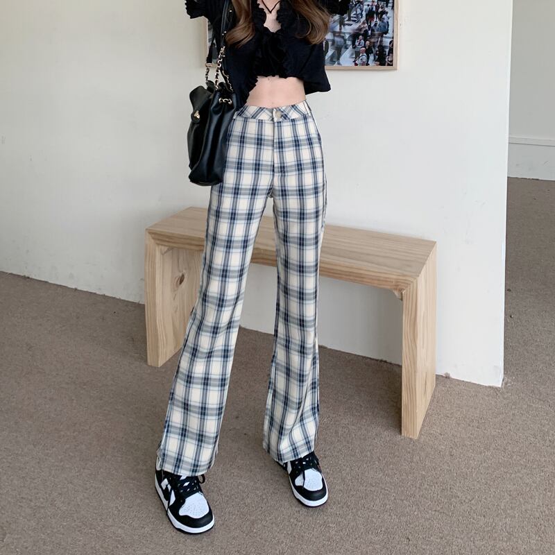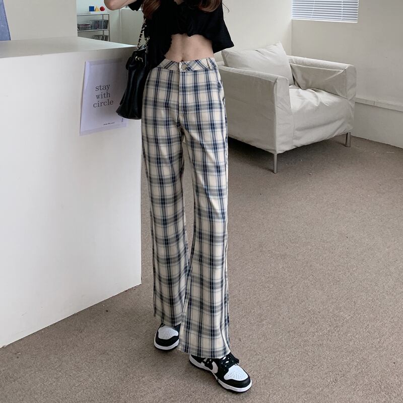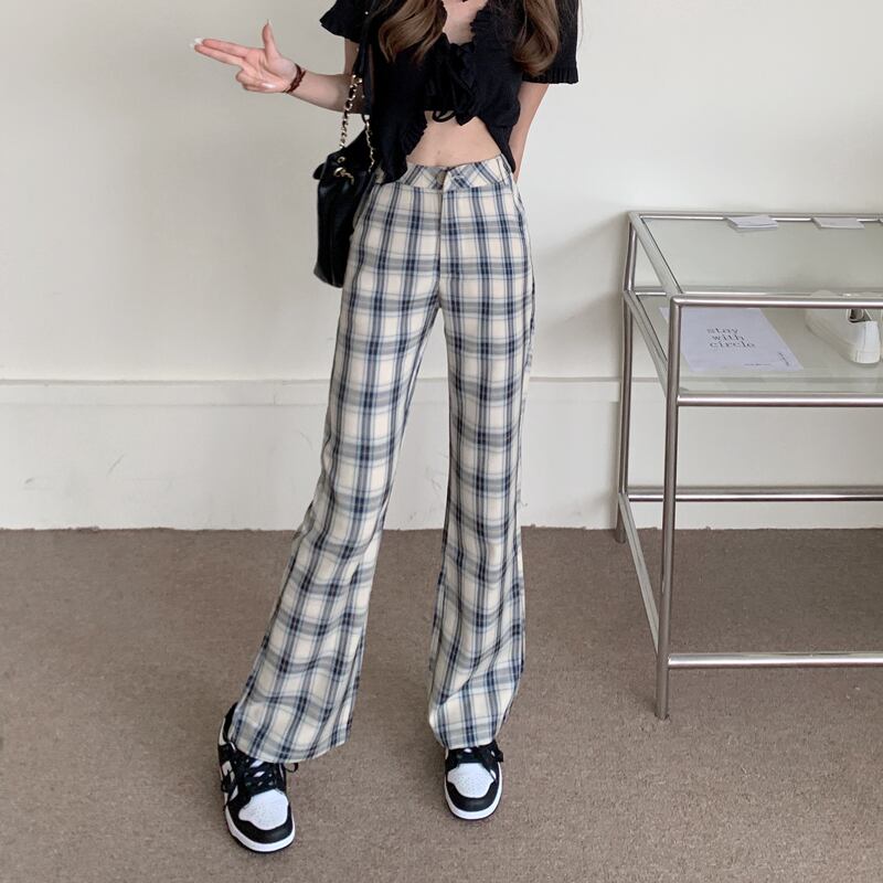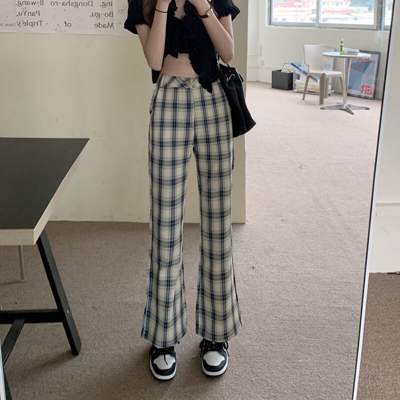 夏のチェック柄ルーズワイドレッグパンツレディース夏の薄手のパンツスーツパンツハイウエストドレープパンツスモールチェック柄パンツ ハイウェスト サマー 夏物 7460012611551239 | framboise21