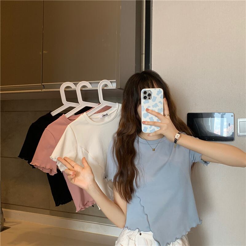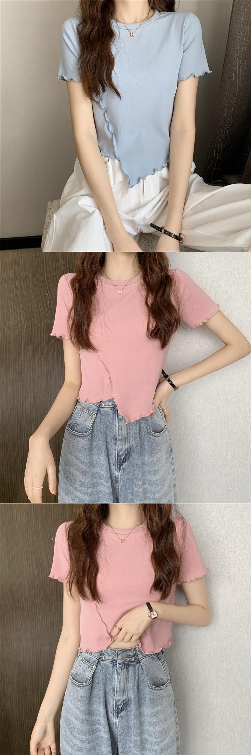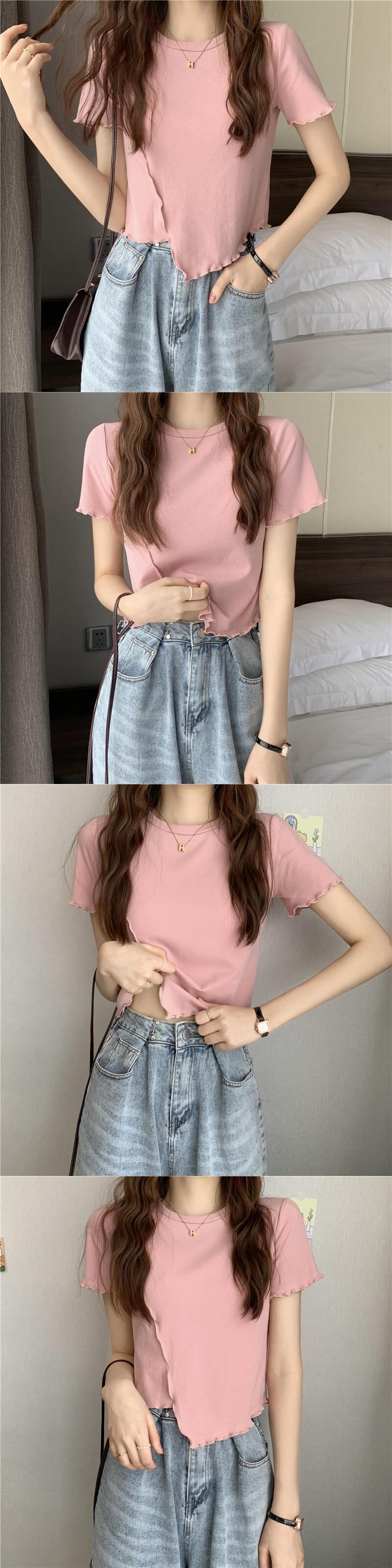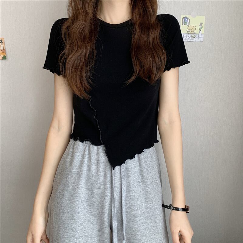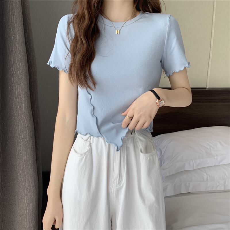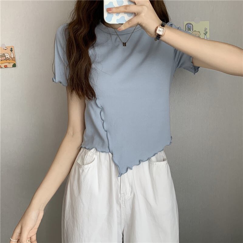不規則な半袖Tシャツ女性の2022年夏の新しいデザインの真菌エッジショートトップ、ハイウエストワイドレッグパンツ ハイウェスト サマー 夏物 ワイドパンツ 7460060284276147 | framboise21
