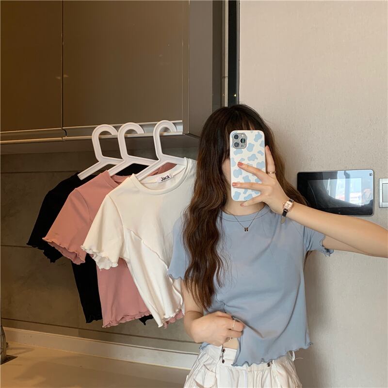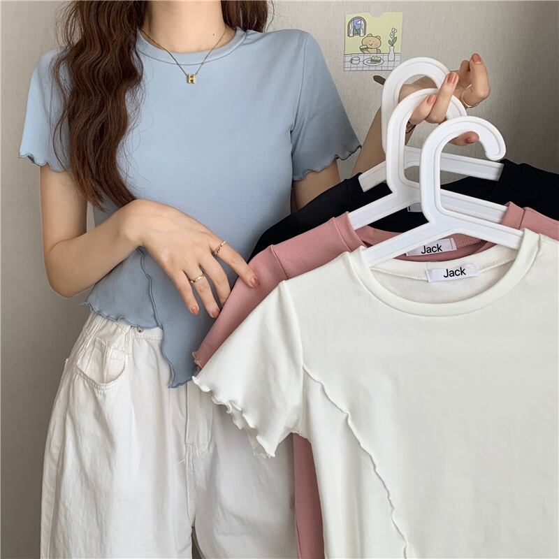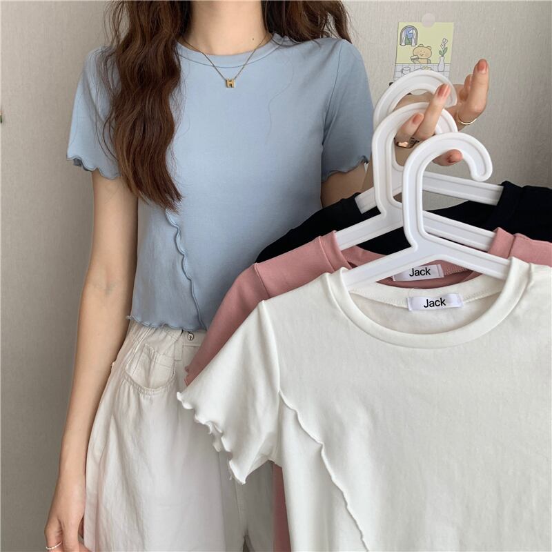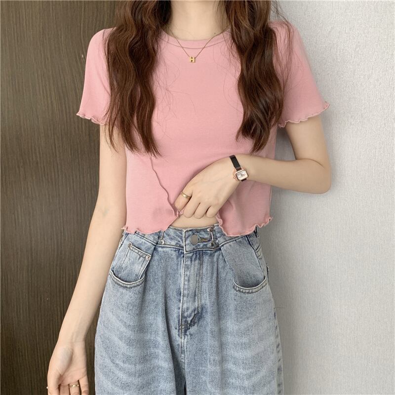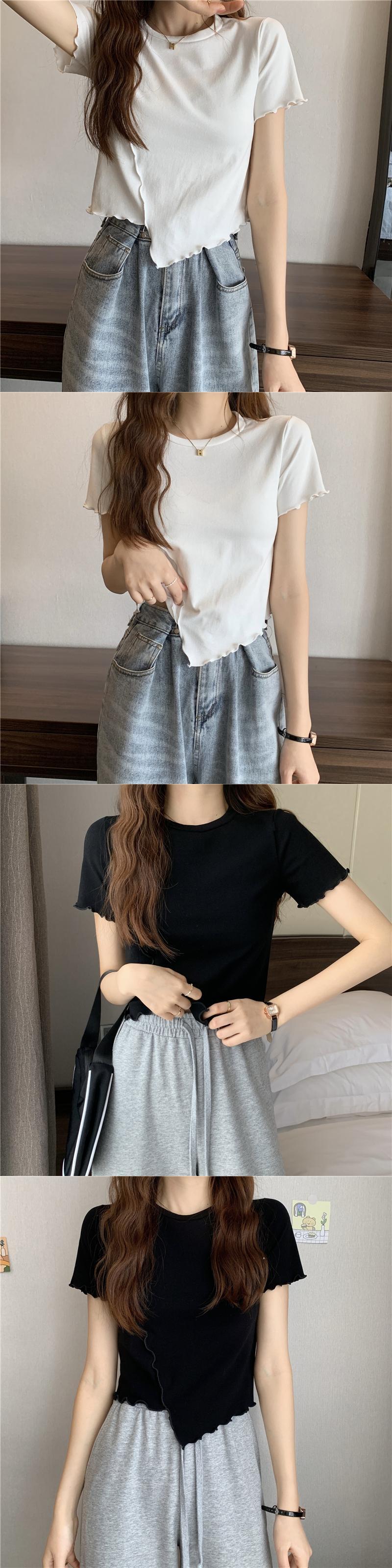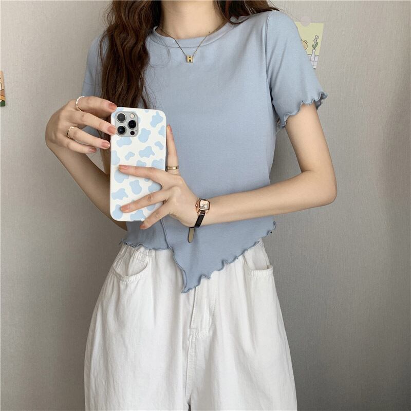 不規則な半袖Tシャツ女性の2022年夏の新しいデザインの真菌エッジショートトップ、ハイウエストワイドレッグパンツ ハイウェスト サマー 夏物 ワイドパンツ 7460060284276147 | framboise21