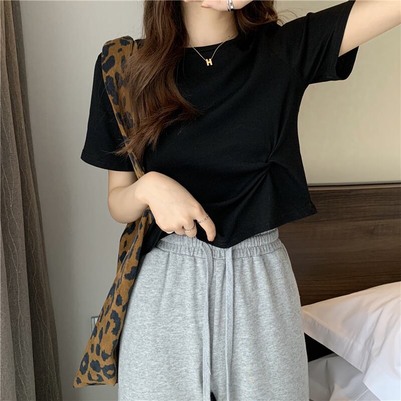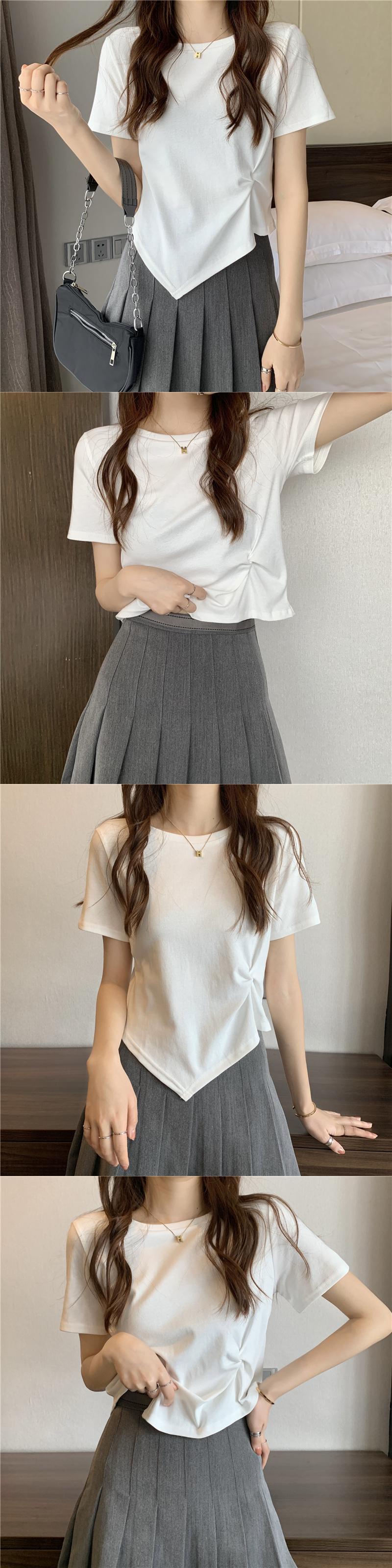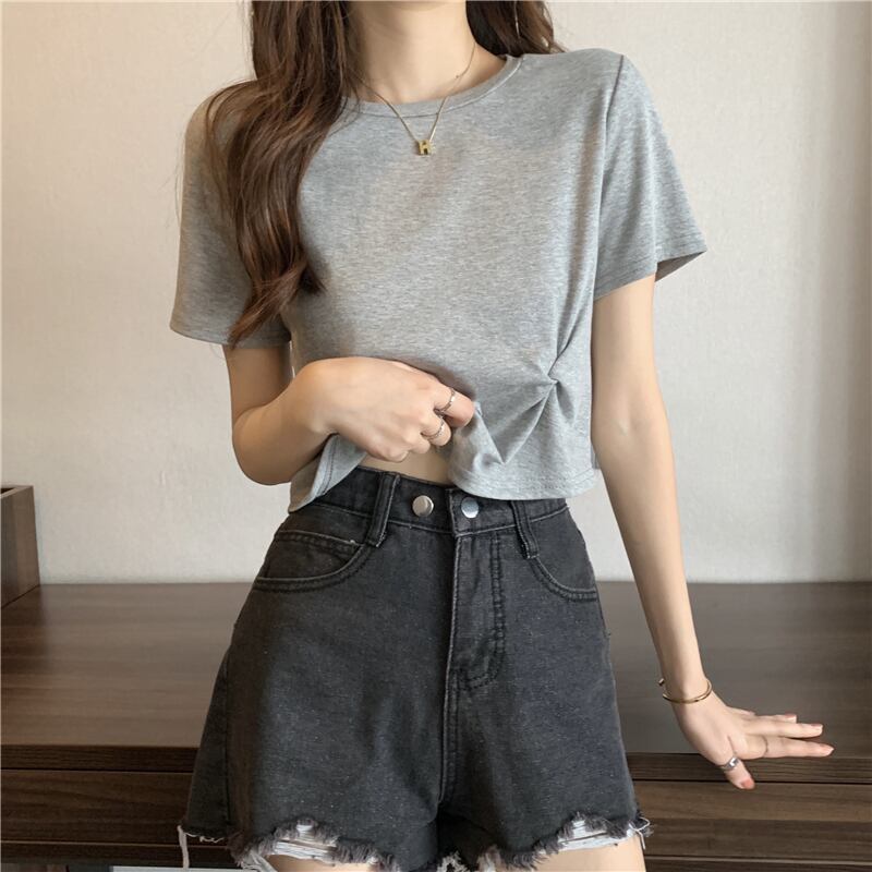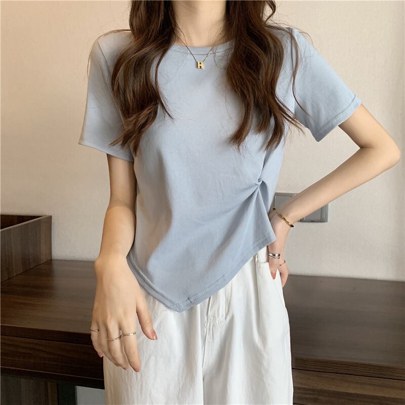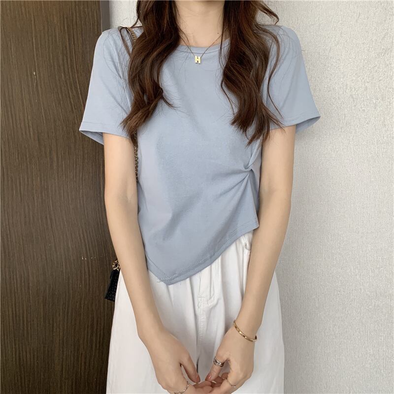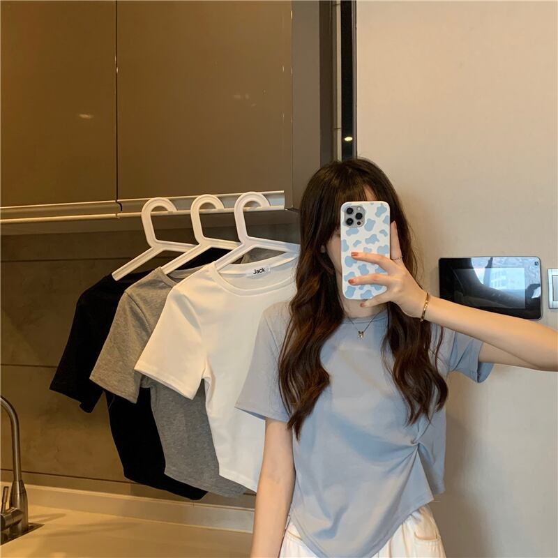 ホワイト半袖Tシャツレディースサマーハイウエストショートトップデザインセンスニッチファッション不規則薄切片Tシャツイン ハイウェスト 夏物 7460045377274700 | framboise21