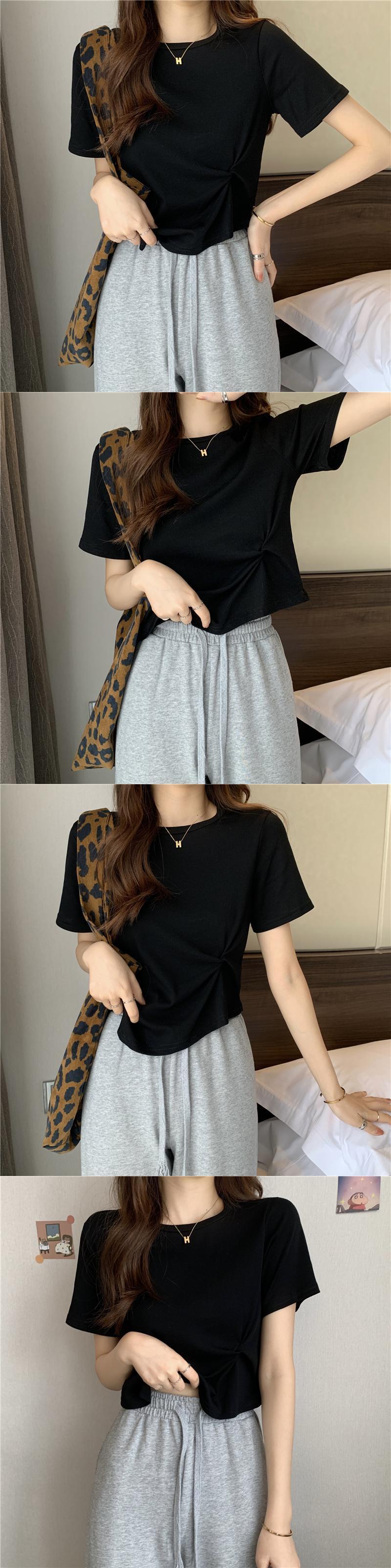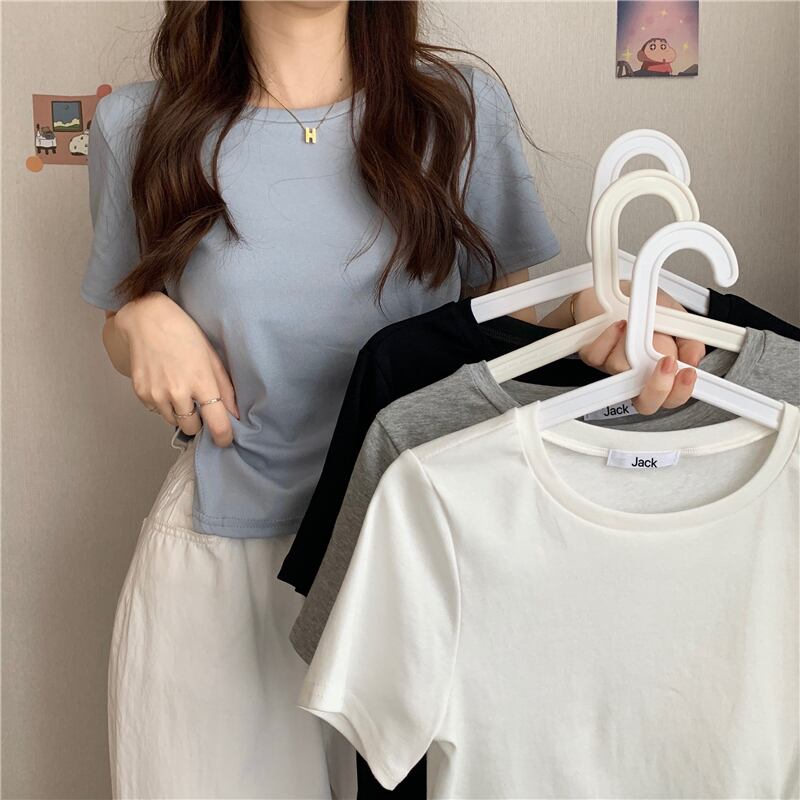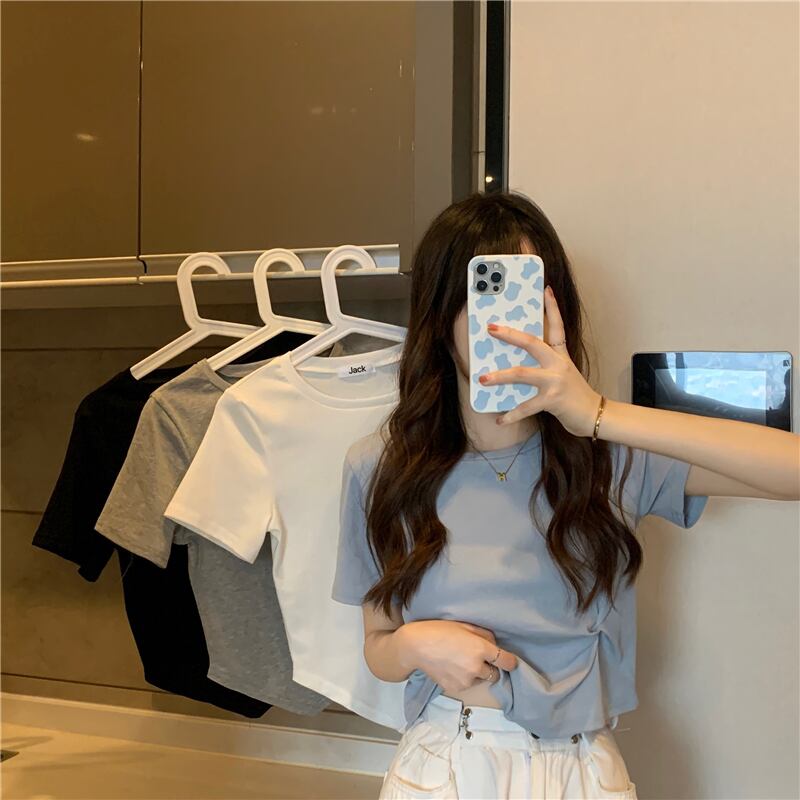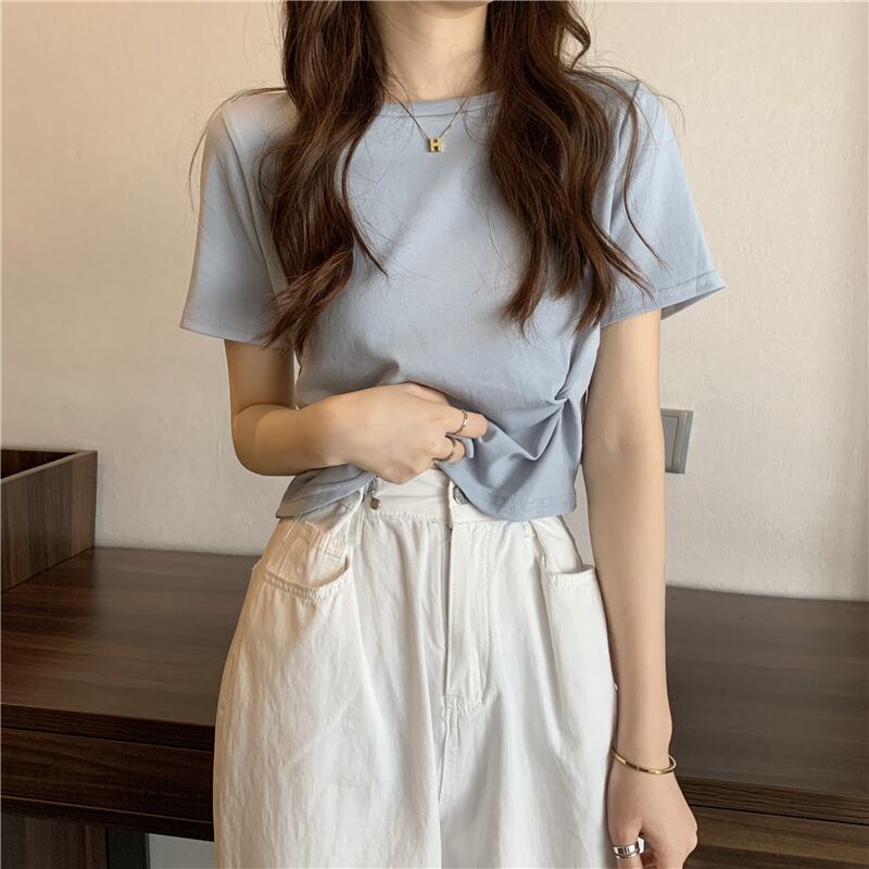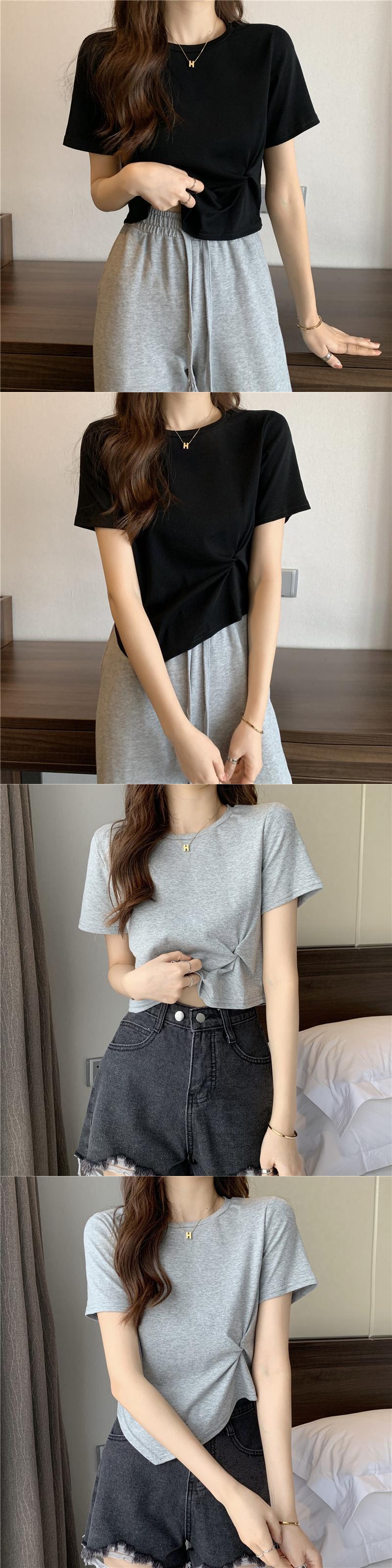 ホワイト半袖Tシャツレディースサマーハイウエストショートトップデザインセンスニッチファッション不規則薄切片Tシャツイン ハイウェスト 夏物 7460045377274700 | framboise21