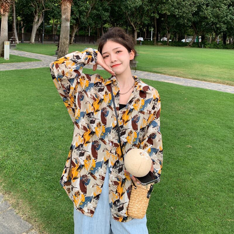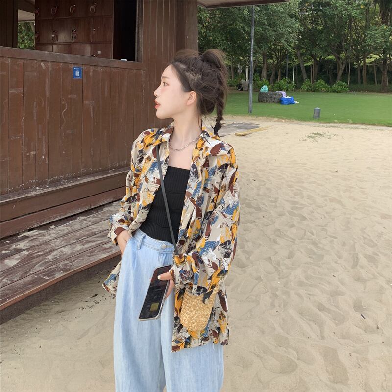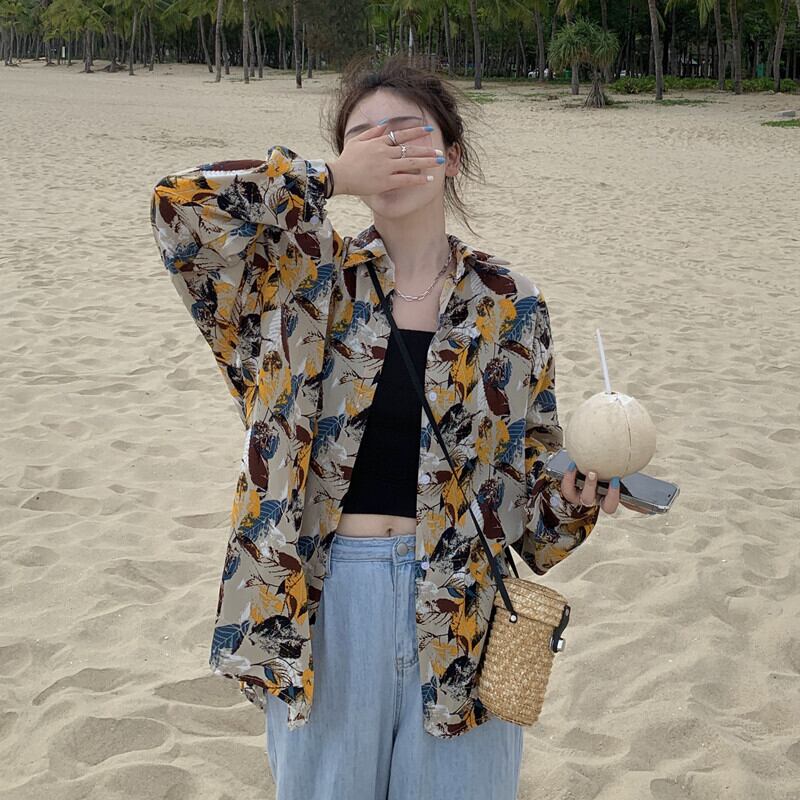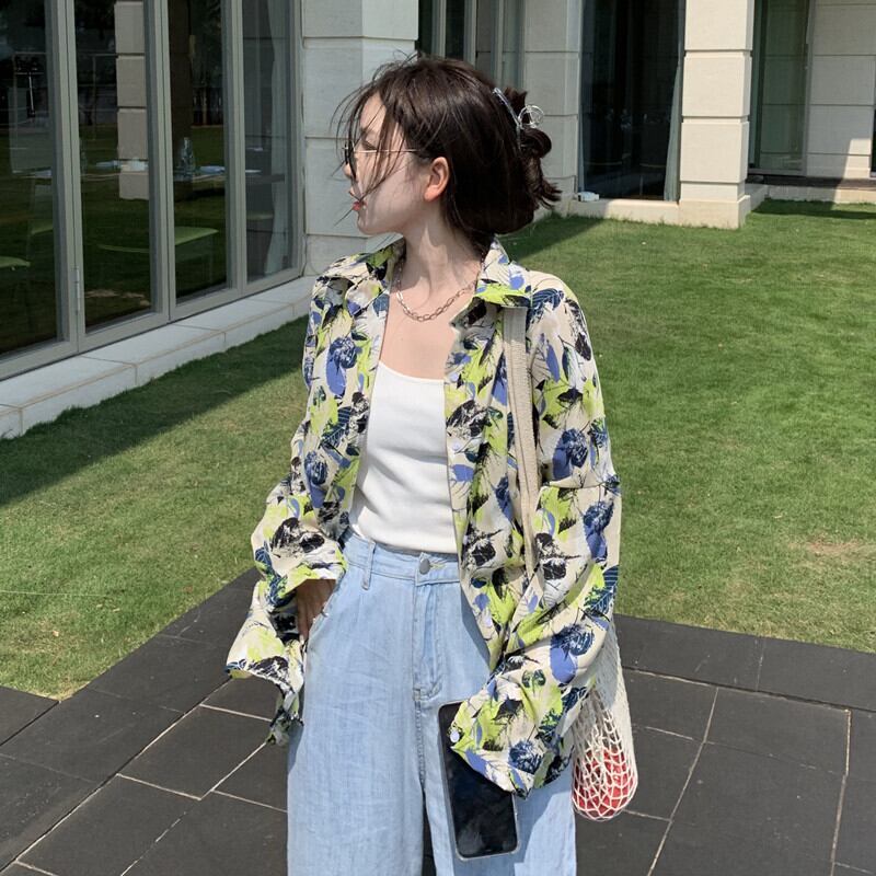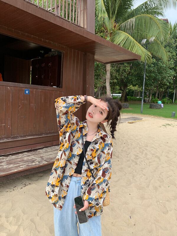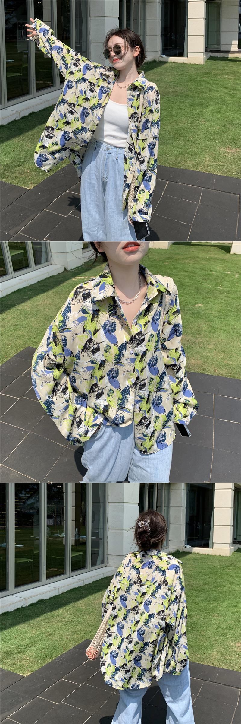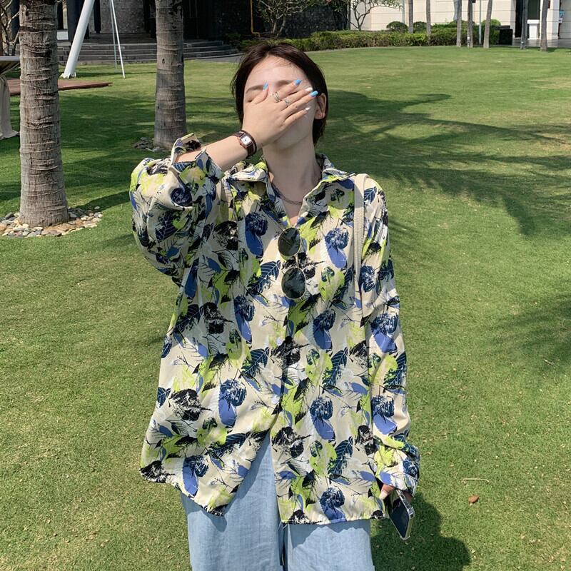 フラワーシャツレディースレトロ香港スタイル夏薄日焼け止めカーディガンルーズホリデースタイル長袖トップスデザイン感が小さい ロング サマー 夏物 フラワーデザイン 7460094963180805 | framboise21