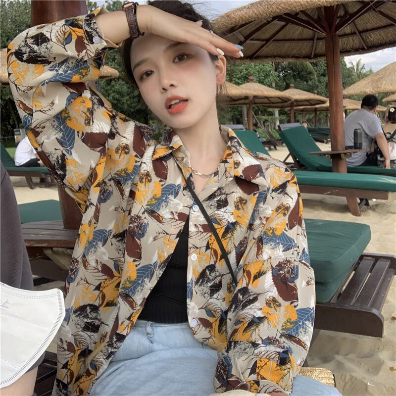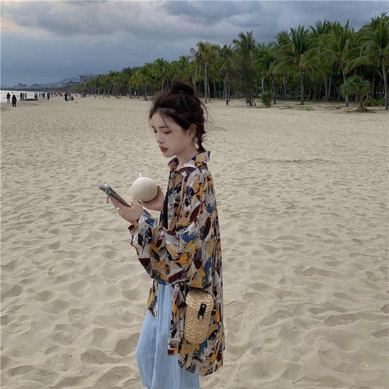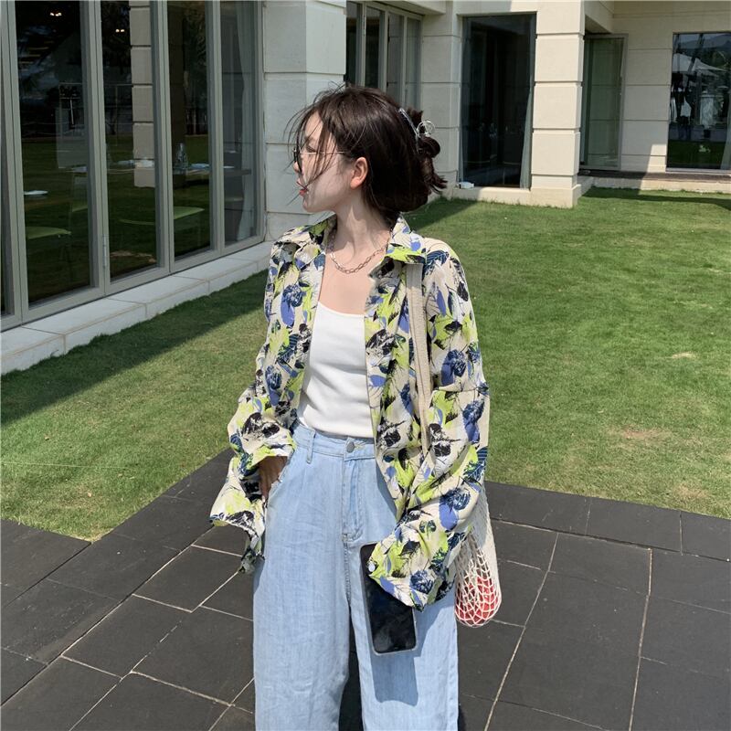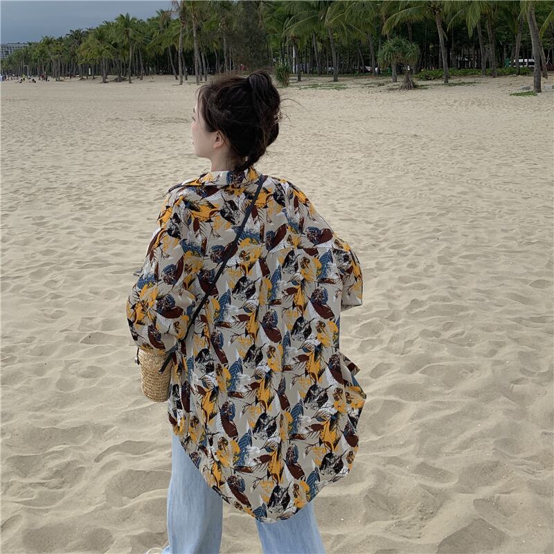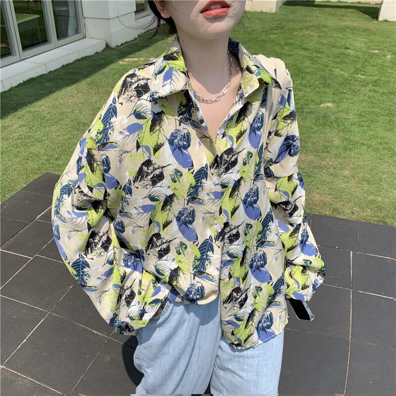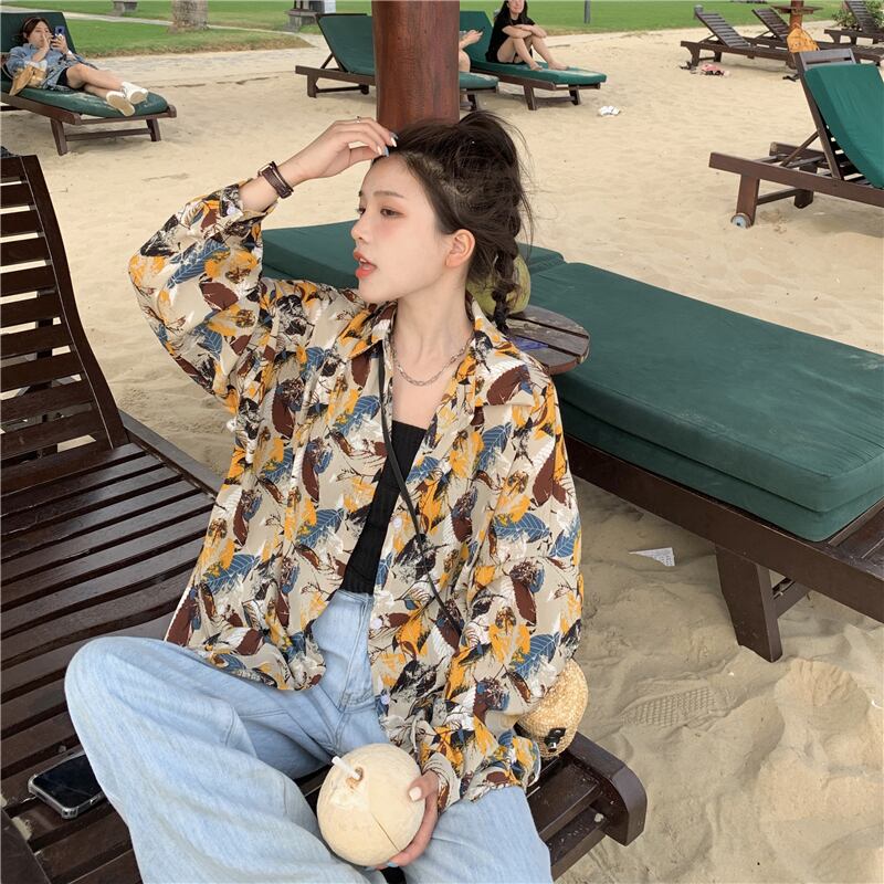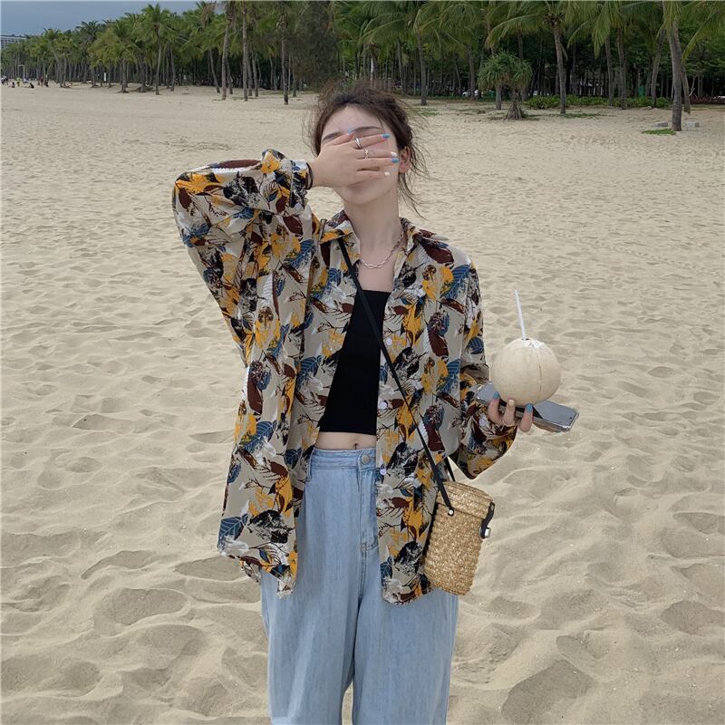 フラワーシャツレディースレトロ香港スタイル夏薄日焼け止めカーディガンルーズホリデースタイル長袖トップスデザイン感が小さい ロング サマー 夏物 フラワーデザイン 7460094963180805 | framboise21