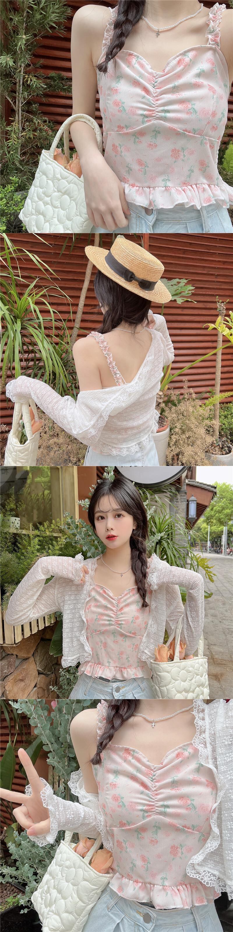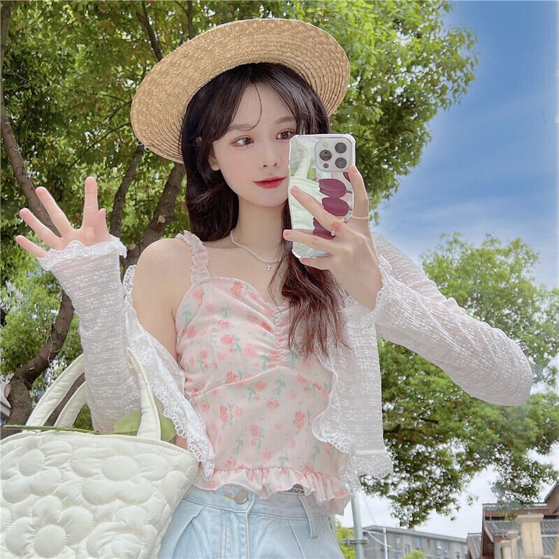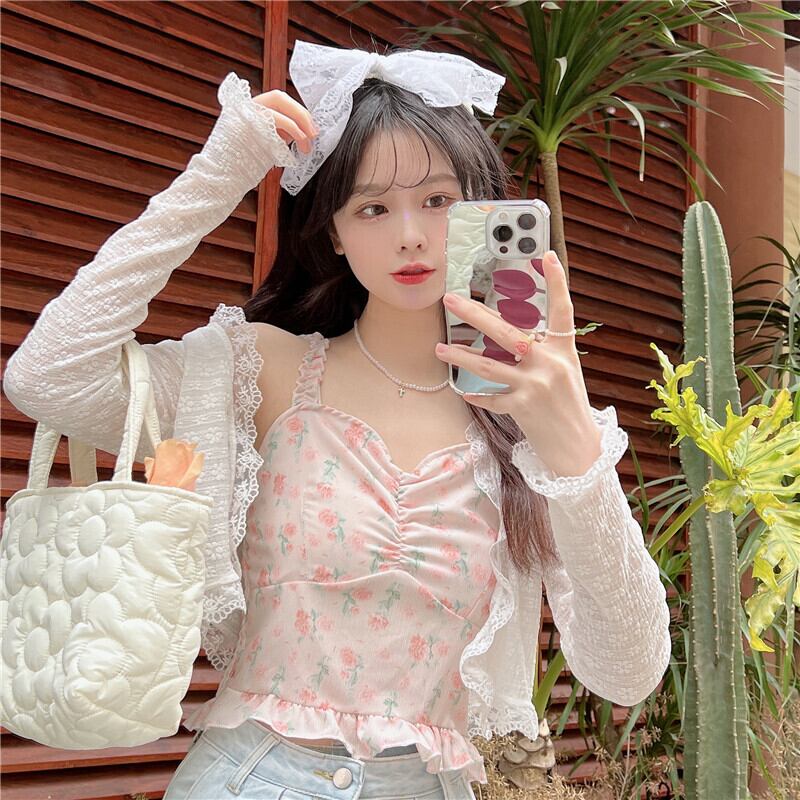 白いレースの日焼け止めシャツ女性の夏のスーパーフェアリースウィートデザインのサスペンダー、薄いショートブラウスの小さなコート ホワイト 大人ガーリー キュート カジュアル サマー 夏物 7460053823875590 | framboise21
