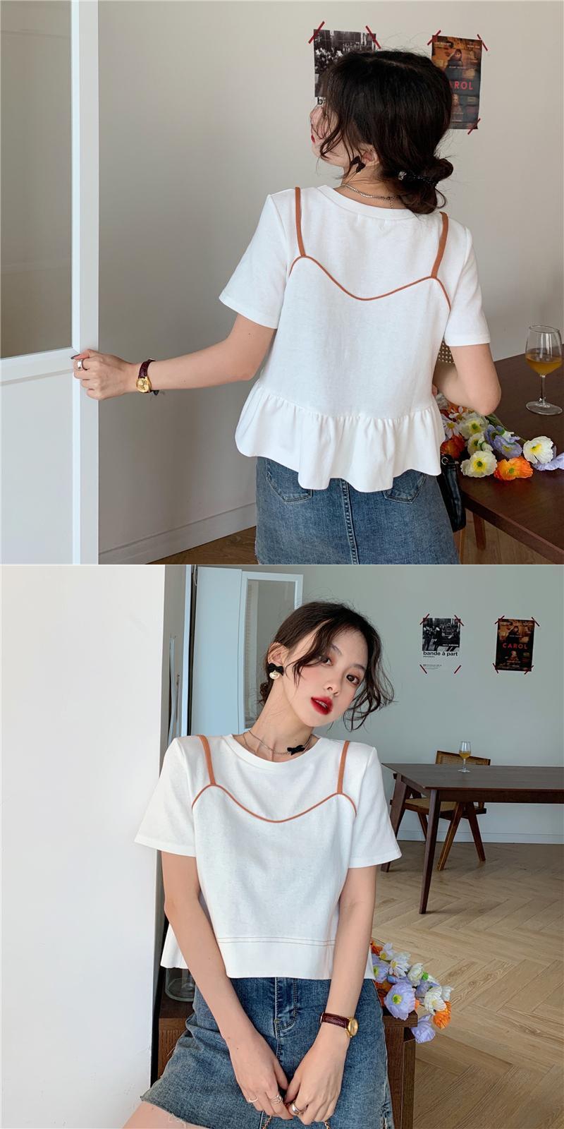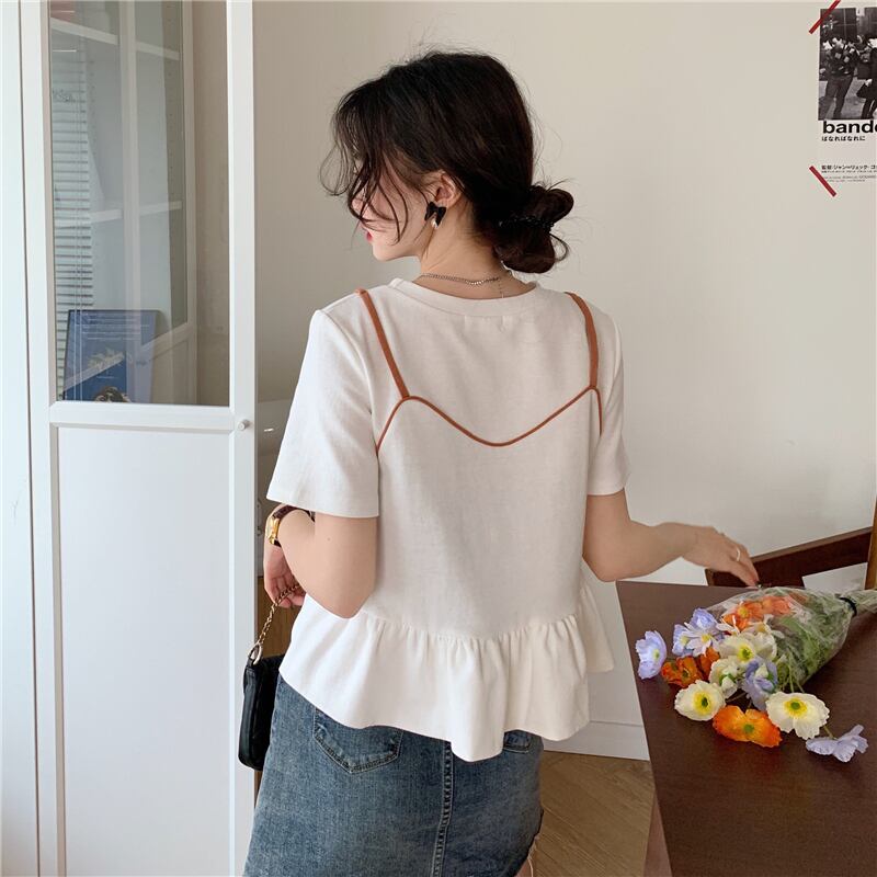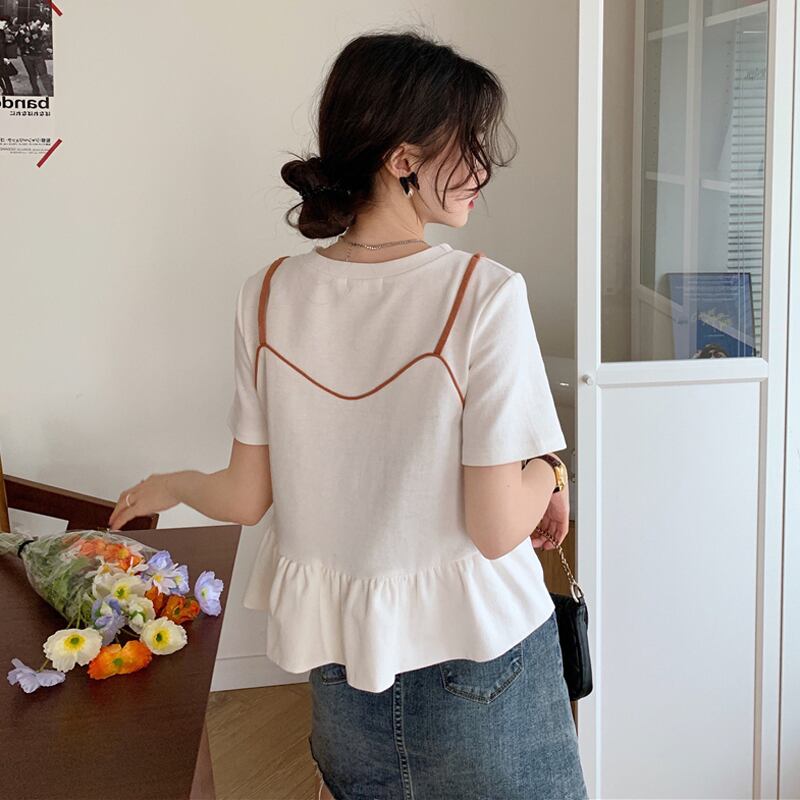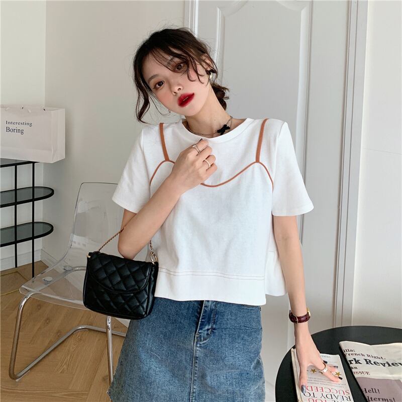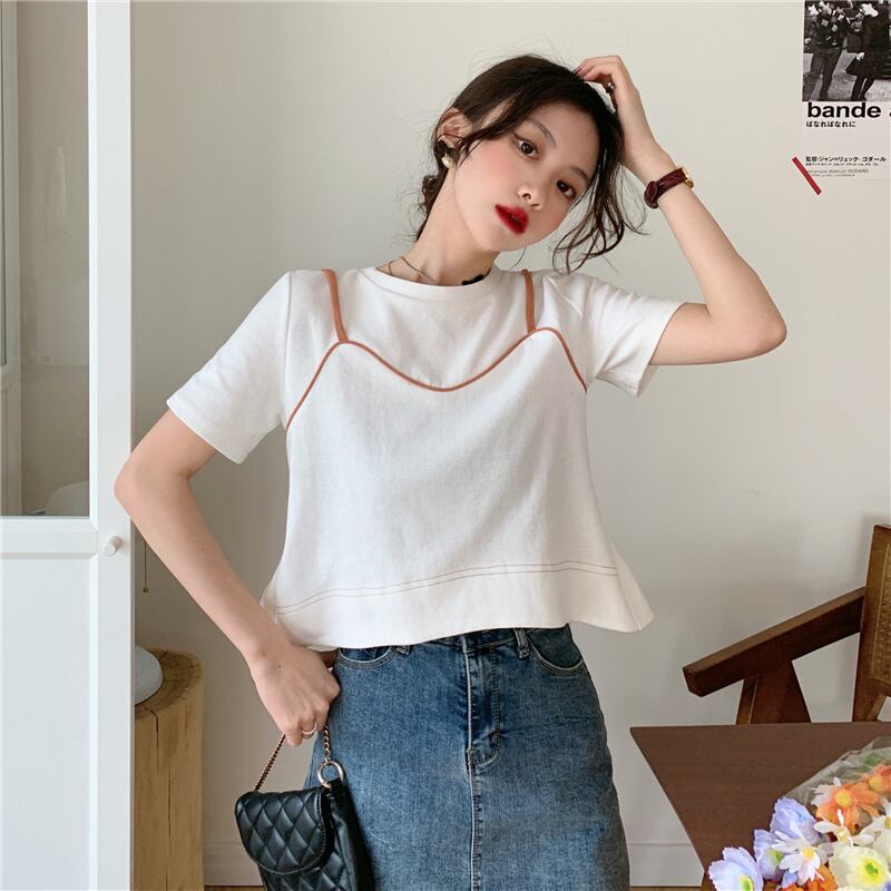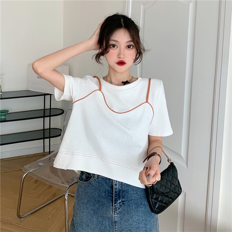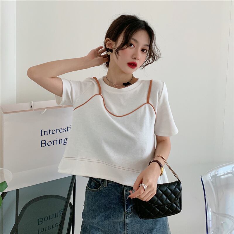 夏服スーパーインスティッドデザインセンスルーズでシックな半袖白Tシャツ女性ニッチショートフェイクツーピーストップ服 ホワイト サマー 夏物 7460017414092373 | framboise21