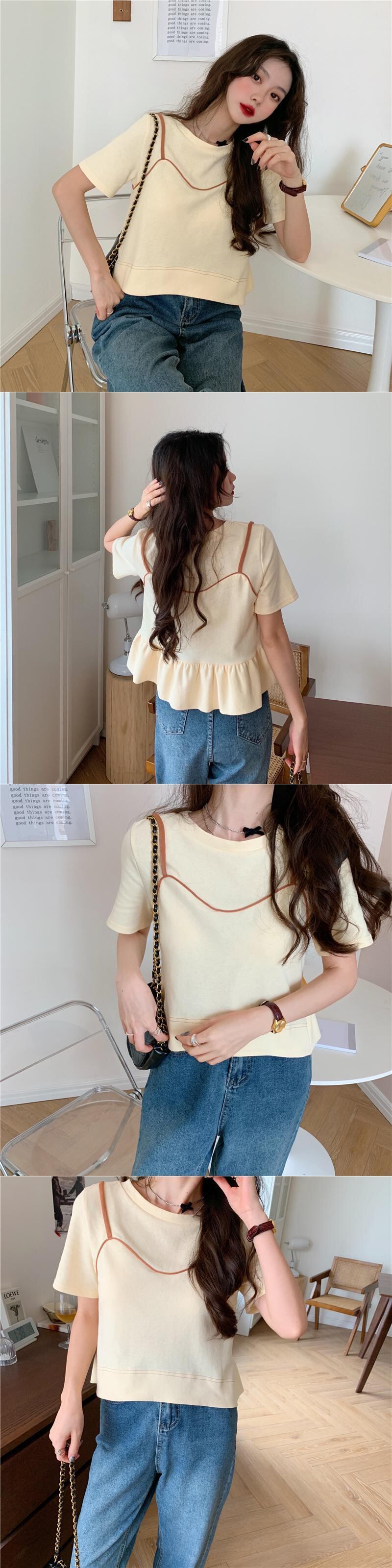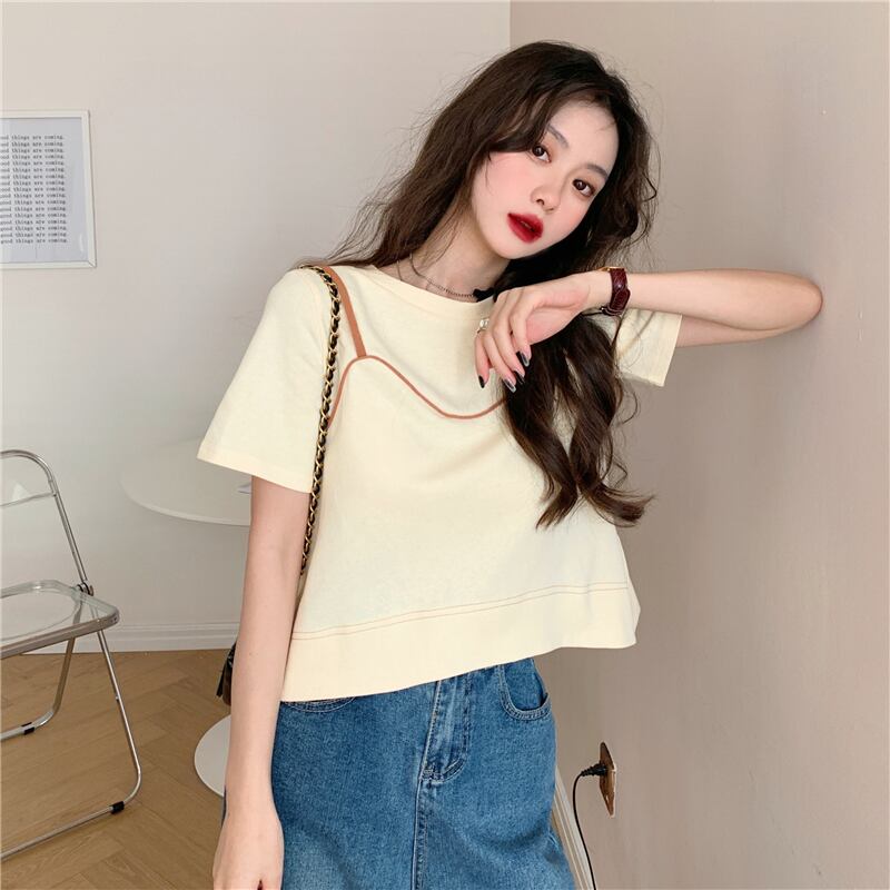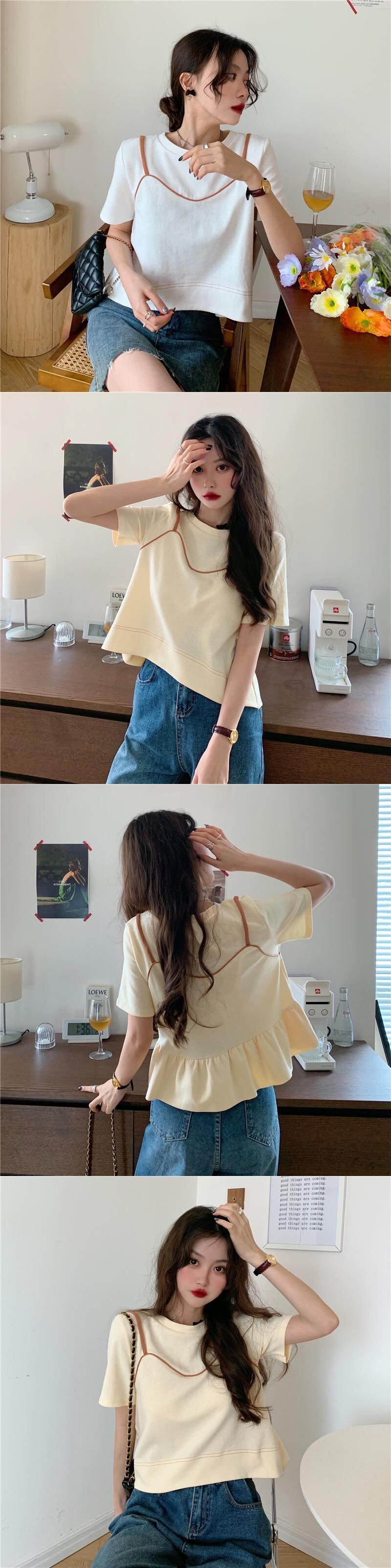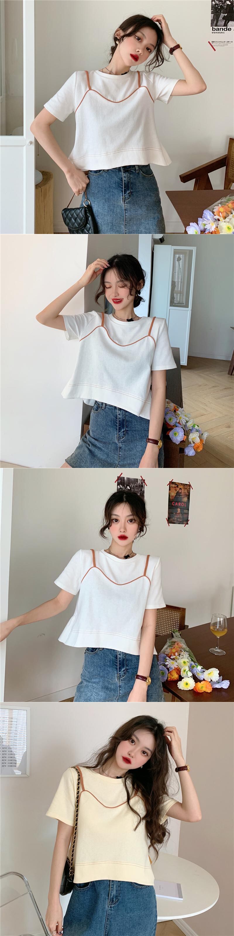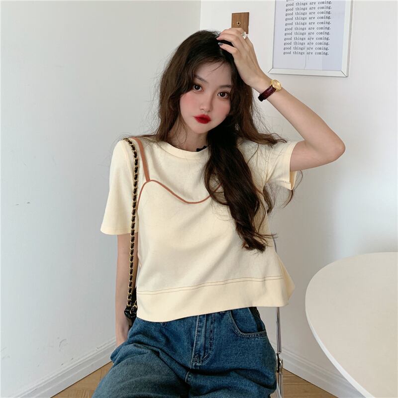 夏服スーパーインスティッドデザインセンスルーズでシックな半袖白Tシャツ女性ニッチショートフェイクツーピーストップ服 ホワイト サマー 夏物 7460017414092373 | framboise21