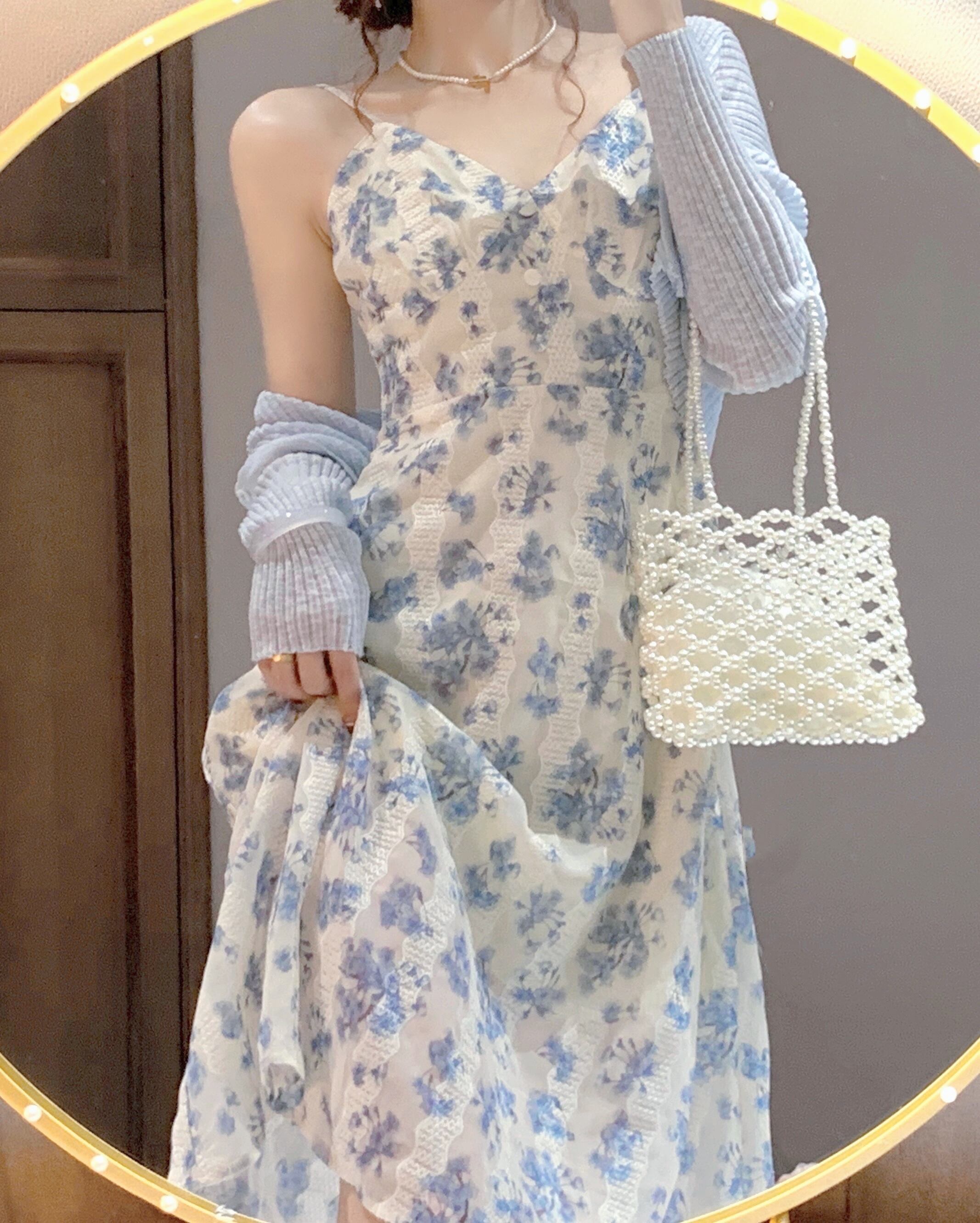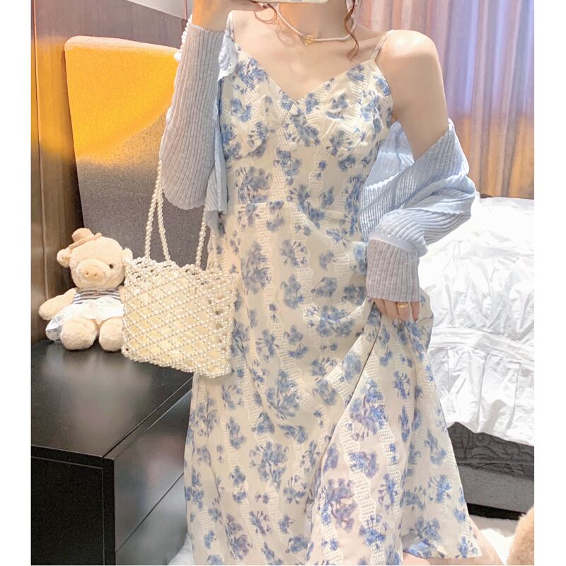 2022年春夏新作女性の優しい風フレンチ気質サスペンダーロングスカートフローラルドレススウィートツーピーススーツ 大人ガーリー キュート カジュアル スプリング 春物 サマー 夏物 花柄 7460012982090146 | framboise21