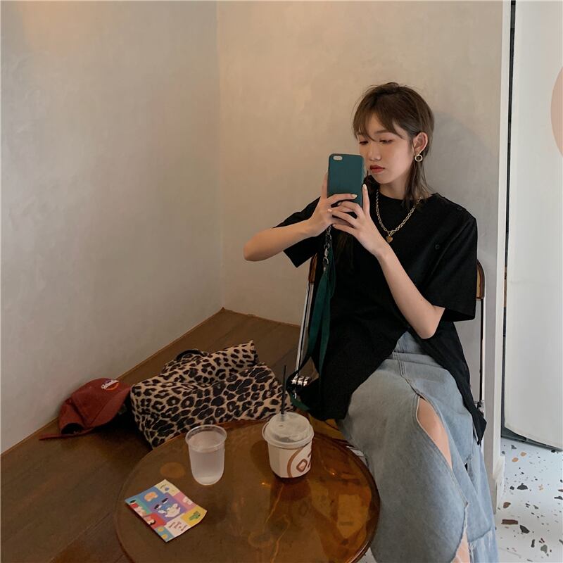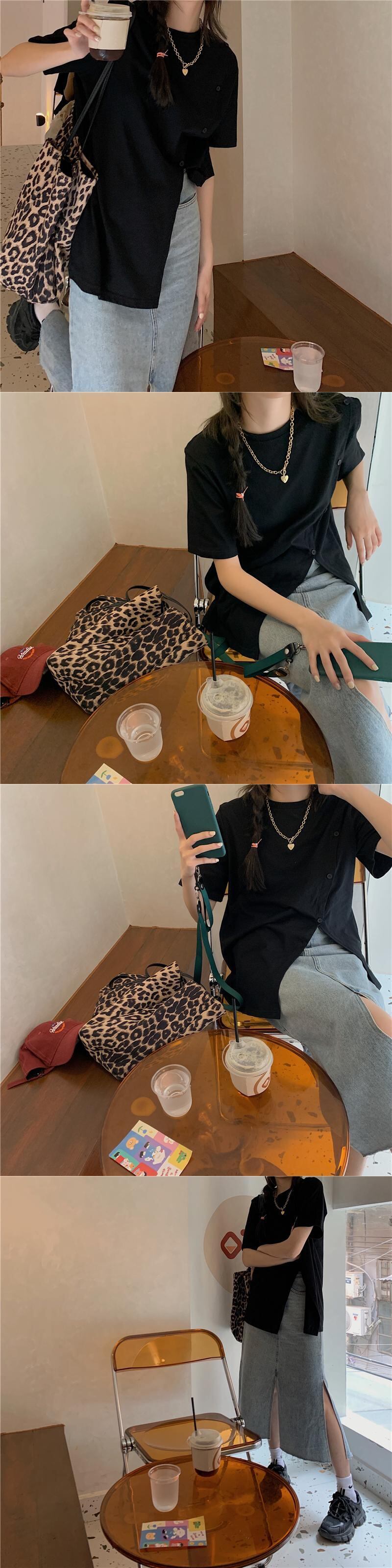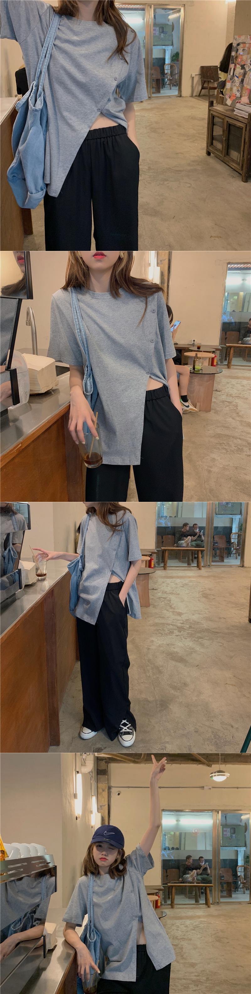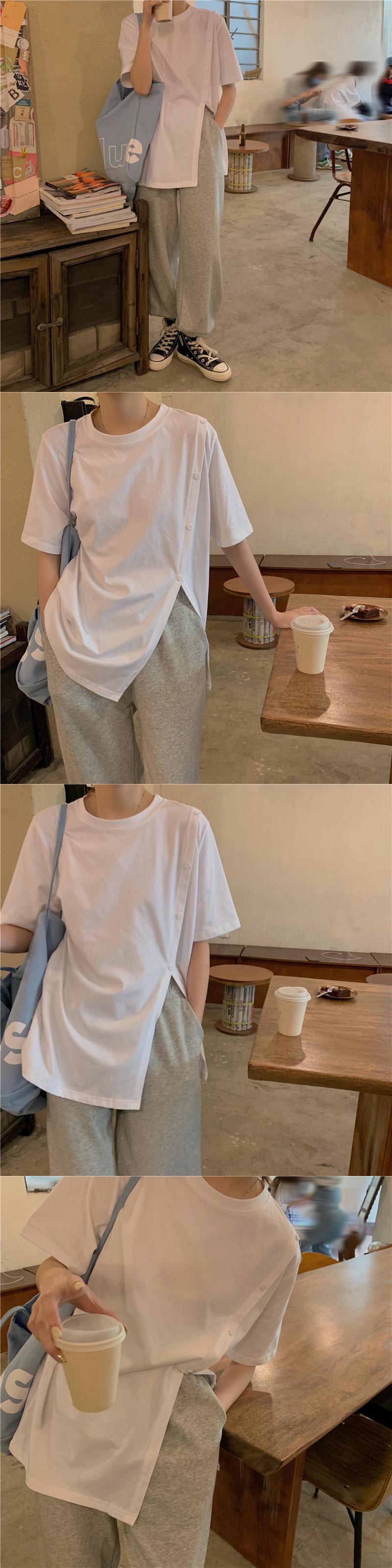 グレーの半袖Tシャツレディースサマーピュアコットンロングカバーお尻ルーズ無地ボタンスリットデザインセンストップインタイド 夏物 ソリッドカラー 7460030808282279 | framboise21