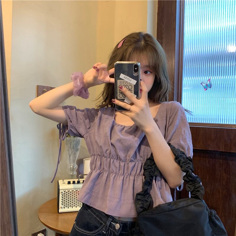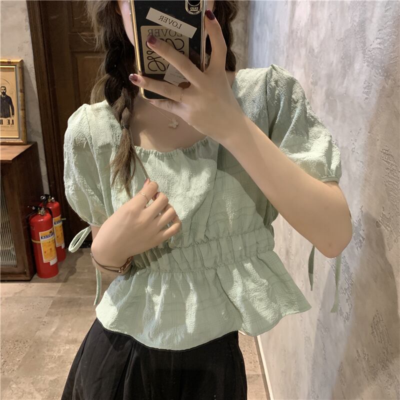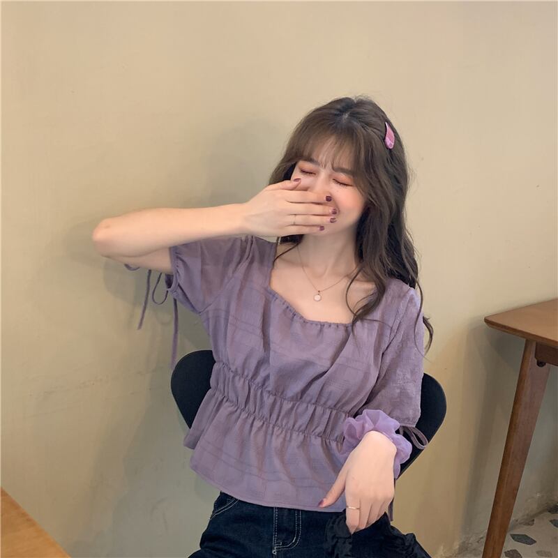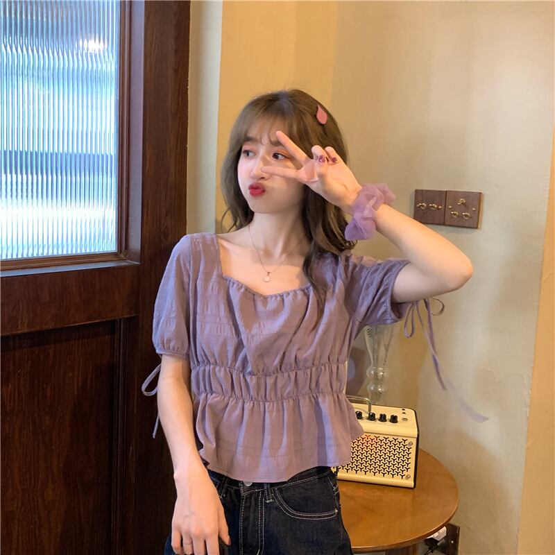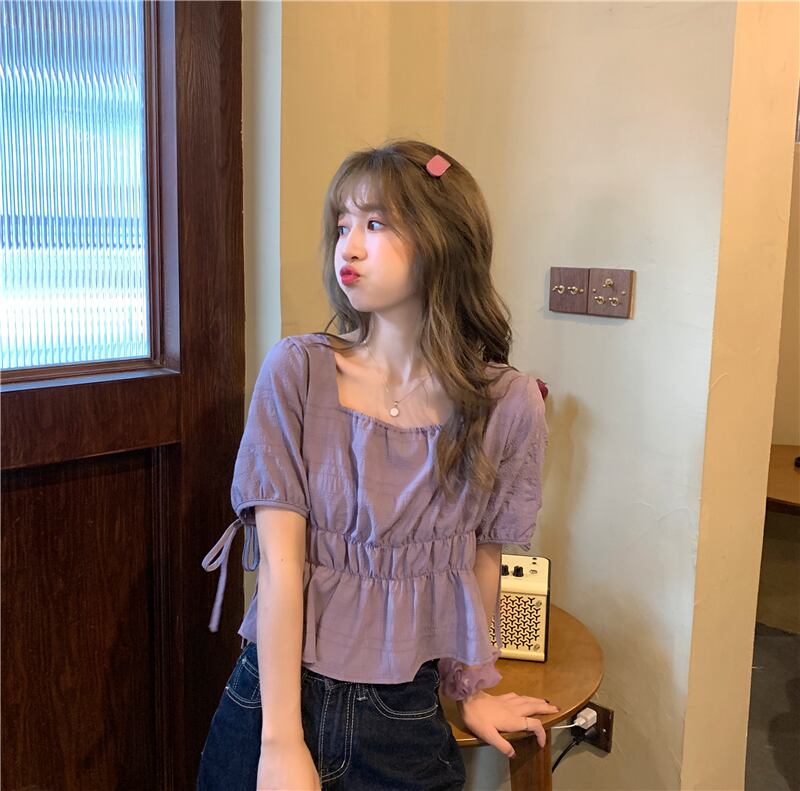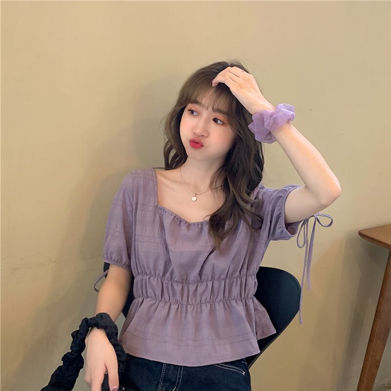 ヒョンヤスクエアカラープリーツシャツレディース新作2020サマースタイルデザインニッチシャツレディーストップスオールマッチ 夏物 スクウェア 7460016334785495 | framboise21
