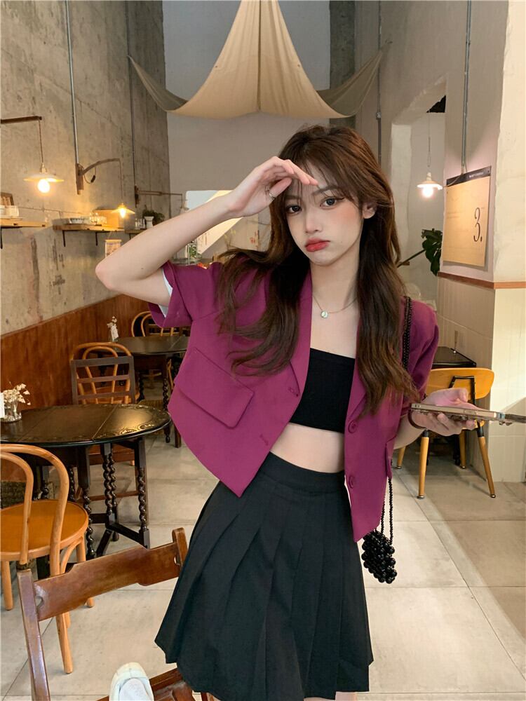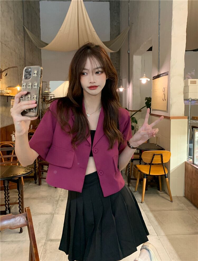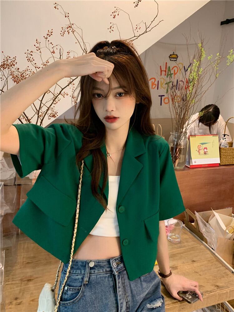 ショート半袖スーツジャケットレディースサマーシンハイウエストカーディガンデザインスモールカジュアルカジュアル日焼け止めスモールスーツ 夏物 7460018844178324 | framboise21