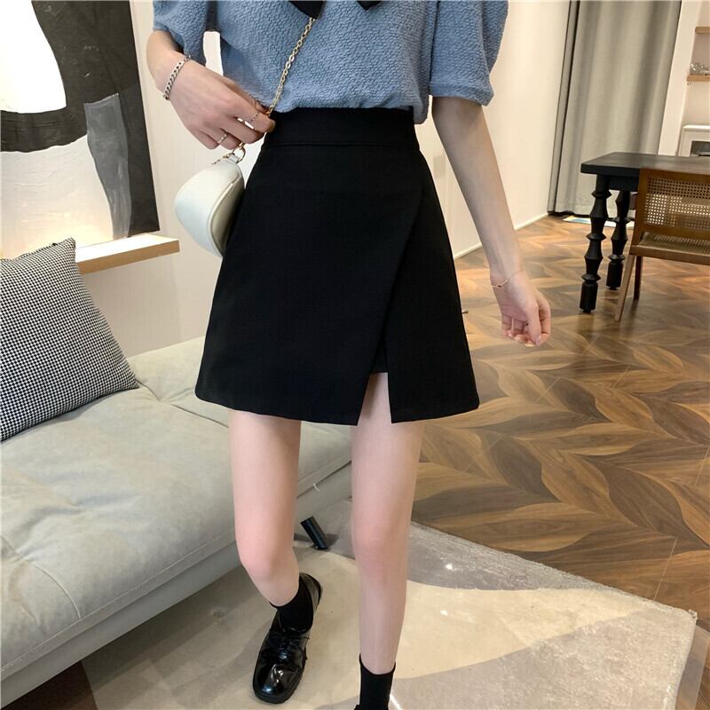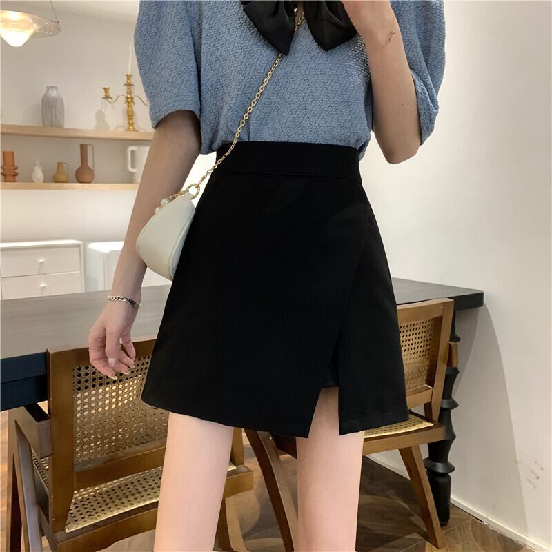 ブラックスプリットスーツスカートレディースサマーデザインハイウエストスリムバッグヒップAラインショートスカートキュロット春秋 ハイウェスト スプリング 春物 夏物 オータム 秋物 7460092273408551 | framboise21