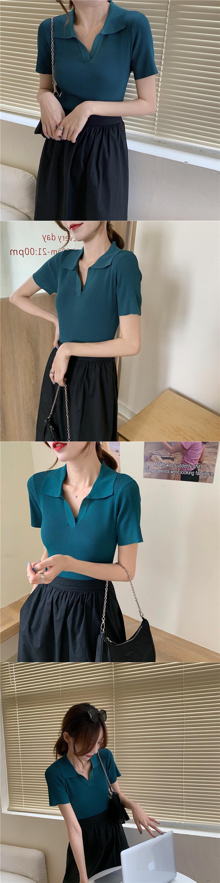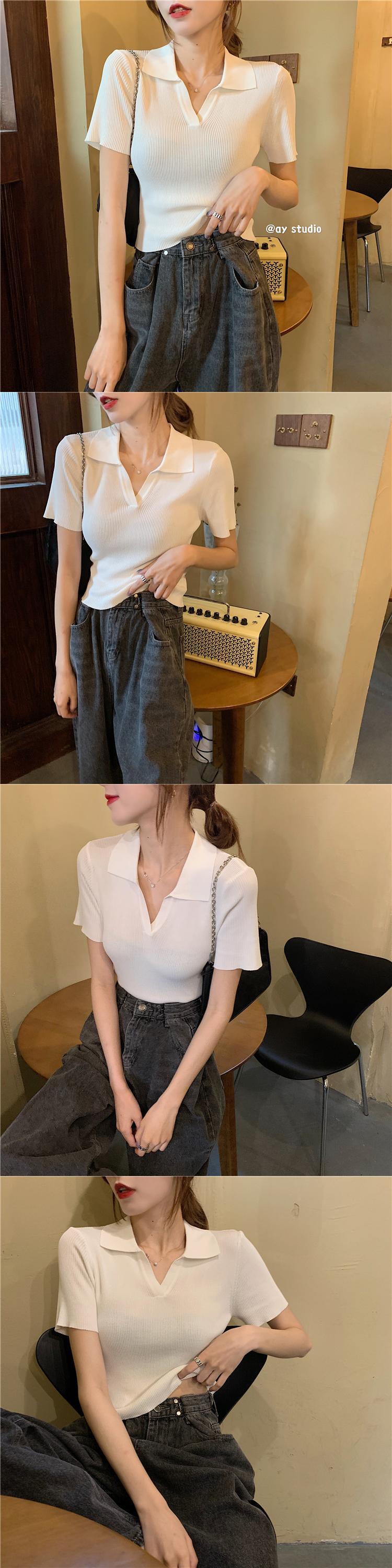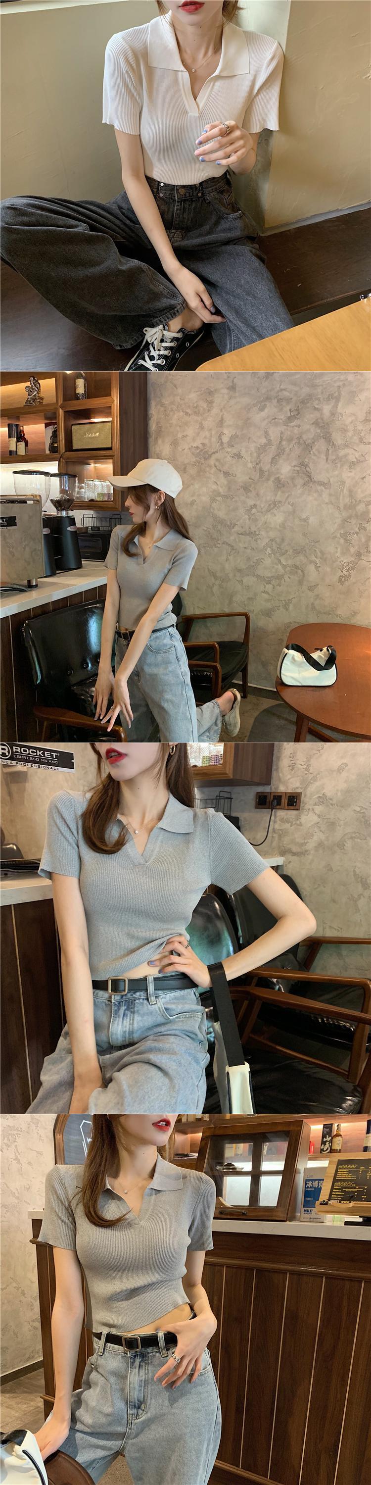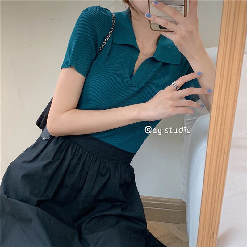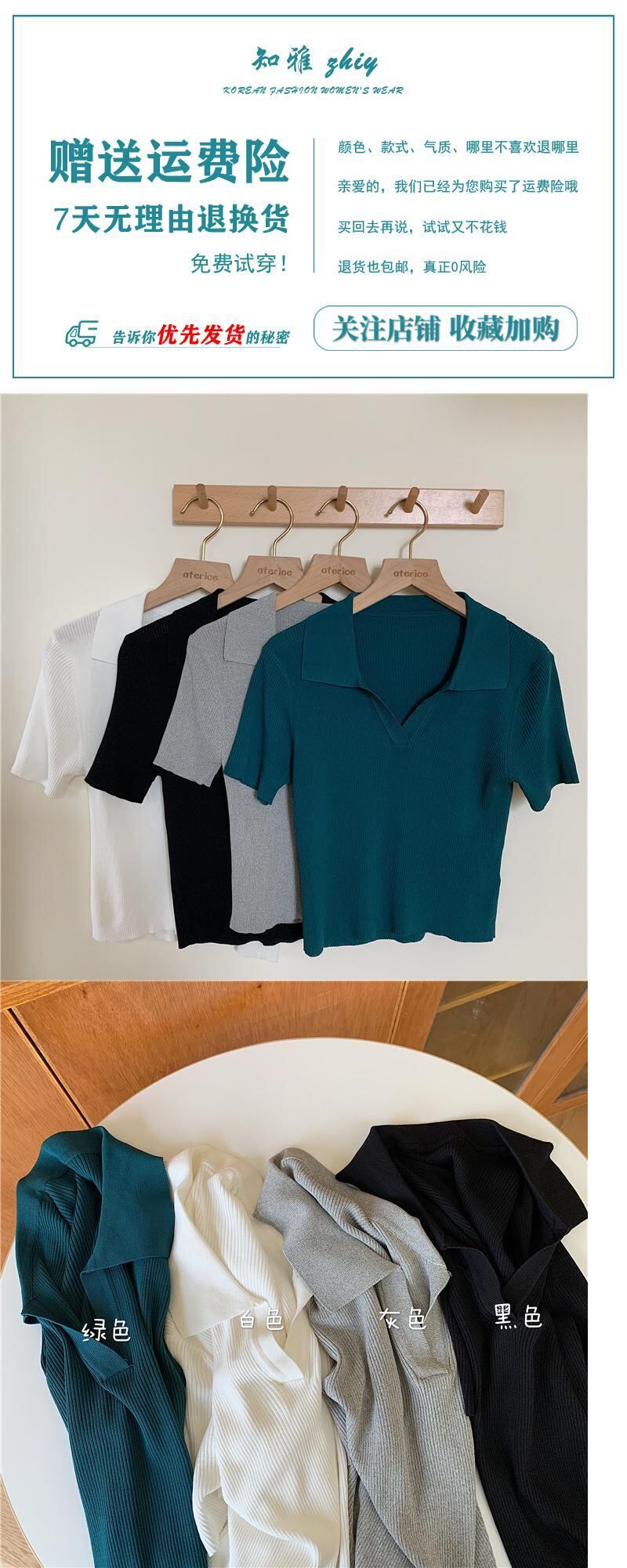 2022年春秋新作POLOカラーショートトップスレディースアイスシルクデザインニッチ半袖セーター薄夏 スプリング 春物 サマー 夏物 オータム 秋物 7460055524045229 | framboise21